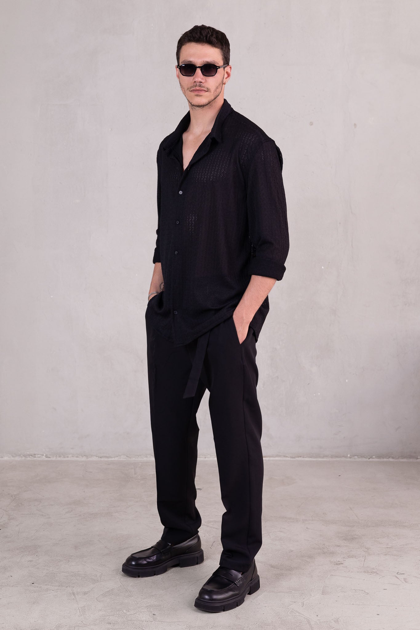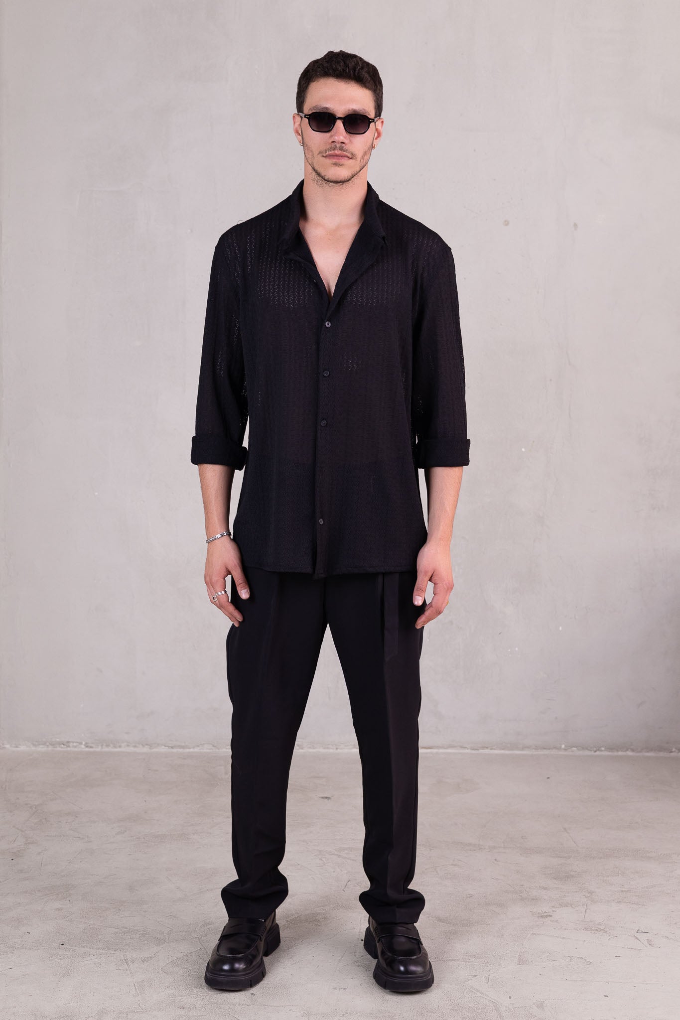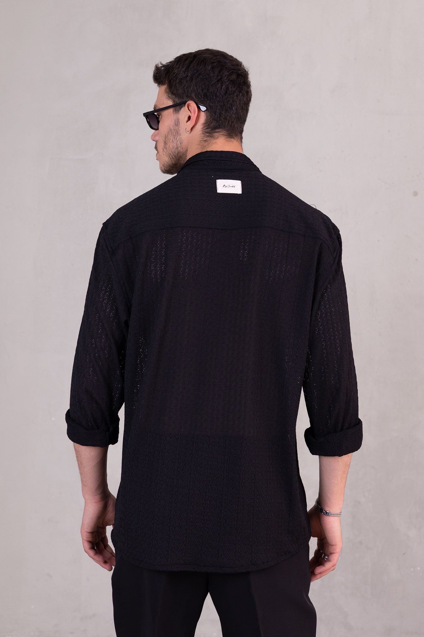 חולצת מכופתרת קז'ואל ארוכה, עשויה מבד אוורירי עם שרוולים ארוכים