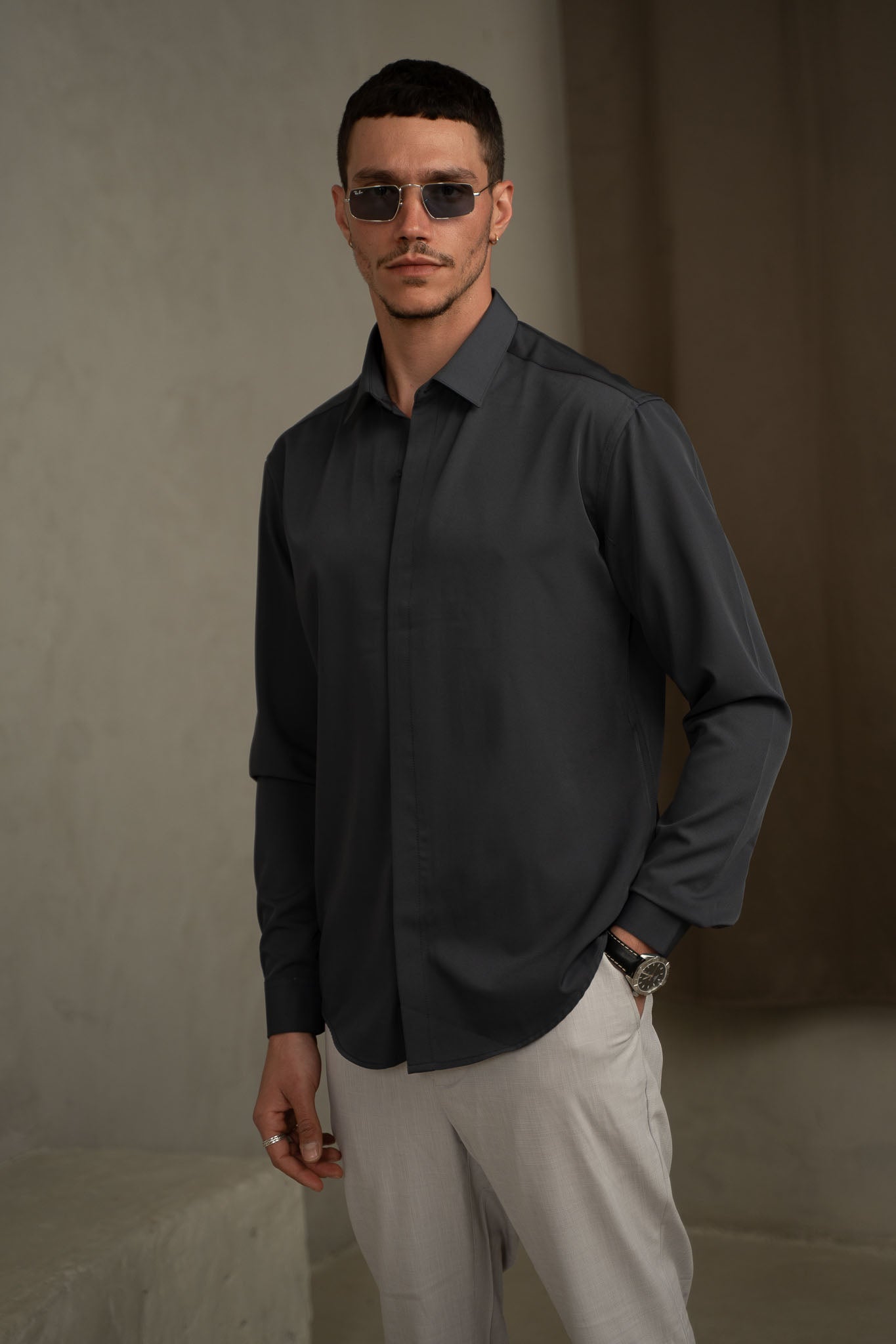 מכופתרת ארוכה - Hibiscus (אפור כהה)
