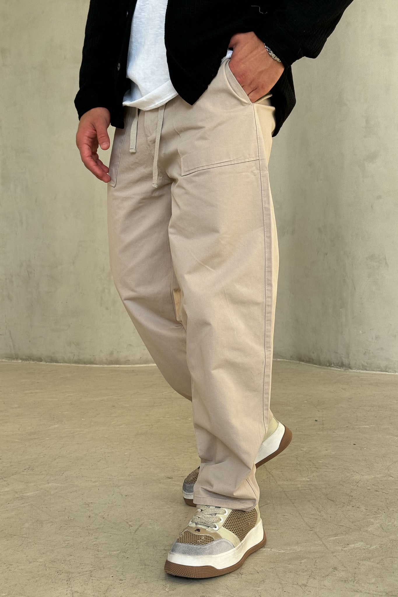 מכנס בז׳ משוחרר – Sand Cargo Fit