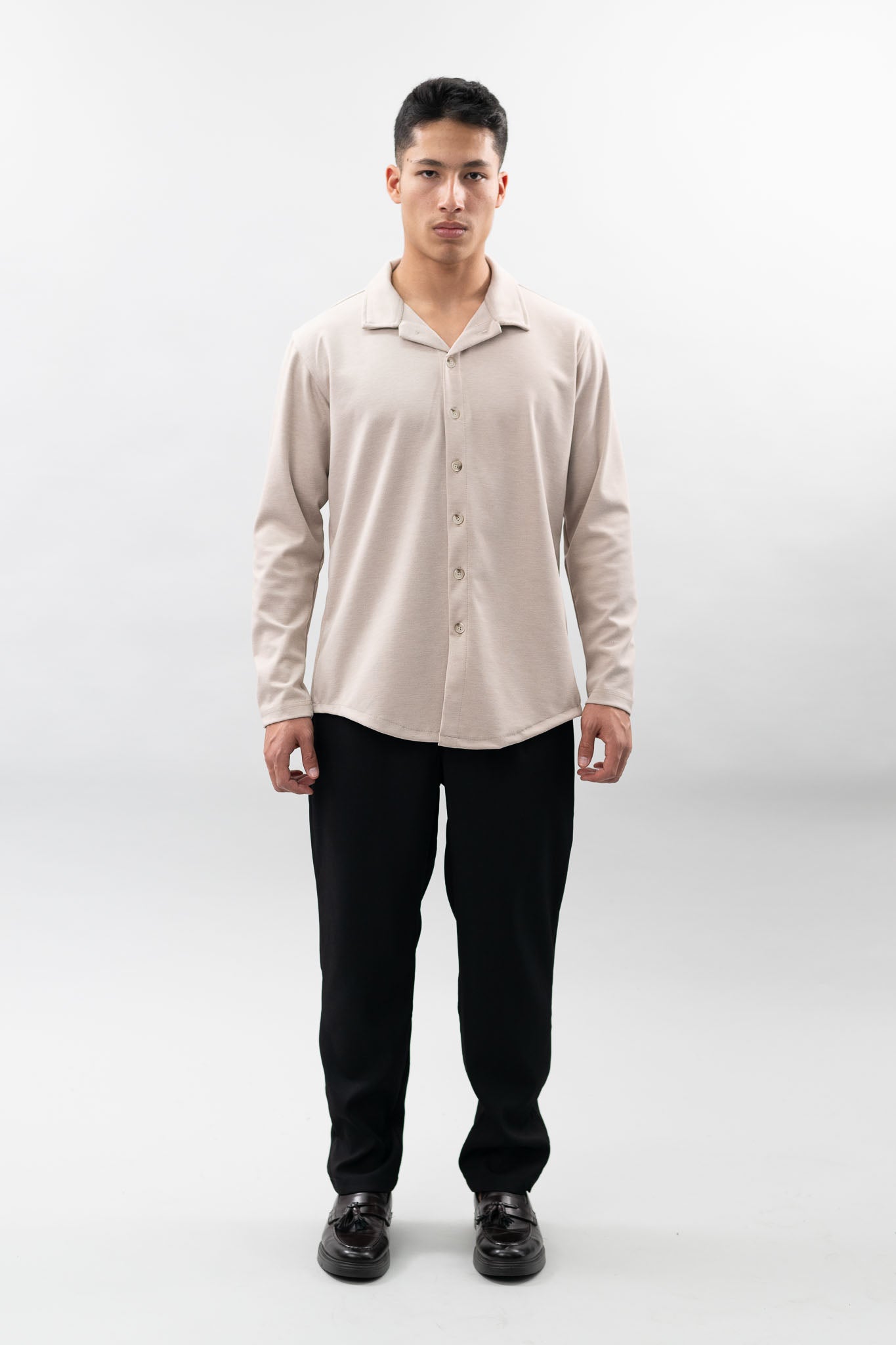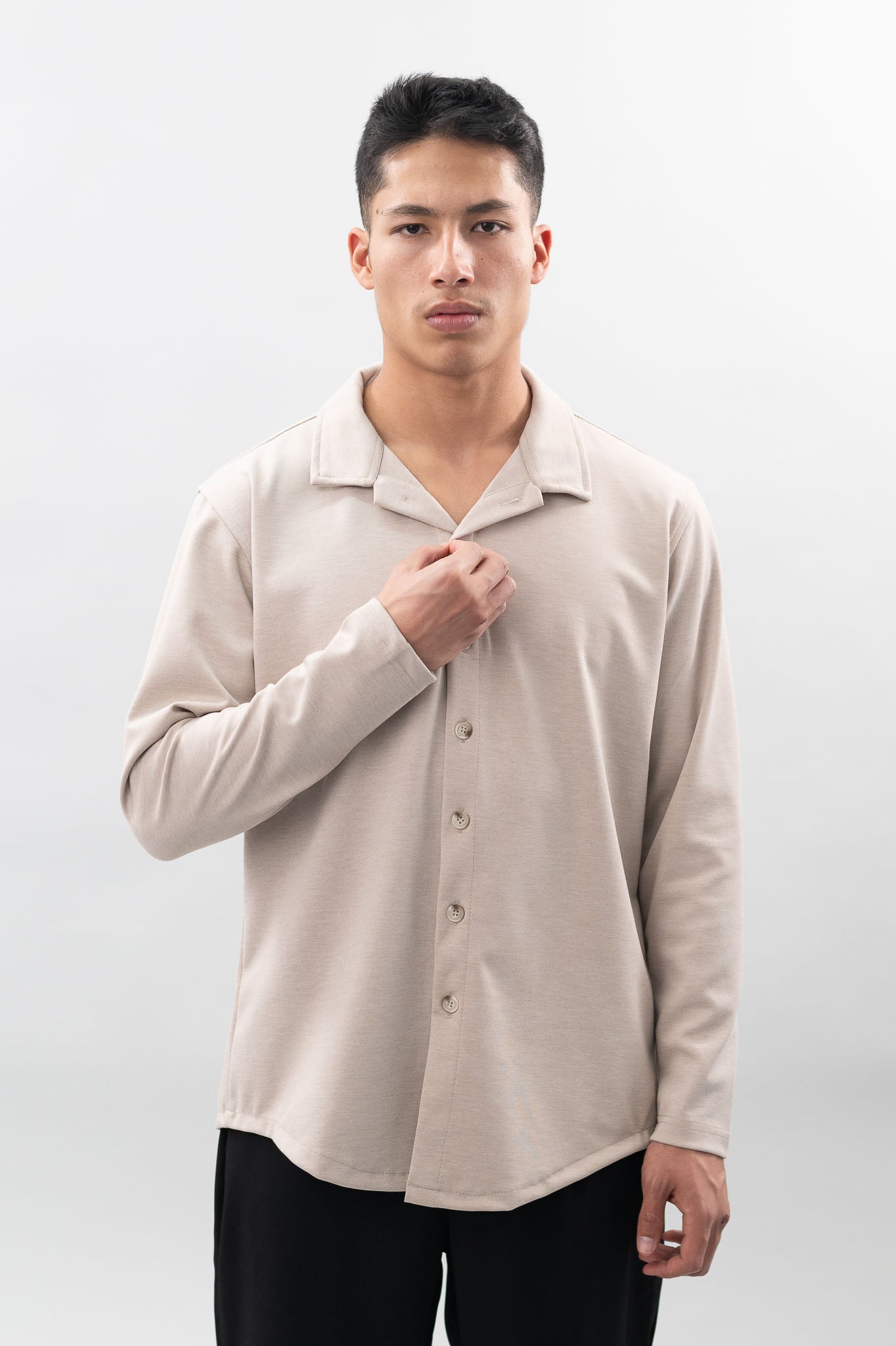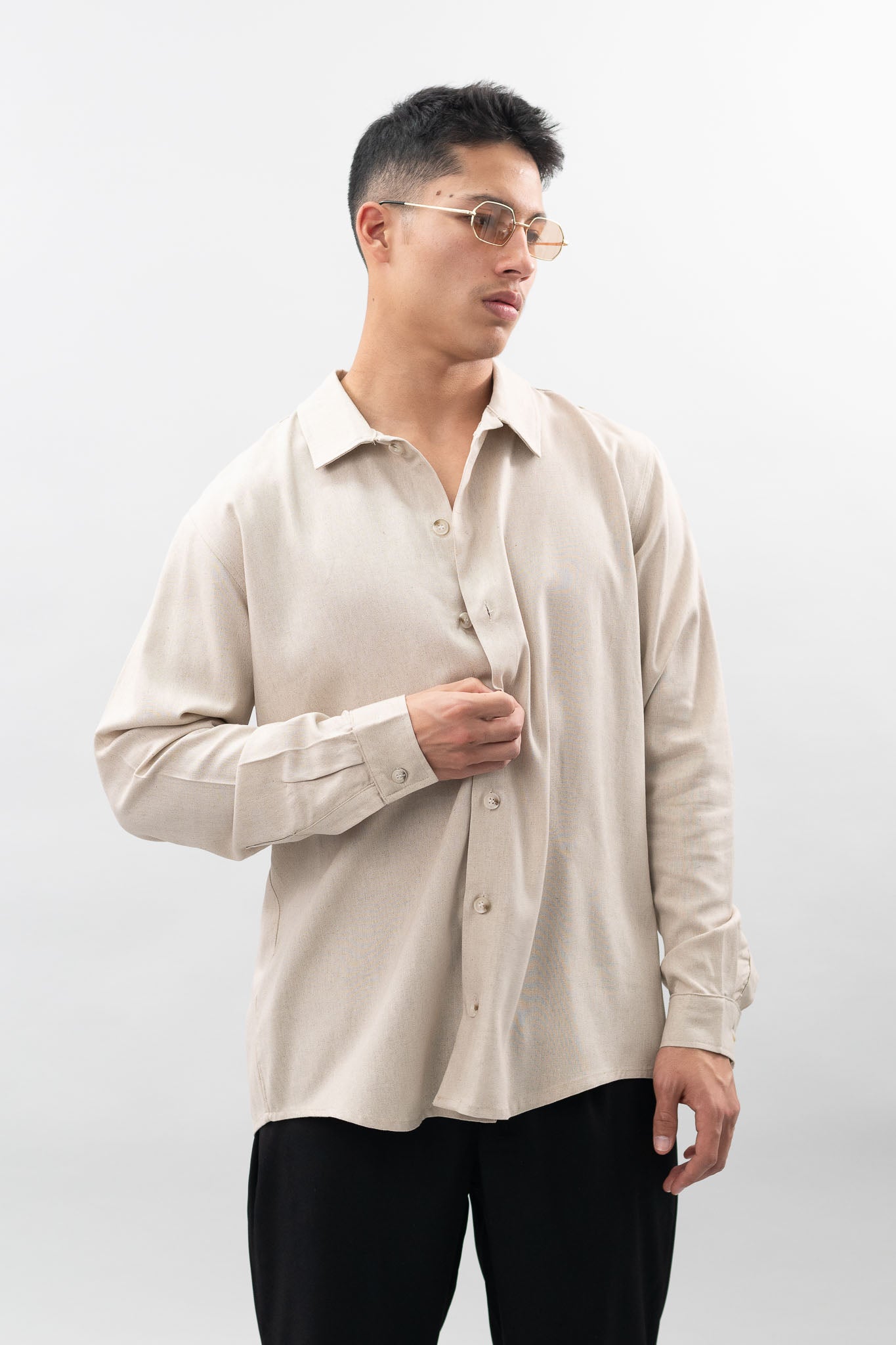 חולצת מכופתרת קז'ואל ארוכה, בגזרת מיד אוברסייז עם שרוולים ארוכים, צווארון קלאסי עם כפתורים עדינים .