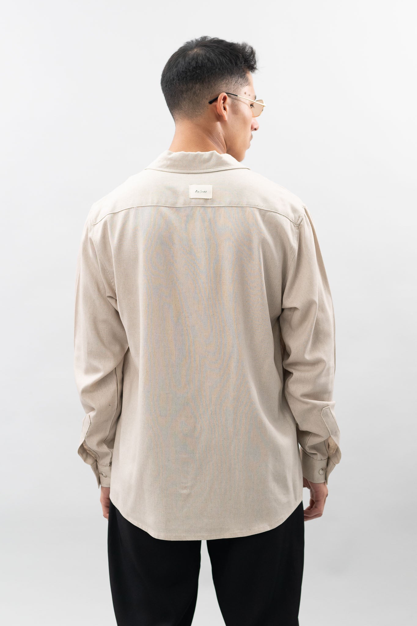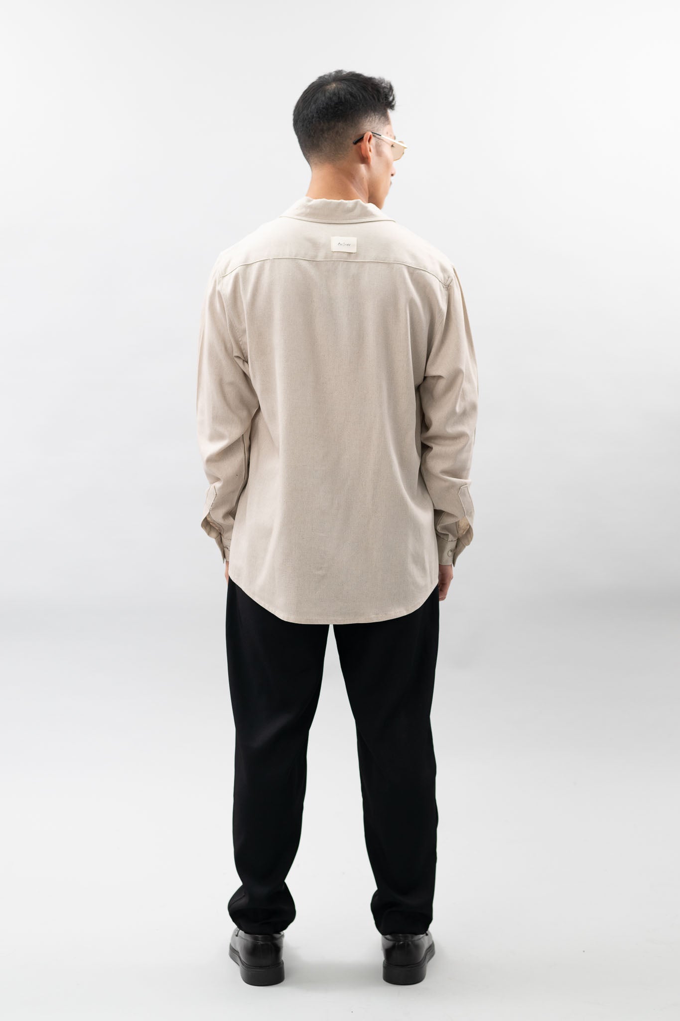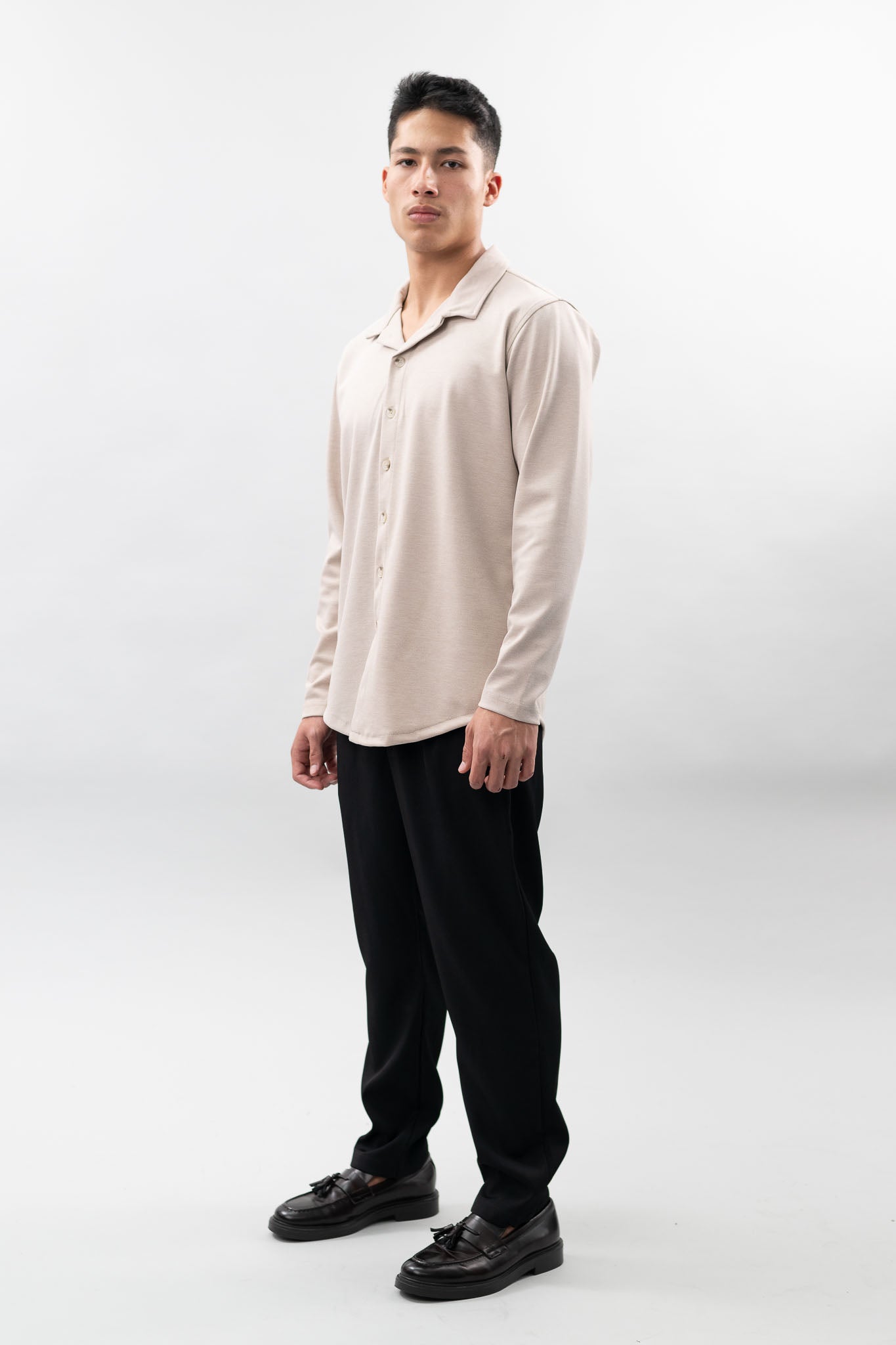 חולצת מכופתרת קז'ואל ארוכה, בגזרת מיד אוברסייז עם שרוולים ארוכים, צווארון קלאסי עם כפתורים עדינים .
