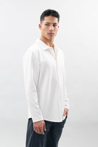 חולצת מכופתרת קז'ואל ארוכה, בגזרת מיד אוברסייז עם שרוולים ארוכים, צווארון קלאסי עם כפתורים עדינים .