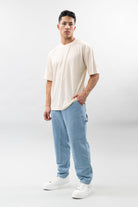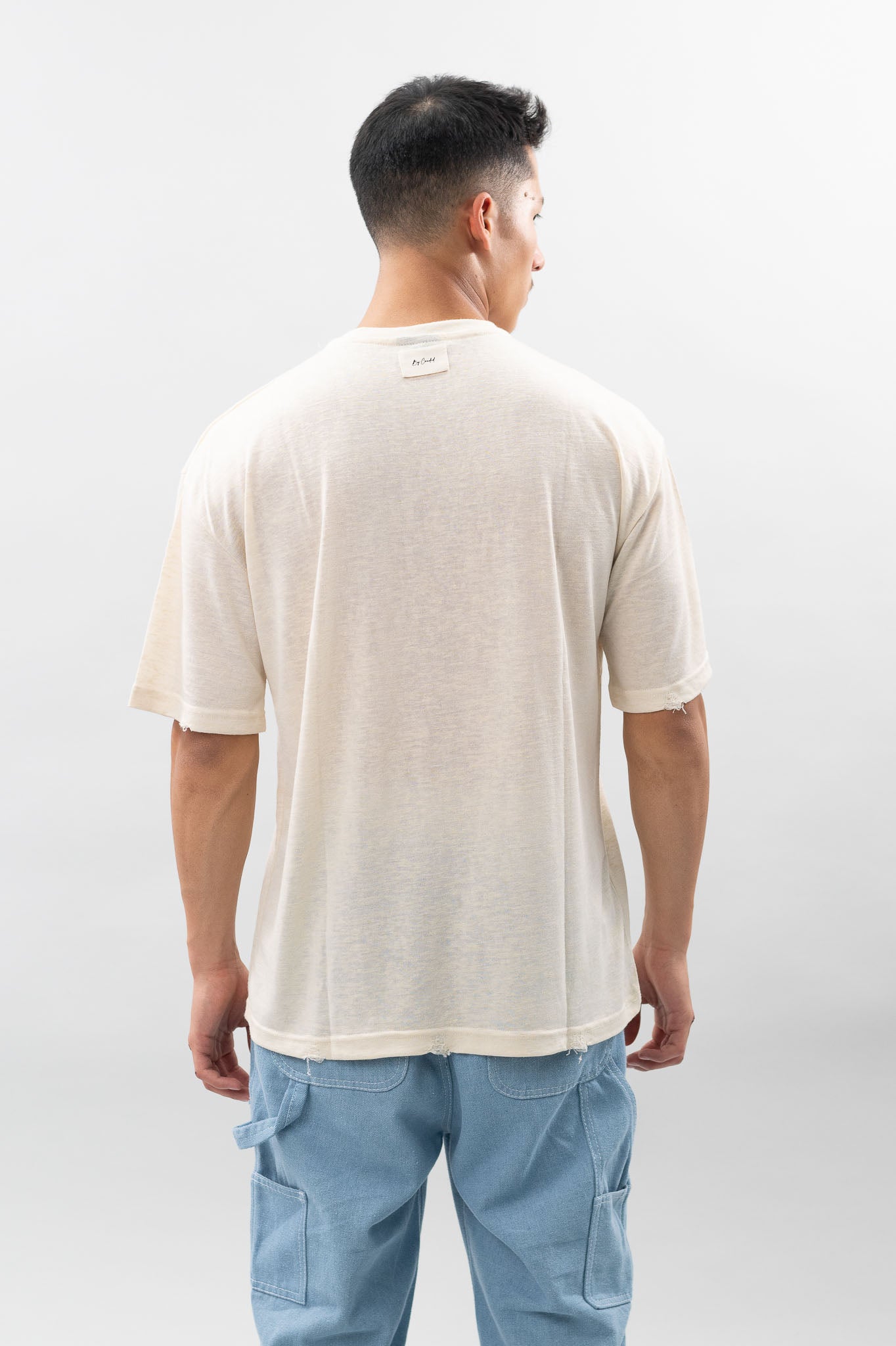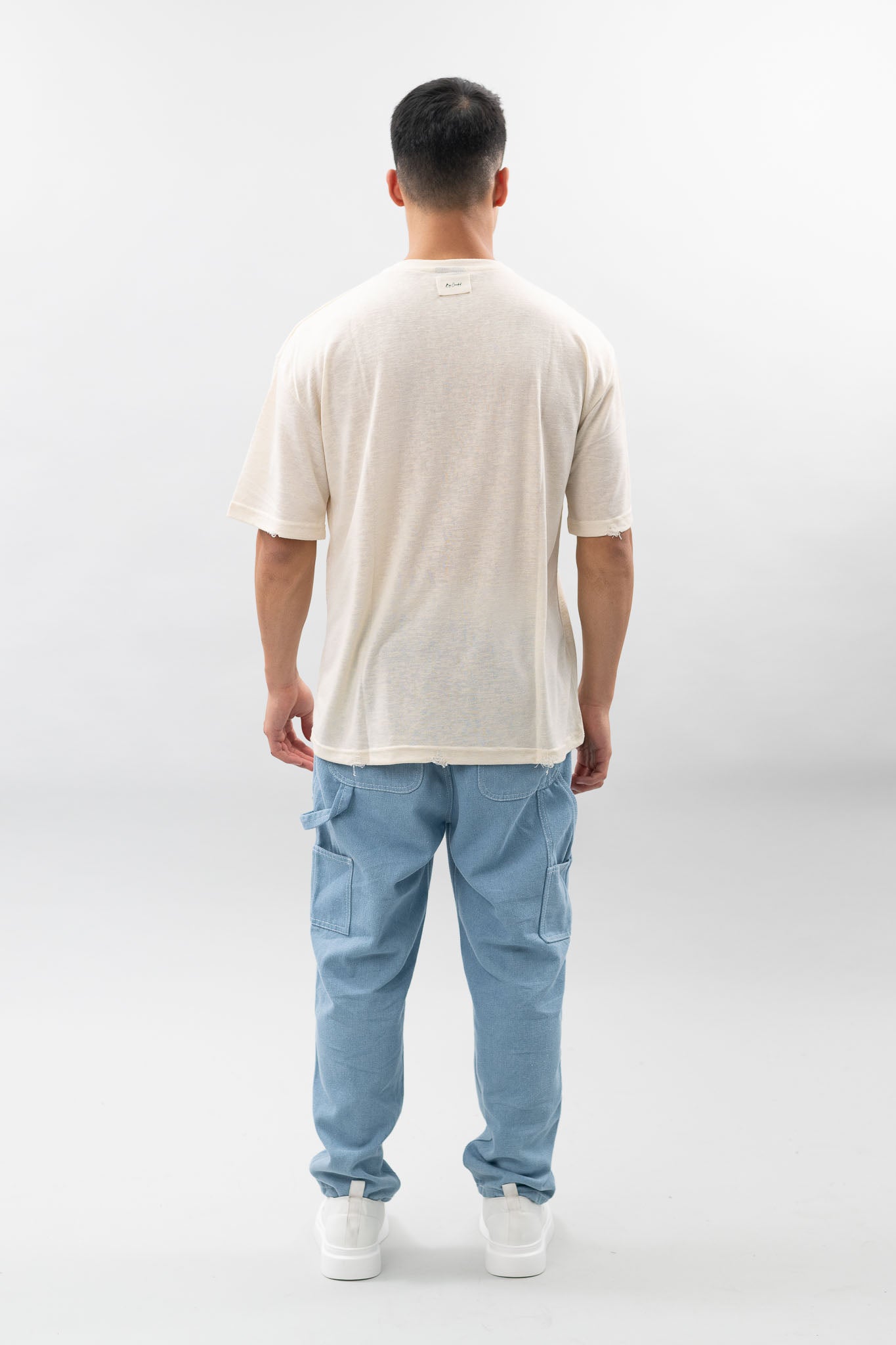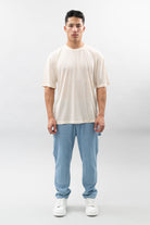 חולצה קצרה פשתן בגזרת אוברסייז - vanilla (אבן)