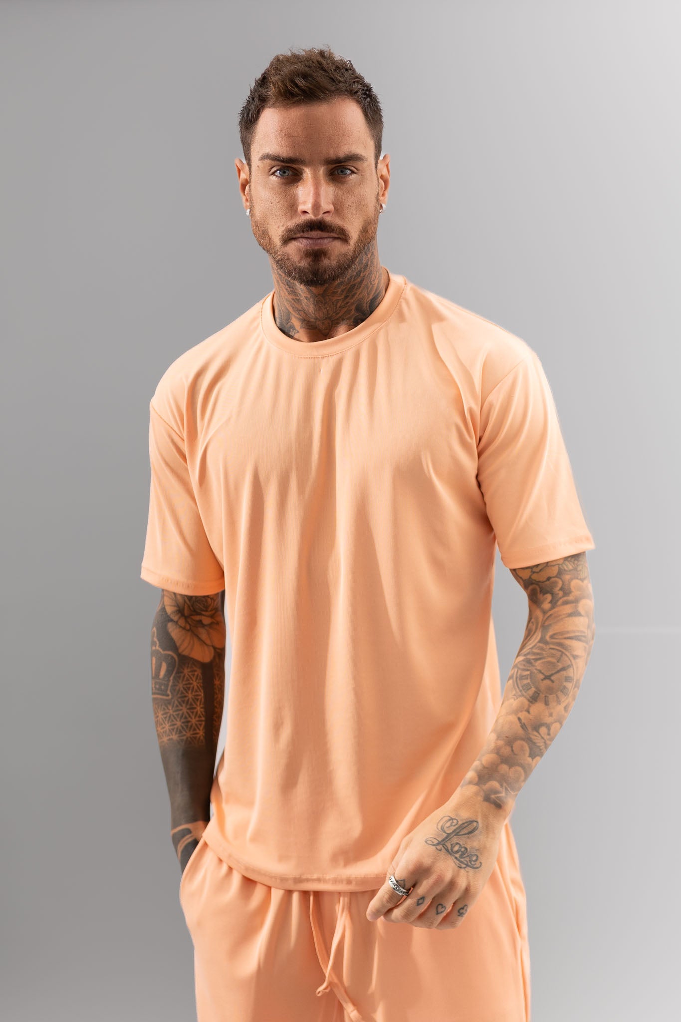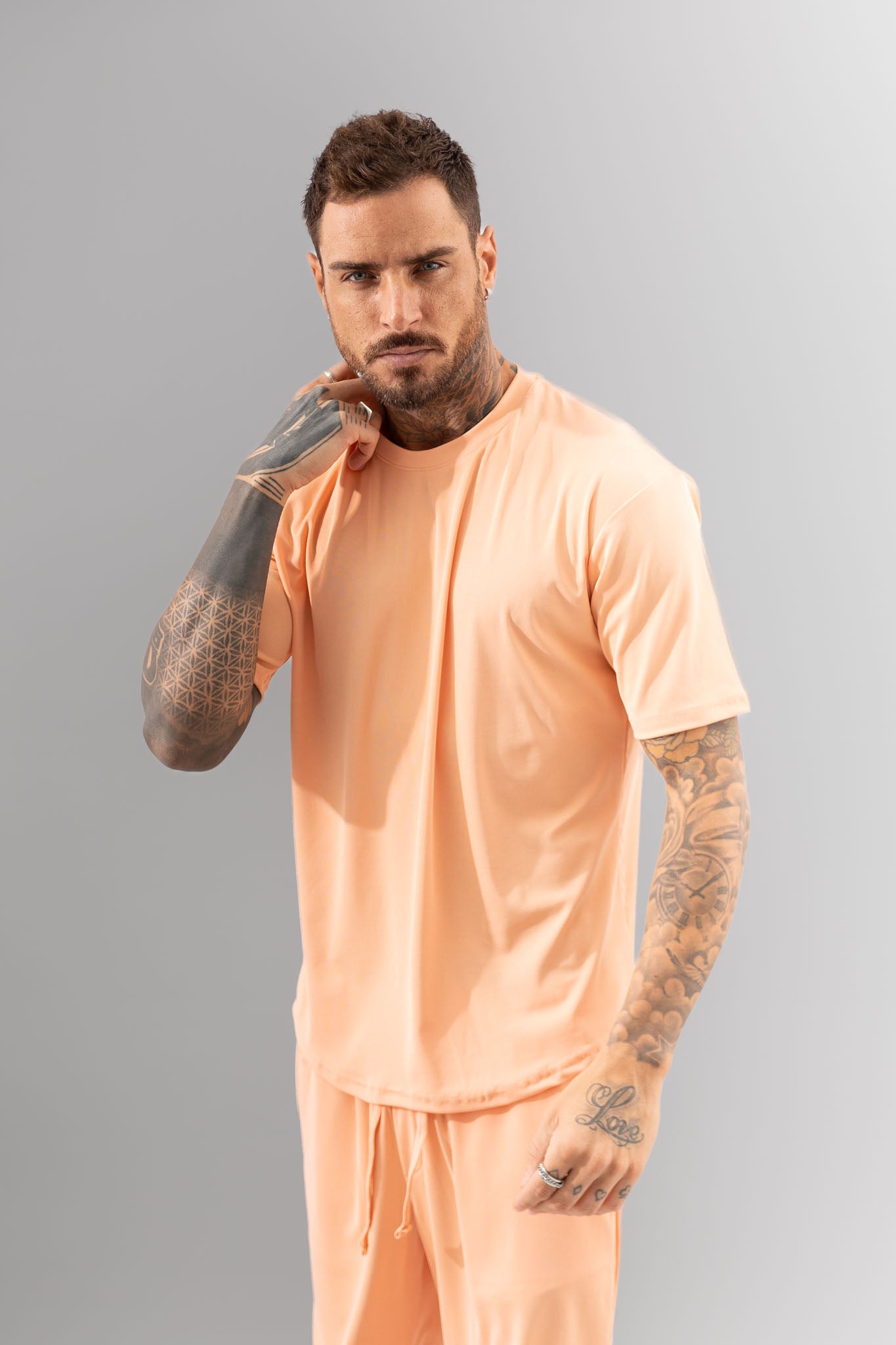 חולצה קצרה בגזרת מיד אוברסייז- LAXMI (אפרסק)