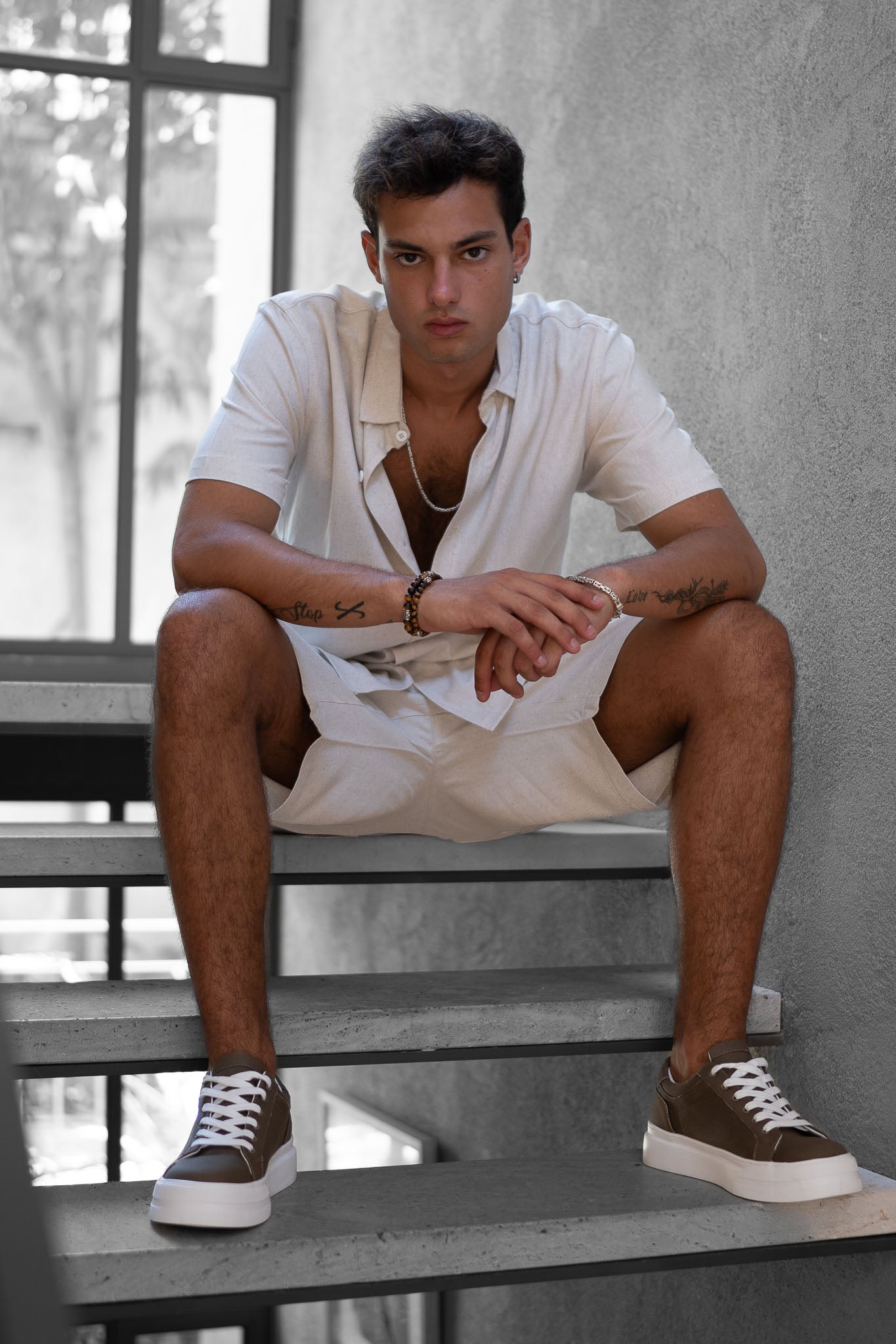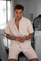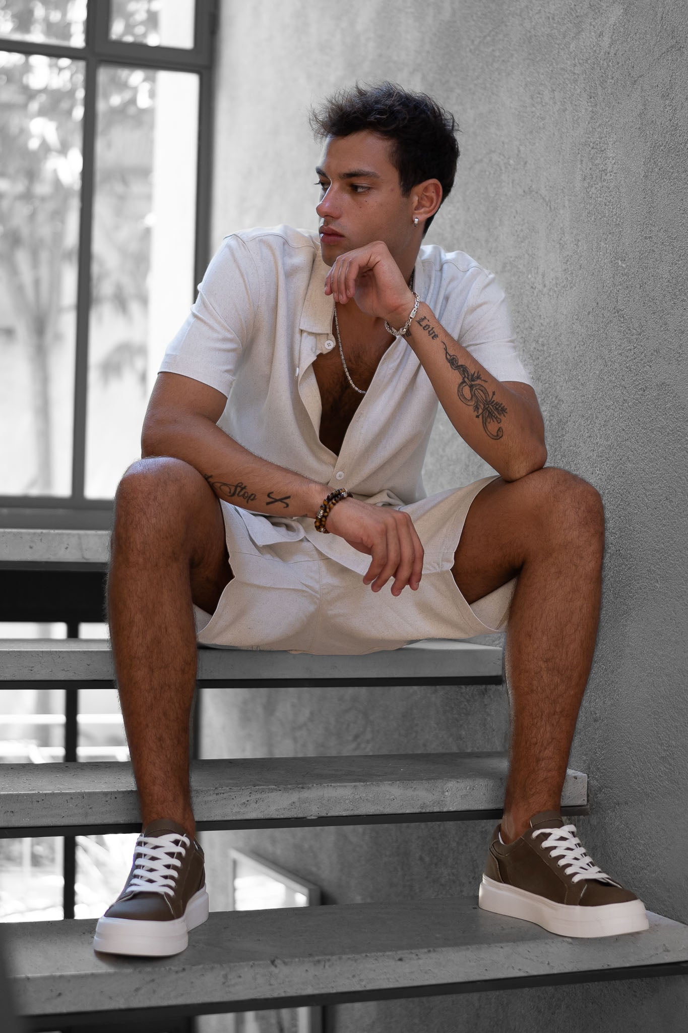 מכופתרת קזואל קצרה בגזרת slim fit מבד פשתן רך ואוורירי.