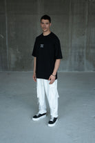 דוגמן בגובה 1.84 משקל 70 לובש מידה L חולצת קצרה, עם עיצוב פשוט שמספק מראה אלגנטי ונעים.