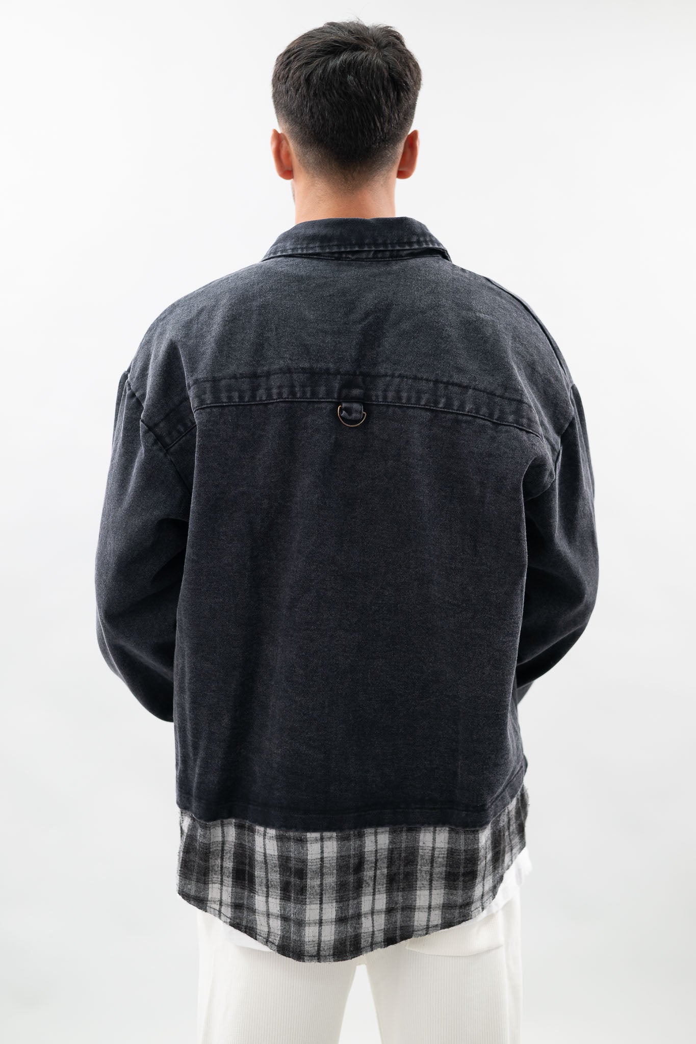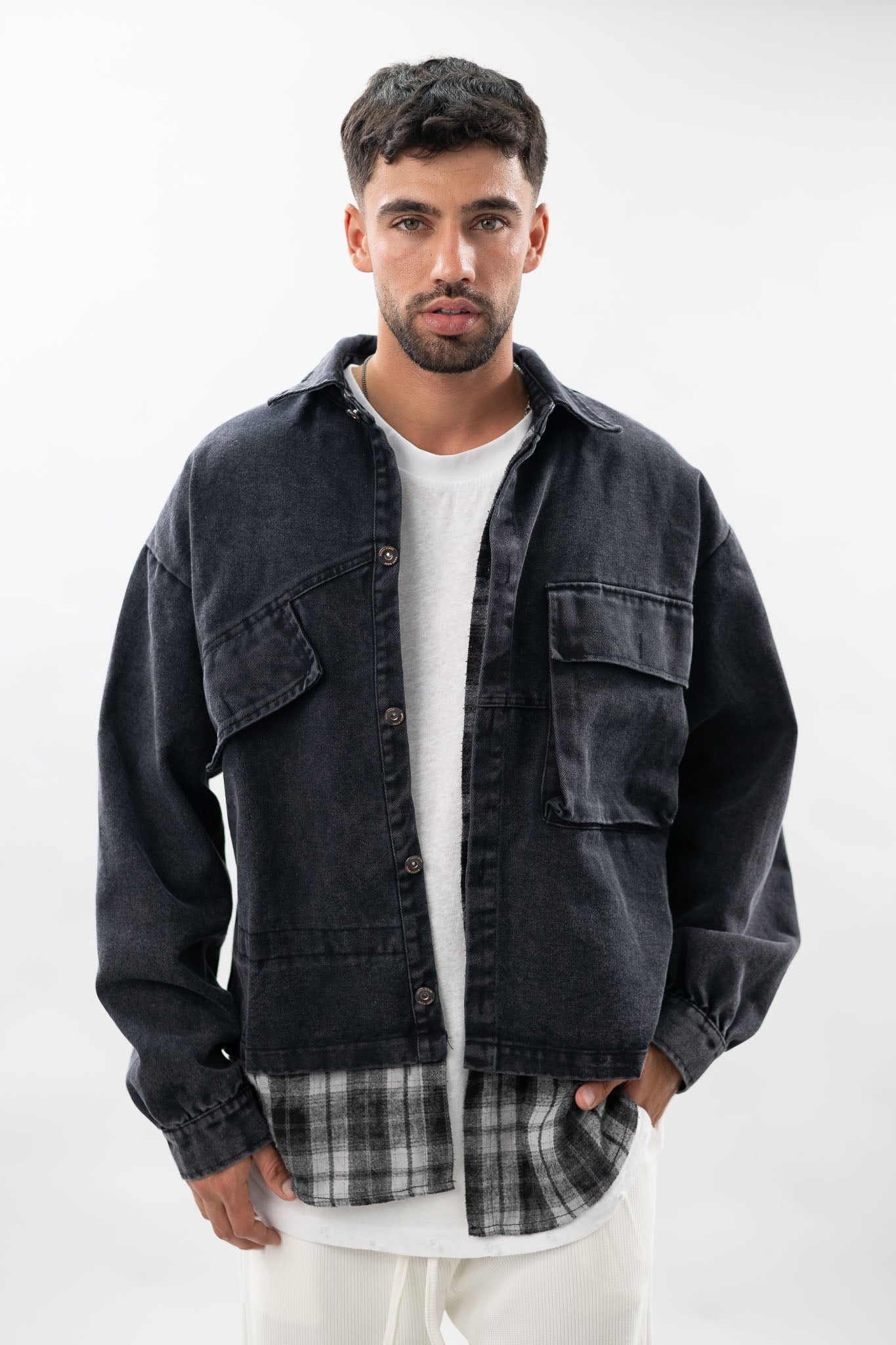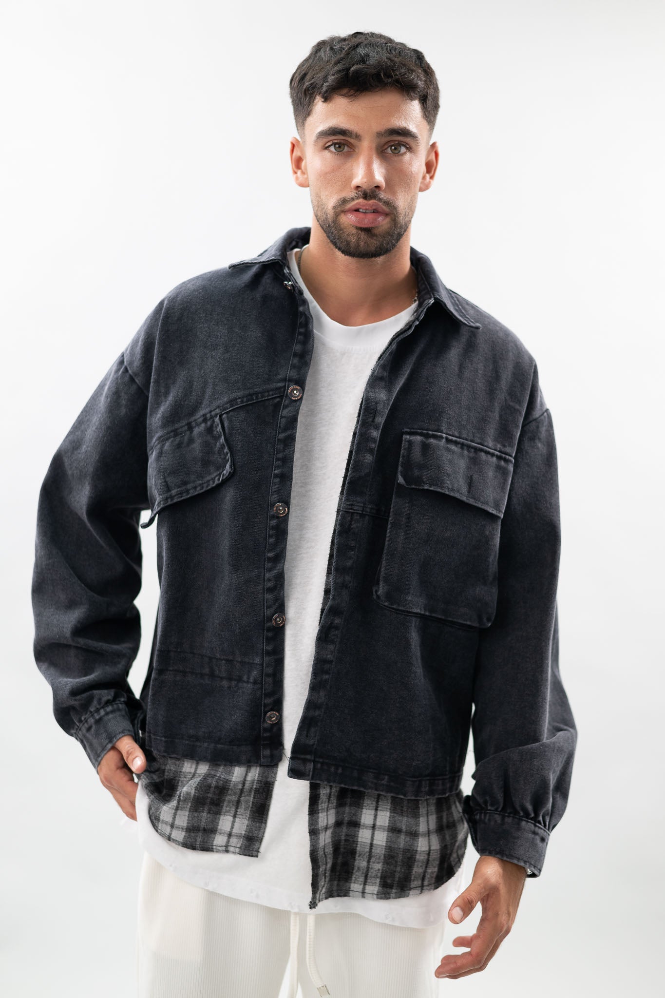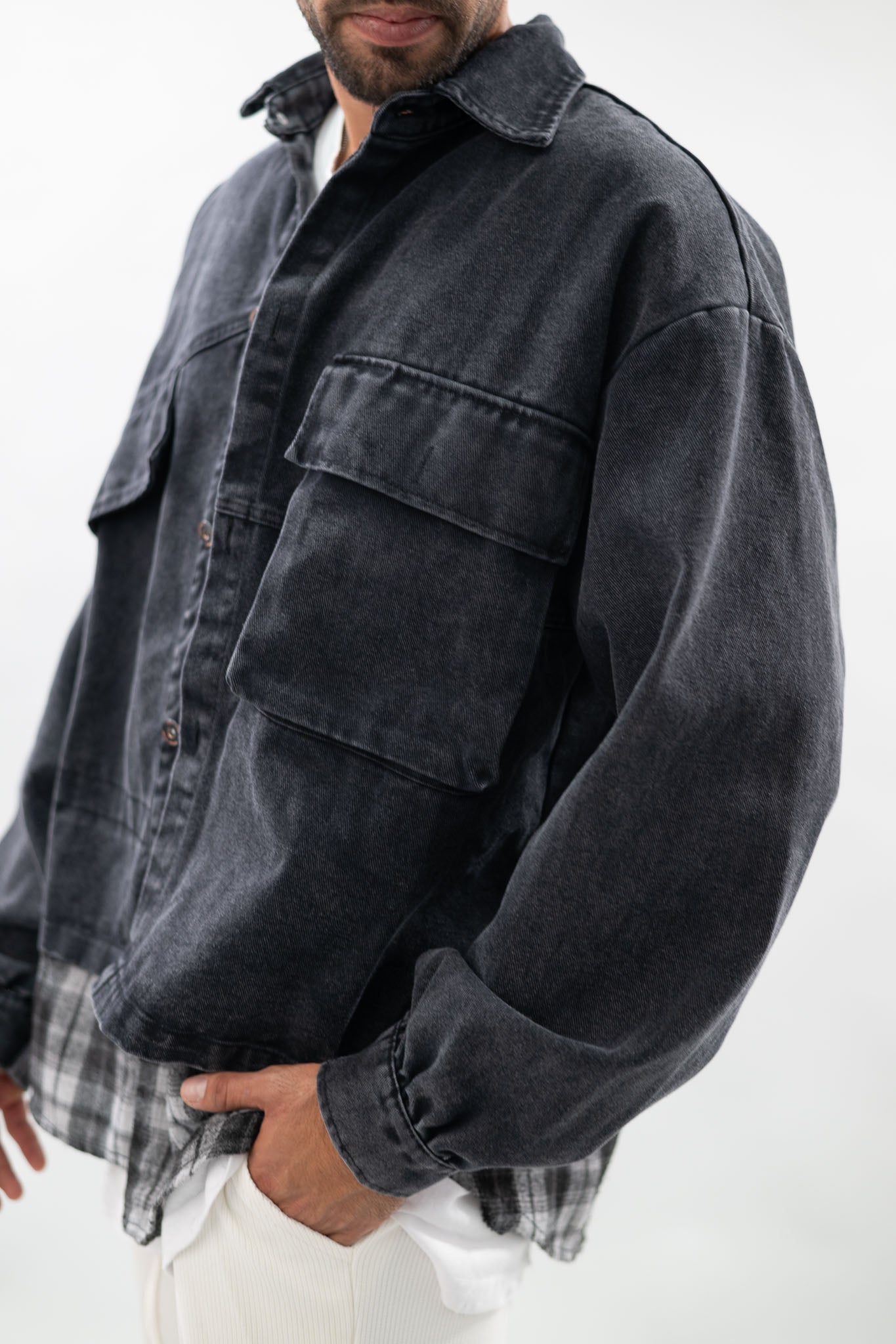 ז'קט ג'ינס לגבר עם סגירת כפתורים, כולל כיסים שמוסיפים לו מראה מעוצב ומודרני.