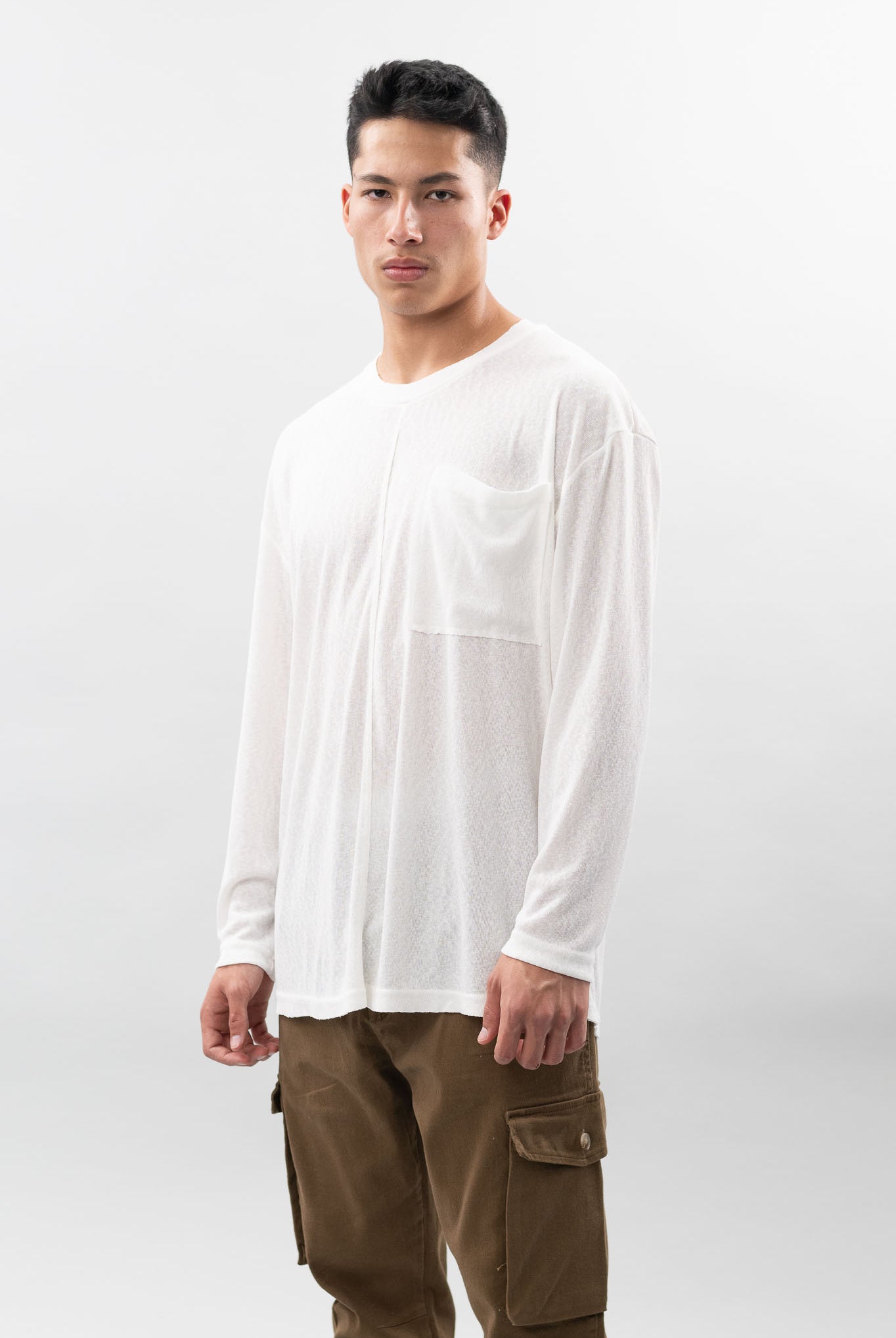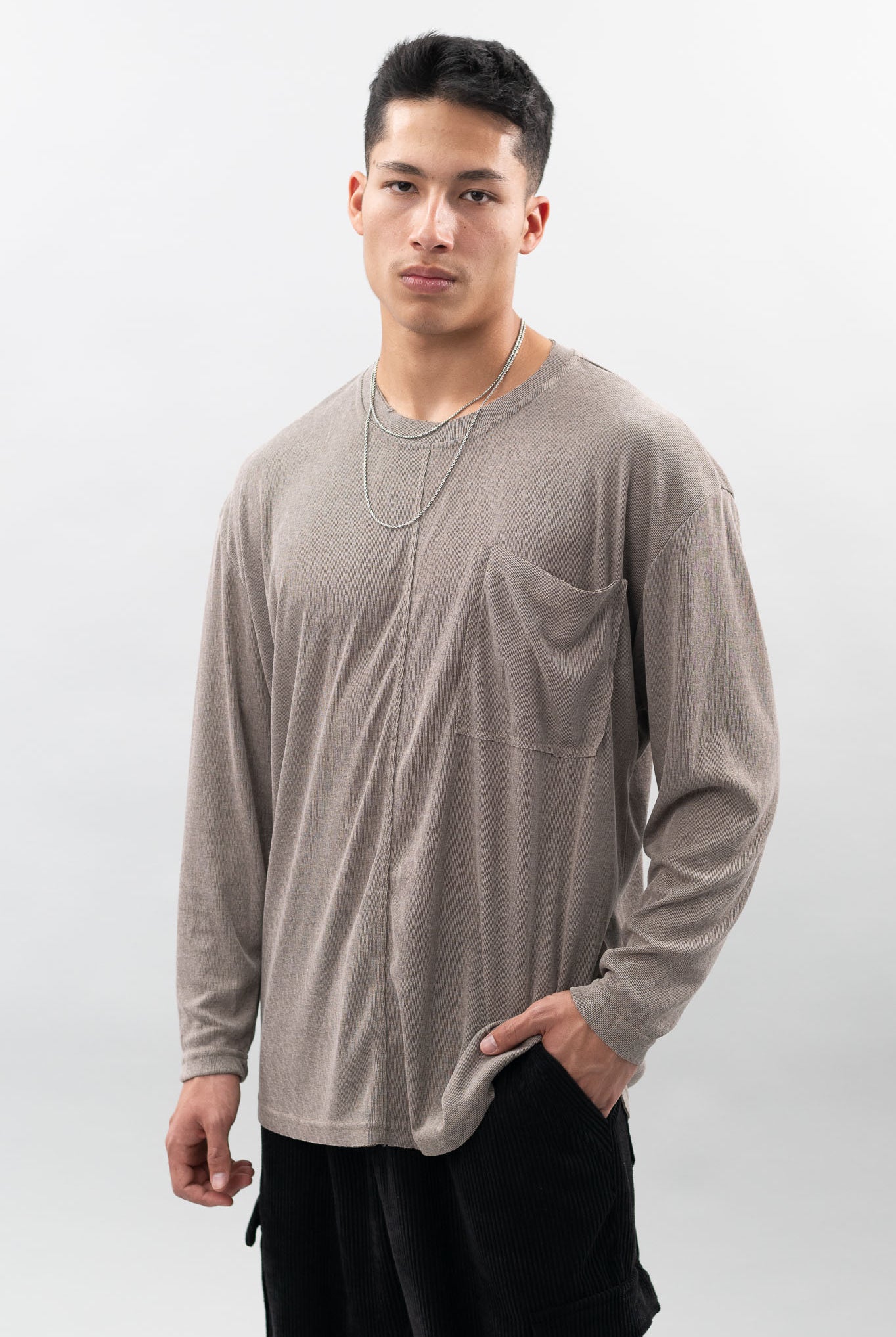 טי-שירט עם שרוולים ארוכים, מעוצבת עם כיס מלפנים.