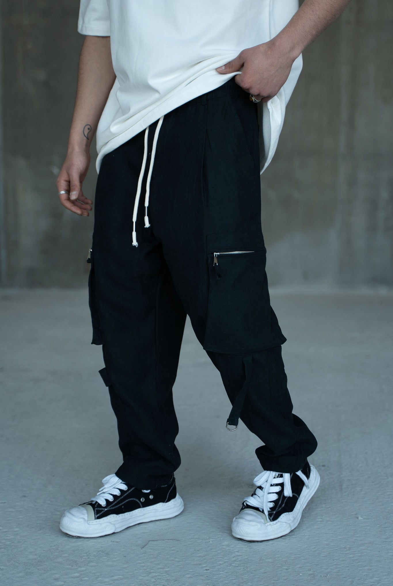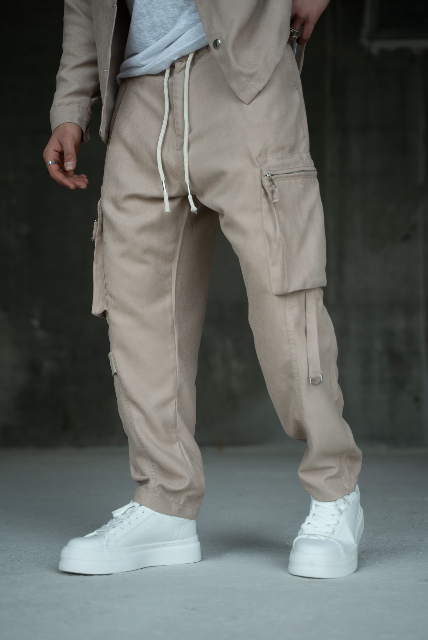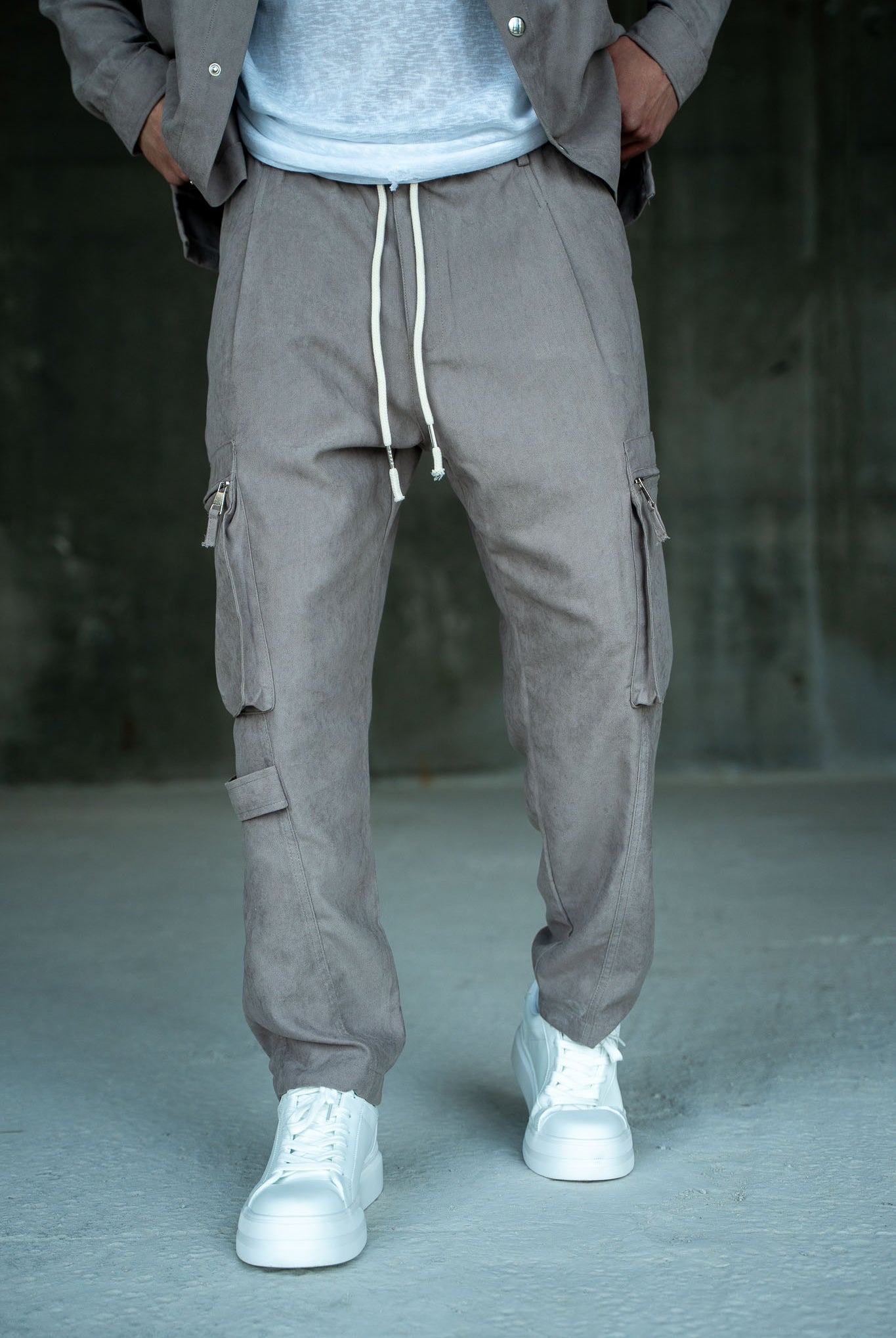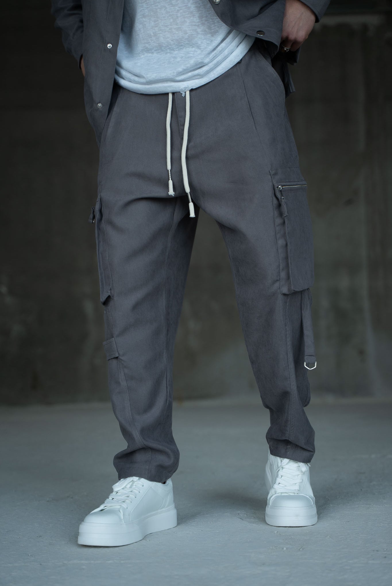 דגמח ארוך מעוצב עם כיסים בצדדים ושרוכים לנוחות מקסימלית.