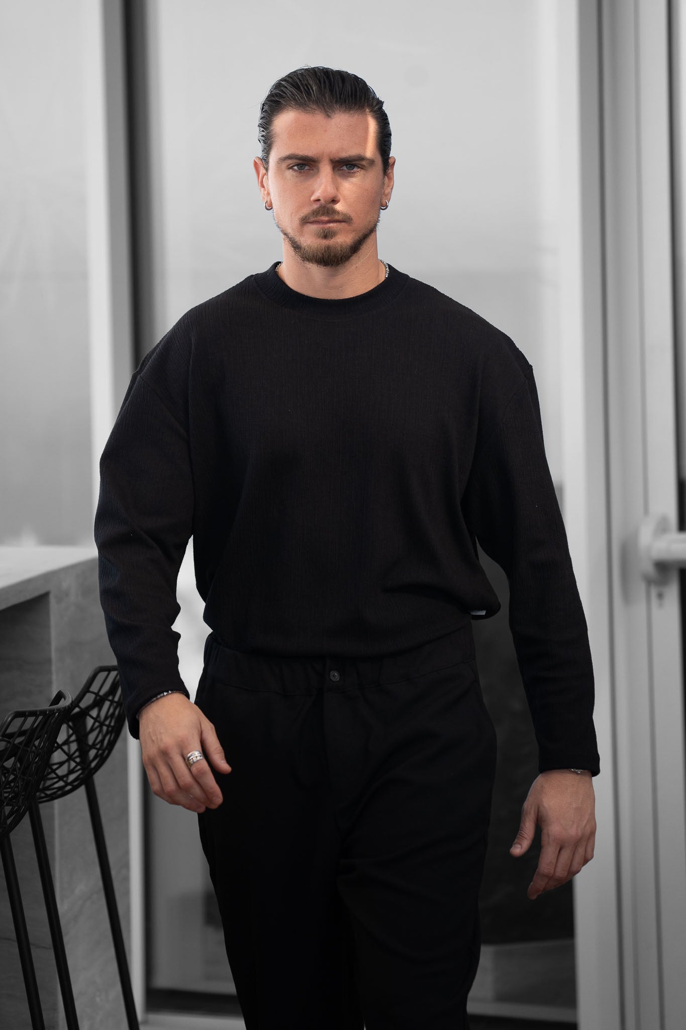 טי-שירט עם שרוולים ארוכים בגזרת סופר אוברסייז,