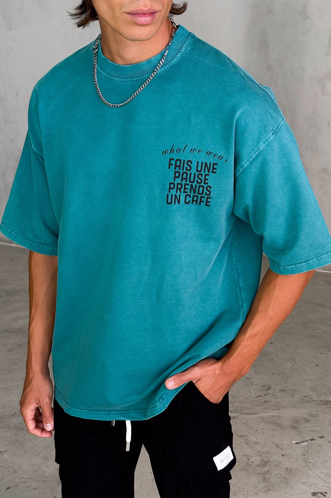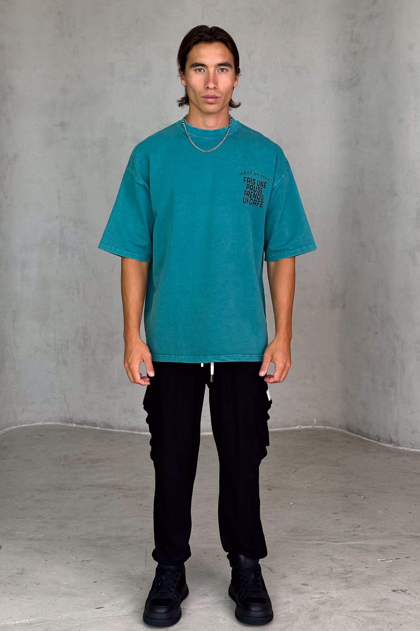 חולצת פרינט אוברסייז - mksm (ירוק)