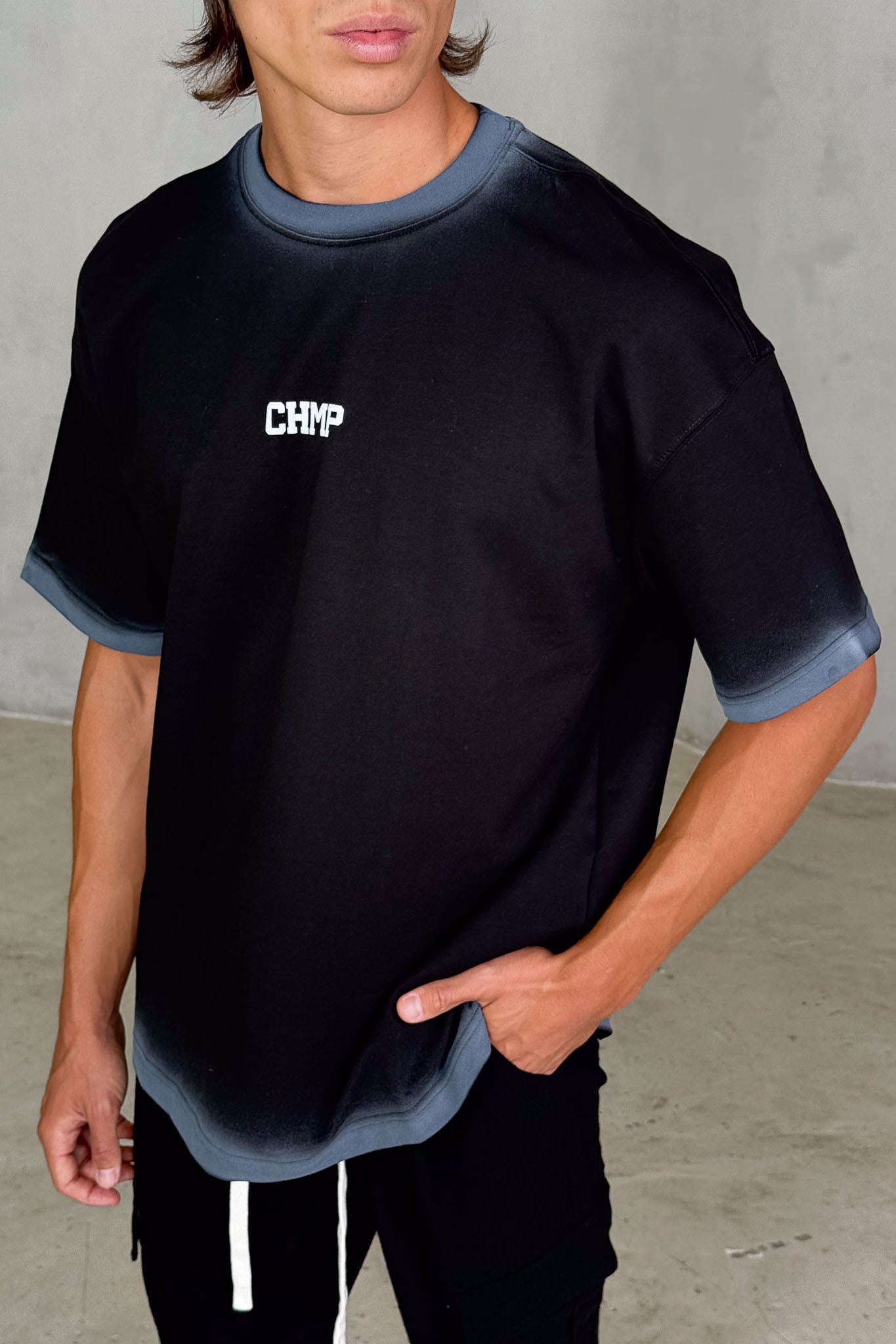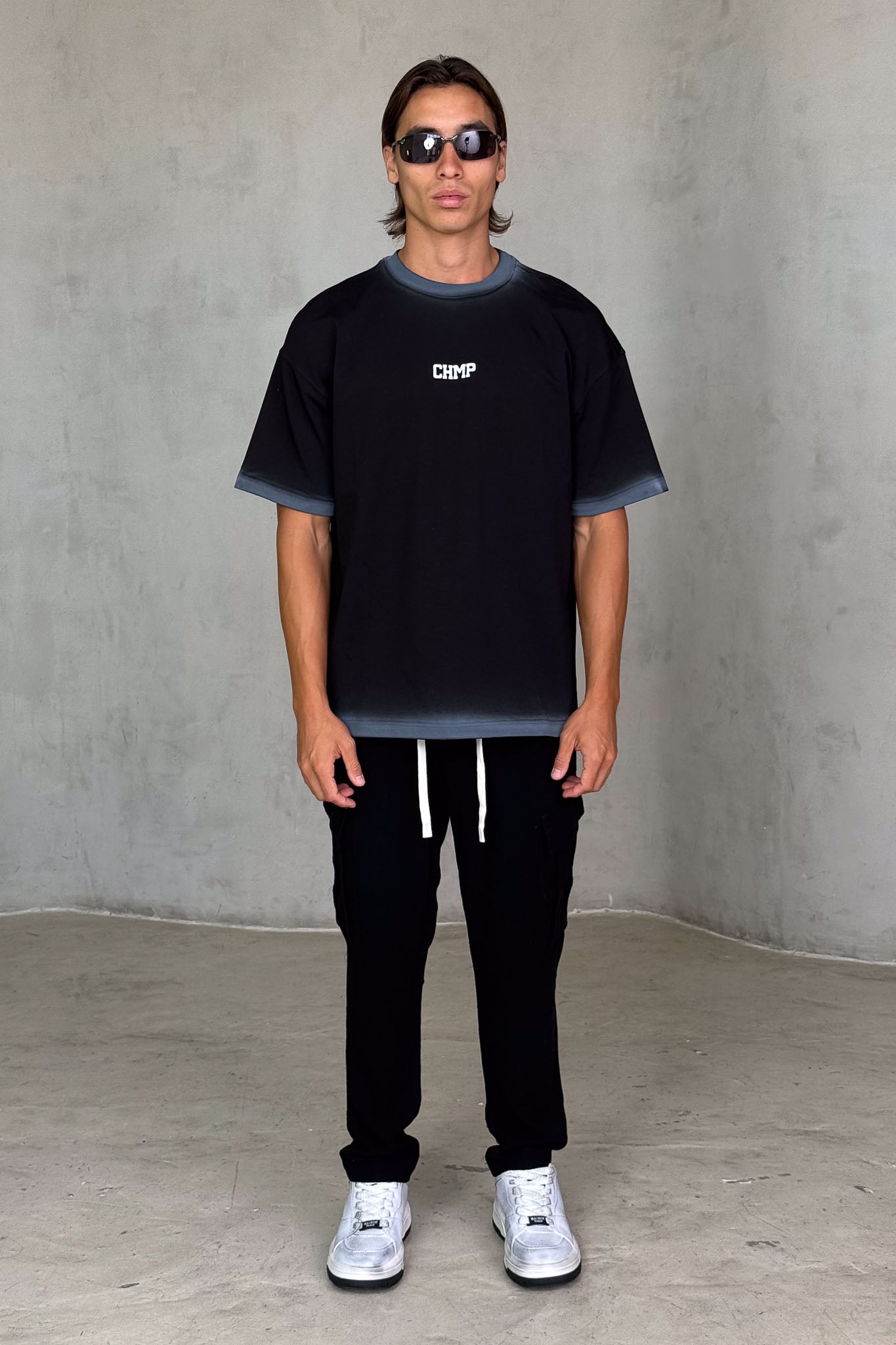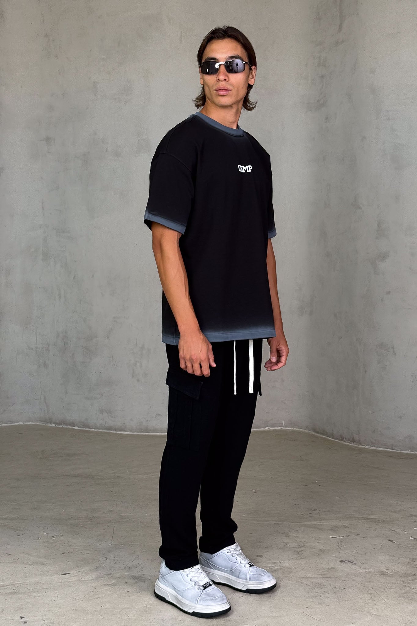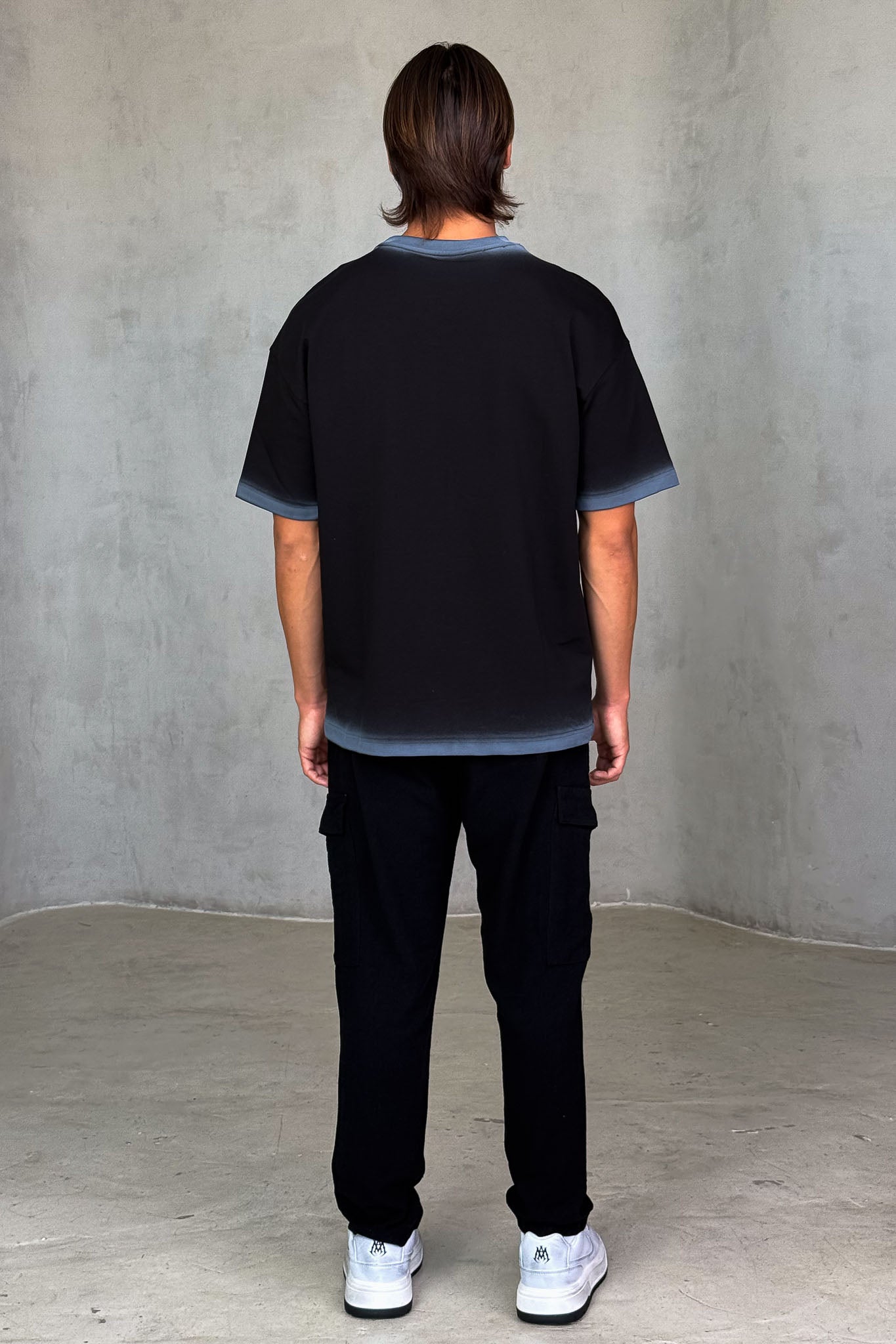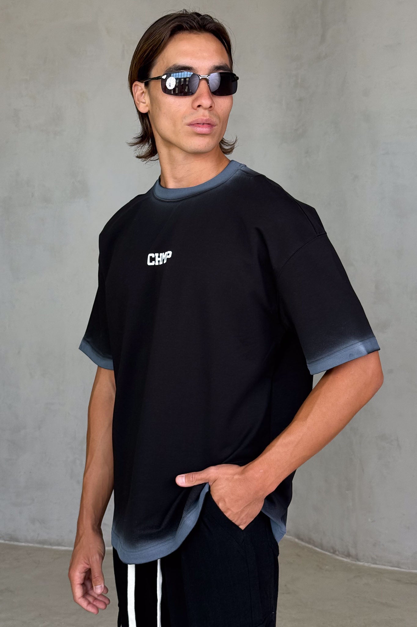 חולצה שחורה עם הדפס קונטרסטי שמקפיץ את הלוק.