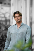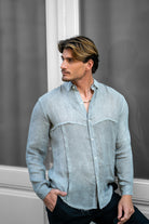 מכופתרת פשתן בגזרת מיד אוברסייז - Edge (אפור בהיר)