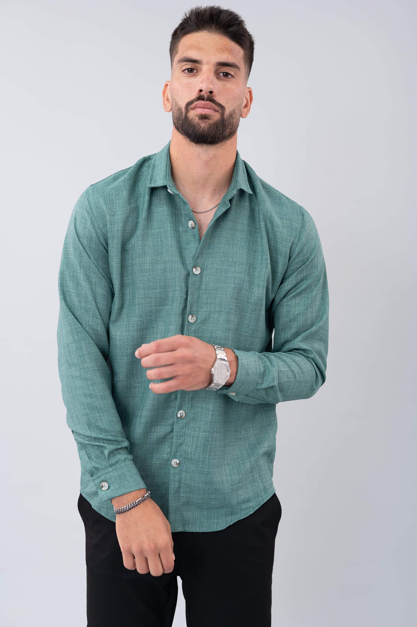 מכופתרת מבד פשתן מבריק Del (ירוק)