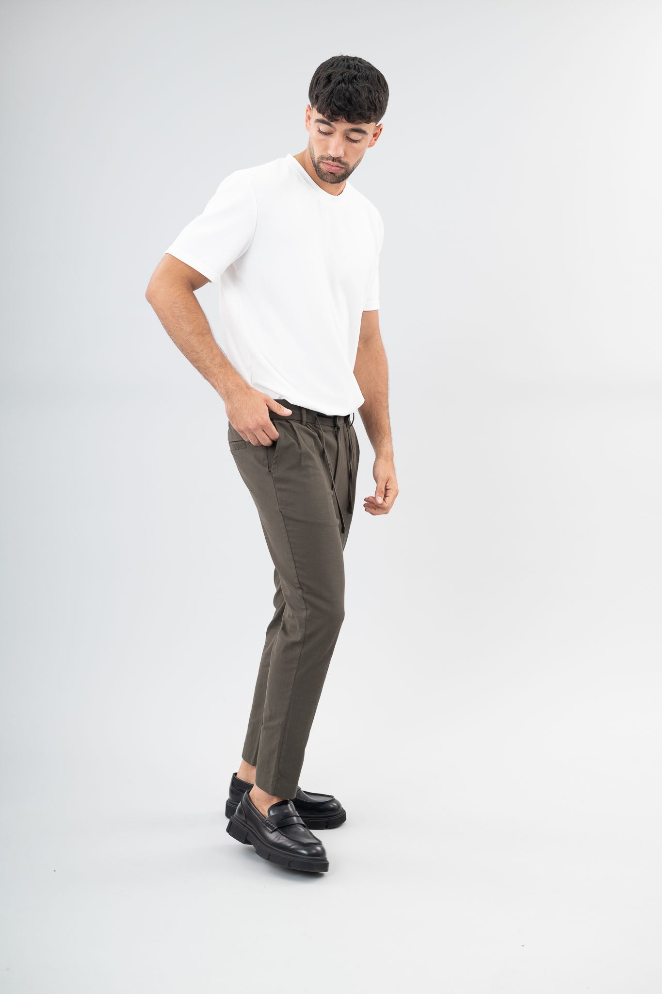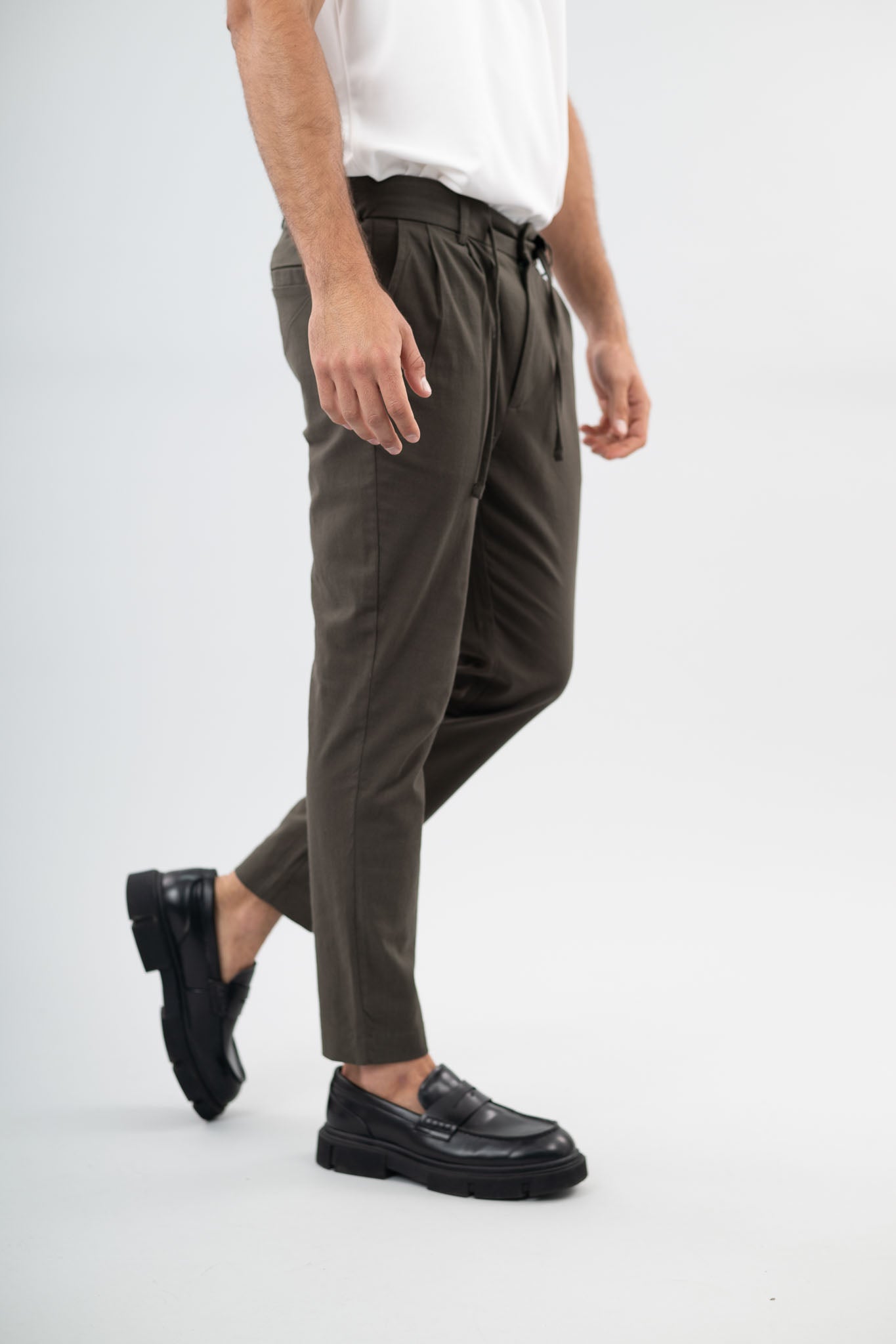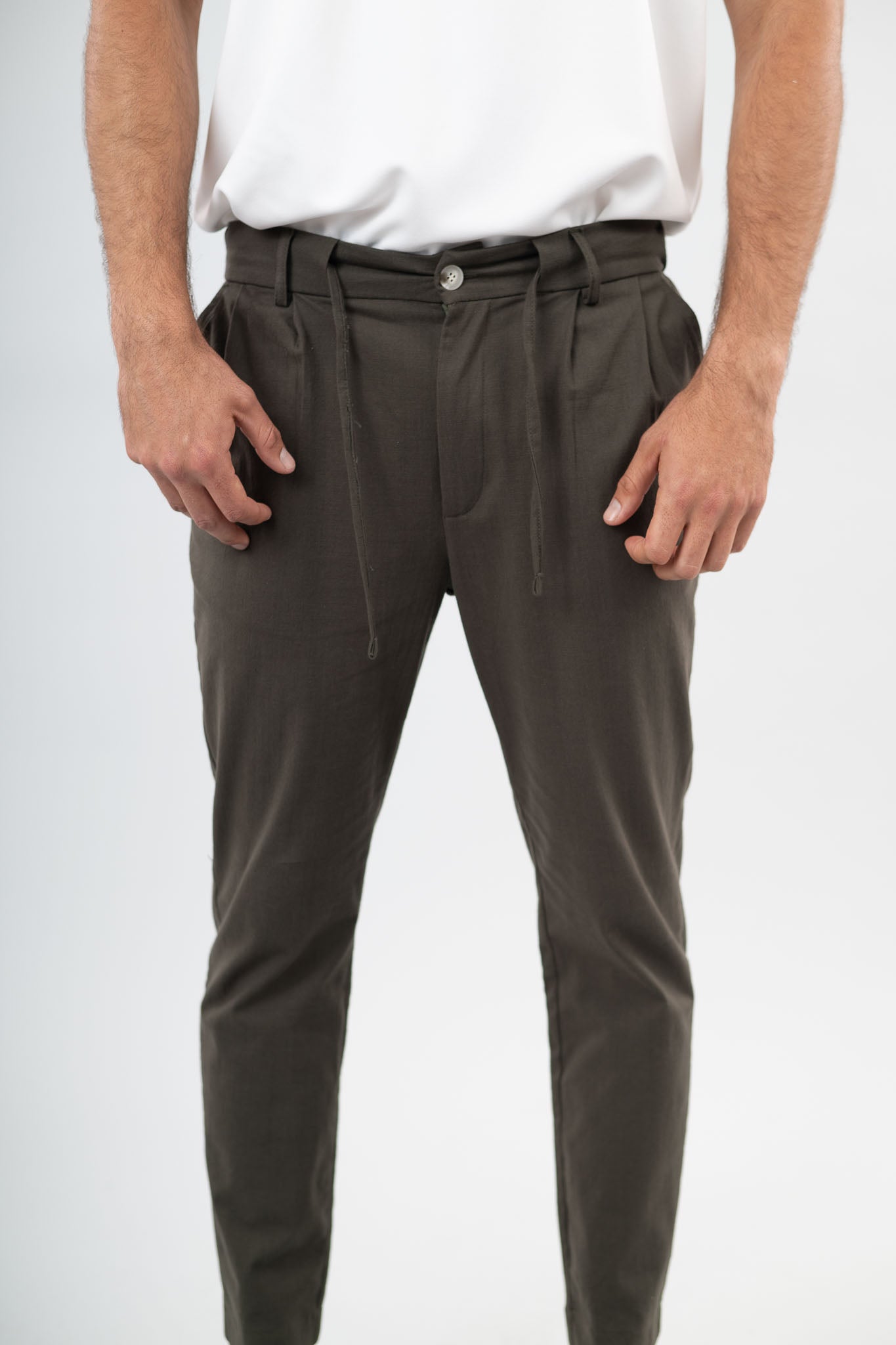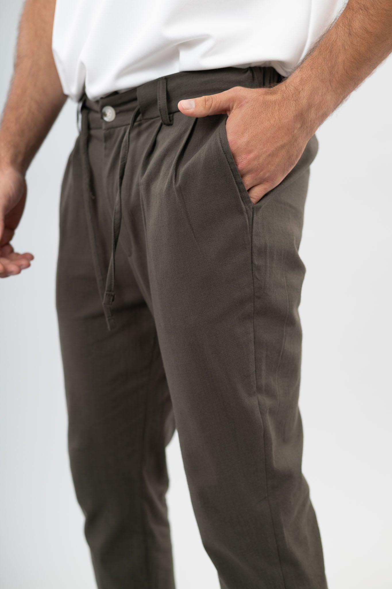 מכנס פשתן דק בצבע זית..