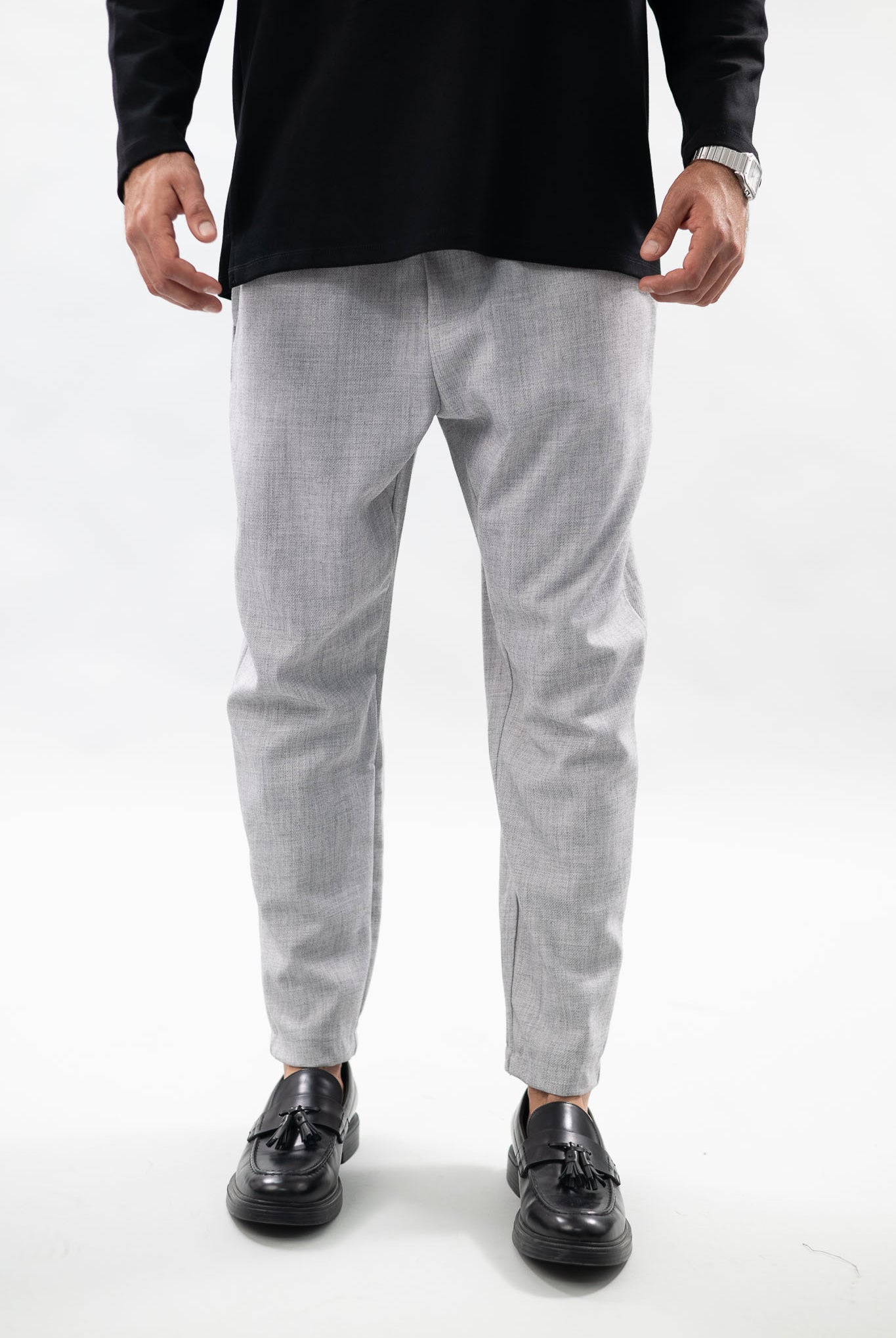 מכנסיים ארוכים בגזרת oversize , מבד במראה פשתן איכותי, מציעים שילוב מושלם בין נוחות לסטייל ,