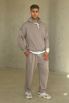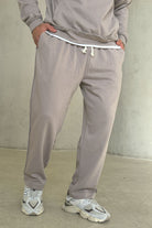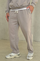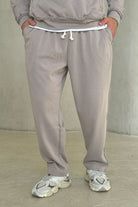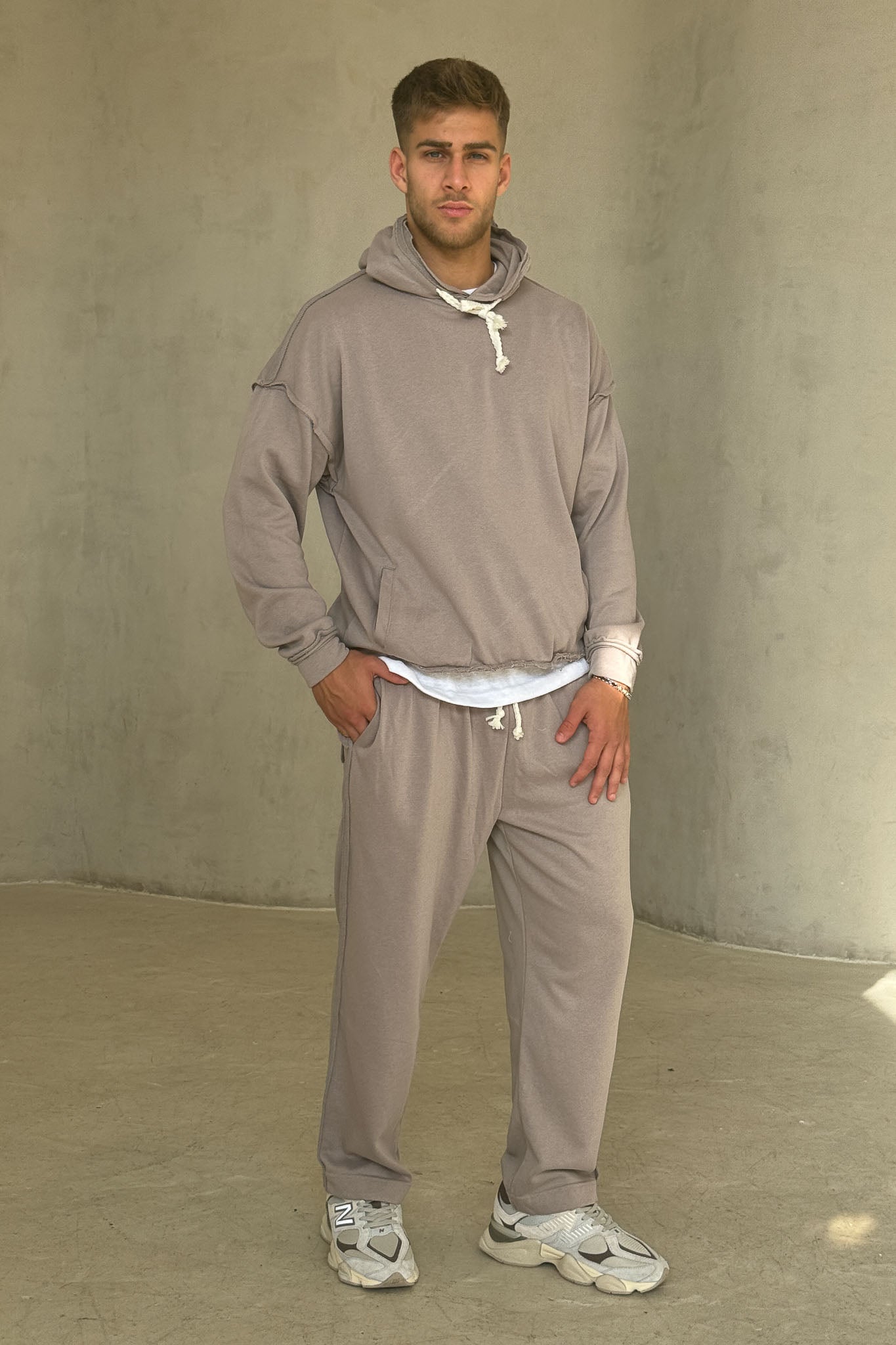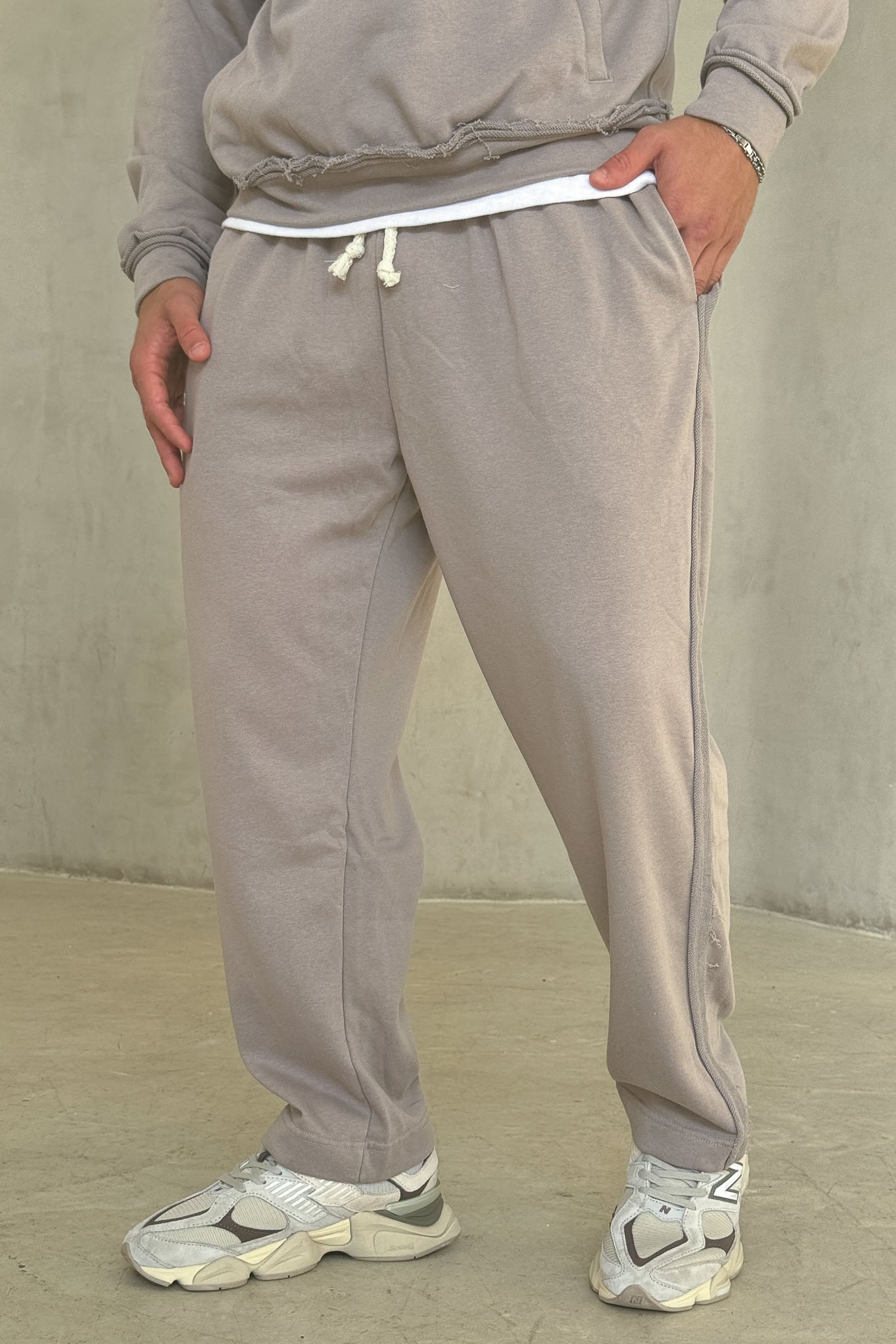 מכנס טרנינג אפור בגזרה נוחה ומשוחררת, מבד רך ונעים עם גומי ושרוך במותן לנוחות מקסימלית. יושב מושלם על הגוף ונותן לוק נקי, מודרני ויומיומי. מתאים לשילוב עם פוטר תואם או טי-שירט לבנה נקייה לסטייל מינימליסטי ומדויק.