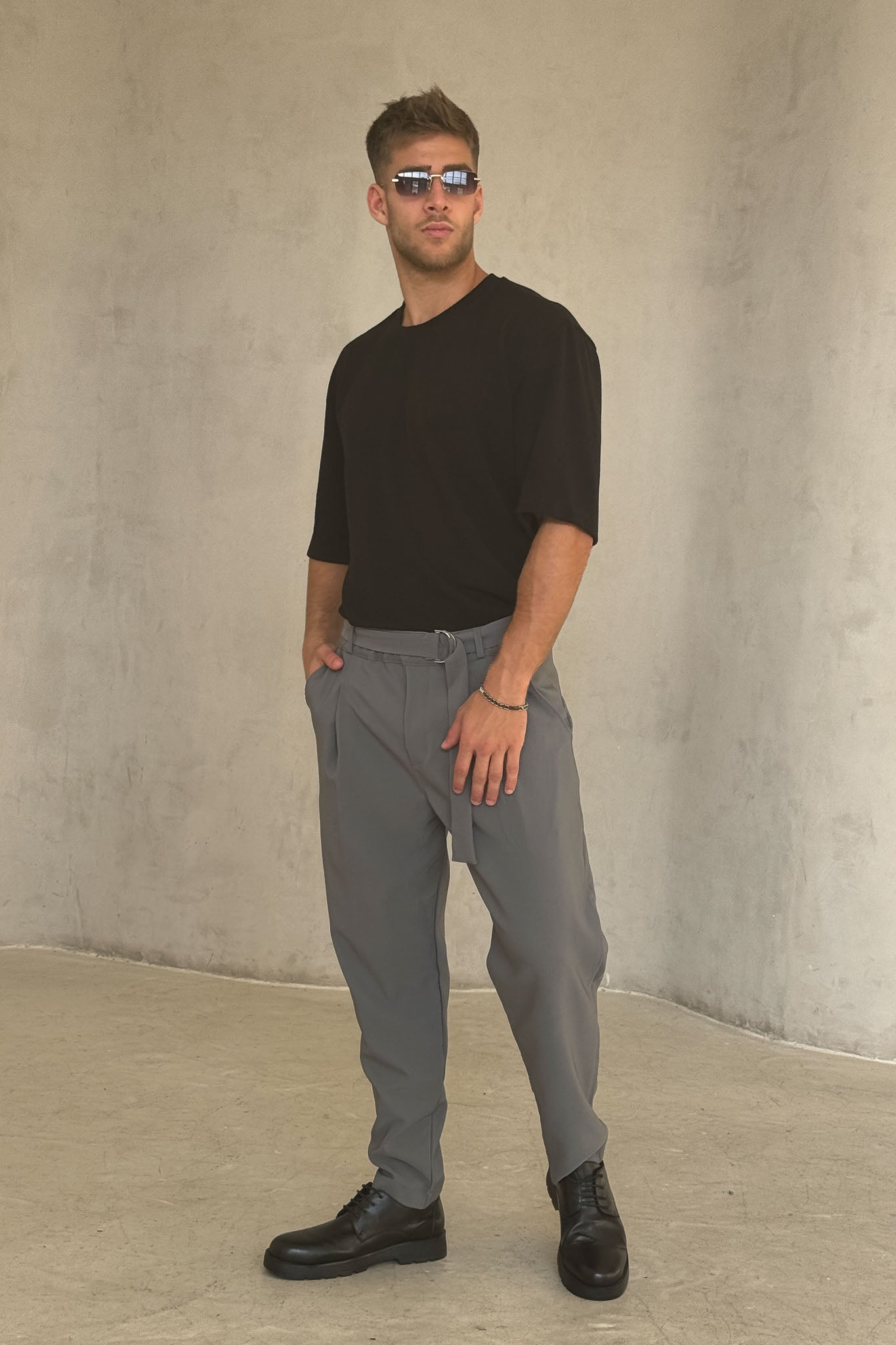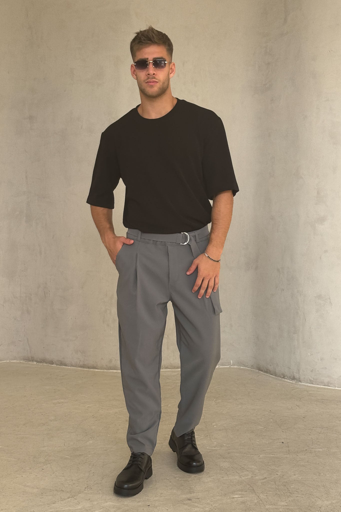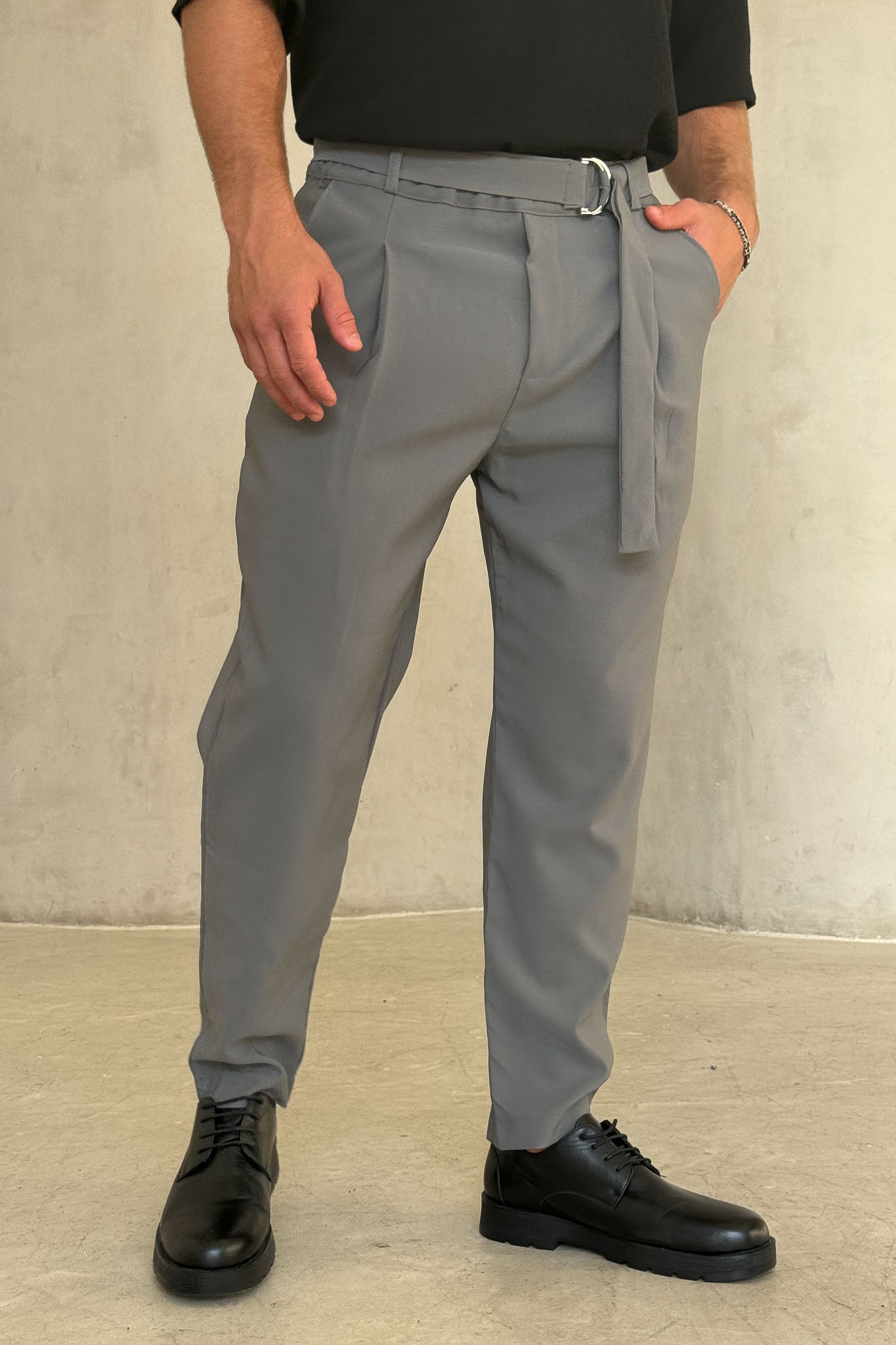 מכנס ספורט אלגנט, מבד שיושב יפה על הגוף עם חגורה ואבזם בנוסף לקפלים מלפנים שמוסיפים סטייל מיוחד.