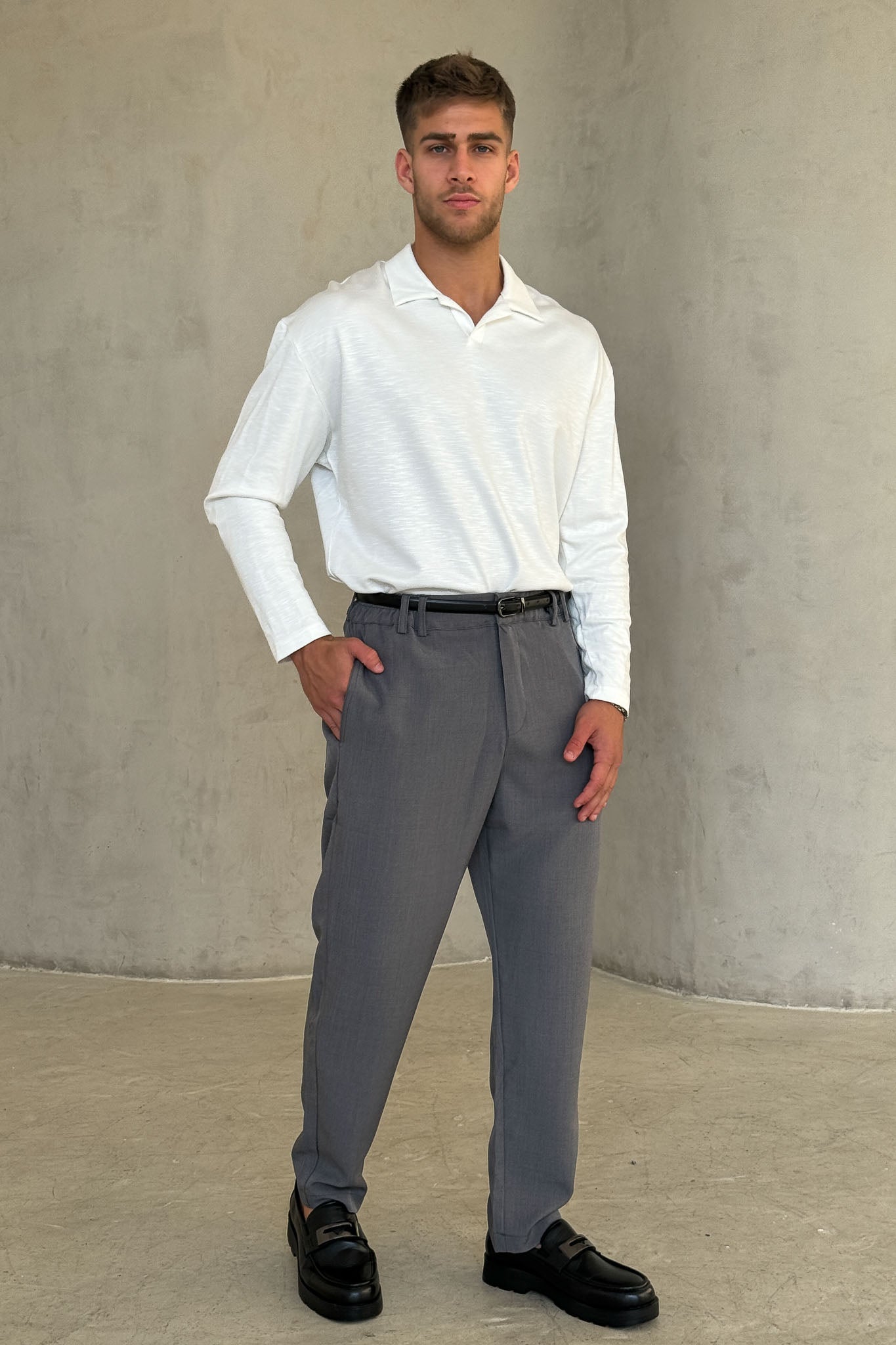 מכנס אבן אלגנטי בגזרה נקייה וישרה, עשוי מבד איכותי ונושם שמעניק תחושת נוחות לצד מראה מוקפד. הטקסטורה העדינה והכפתור הבהיר יוצרות לוק יוקרתי שמתאים לעבודה, לאירועים או ליום-יום בסטייל גבוה. משתלב מעולה עם חולצות פולו, טי-שירטים או עליוניות אלגנטיות.