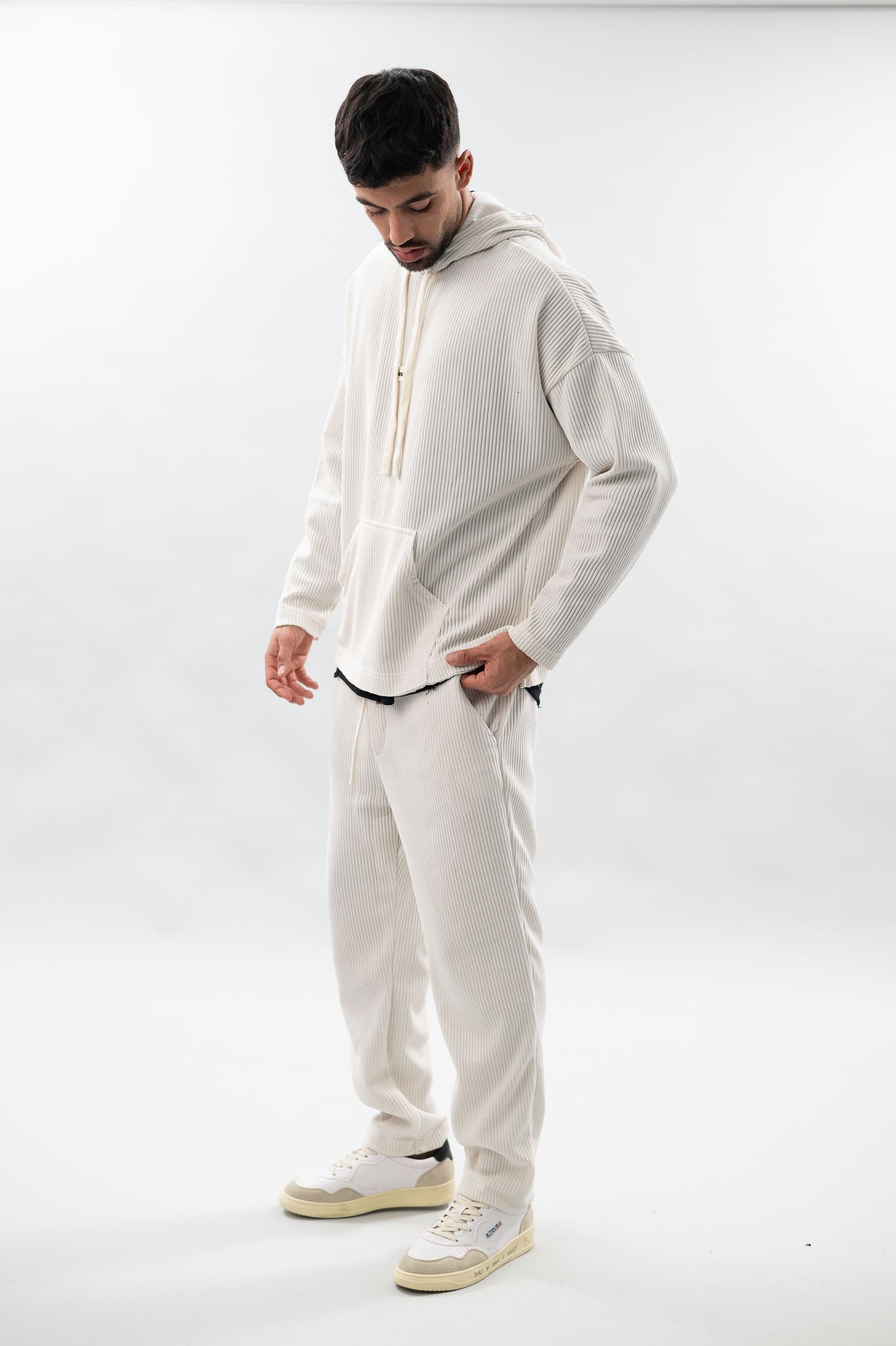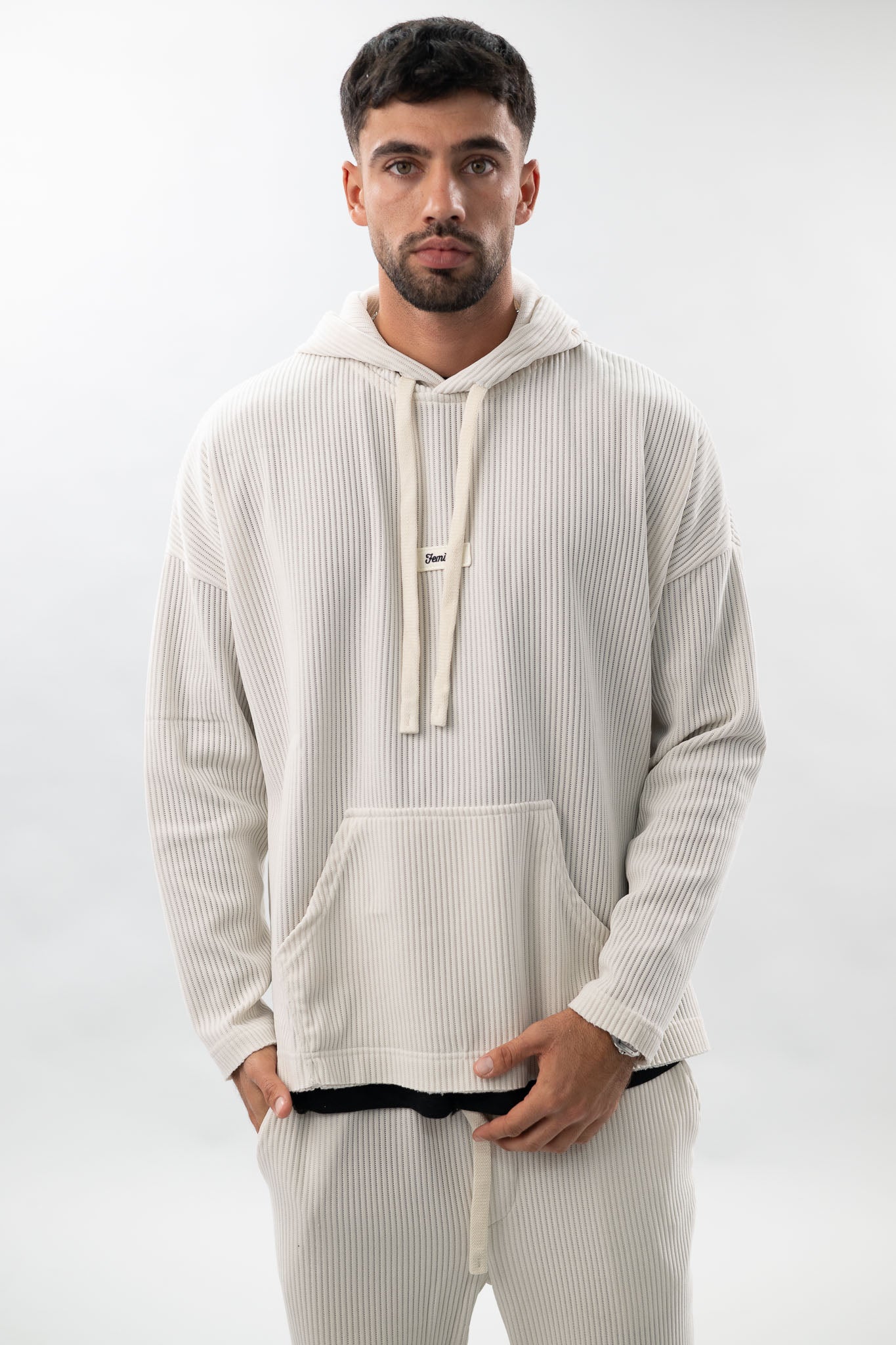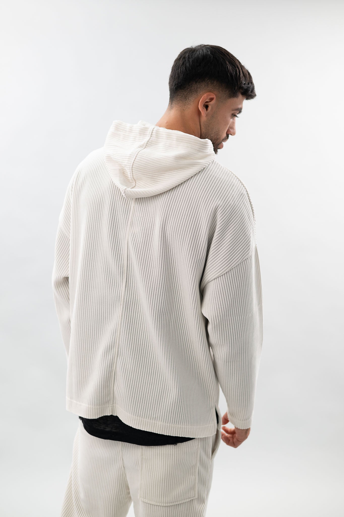 עם שילוב טקסטורת פסים להענקת סטייל ,בד נוח ואיכותי שמעניק תחושת נוחות תמידית. קפוצ'ון שהוא חלק מסט.