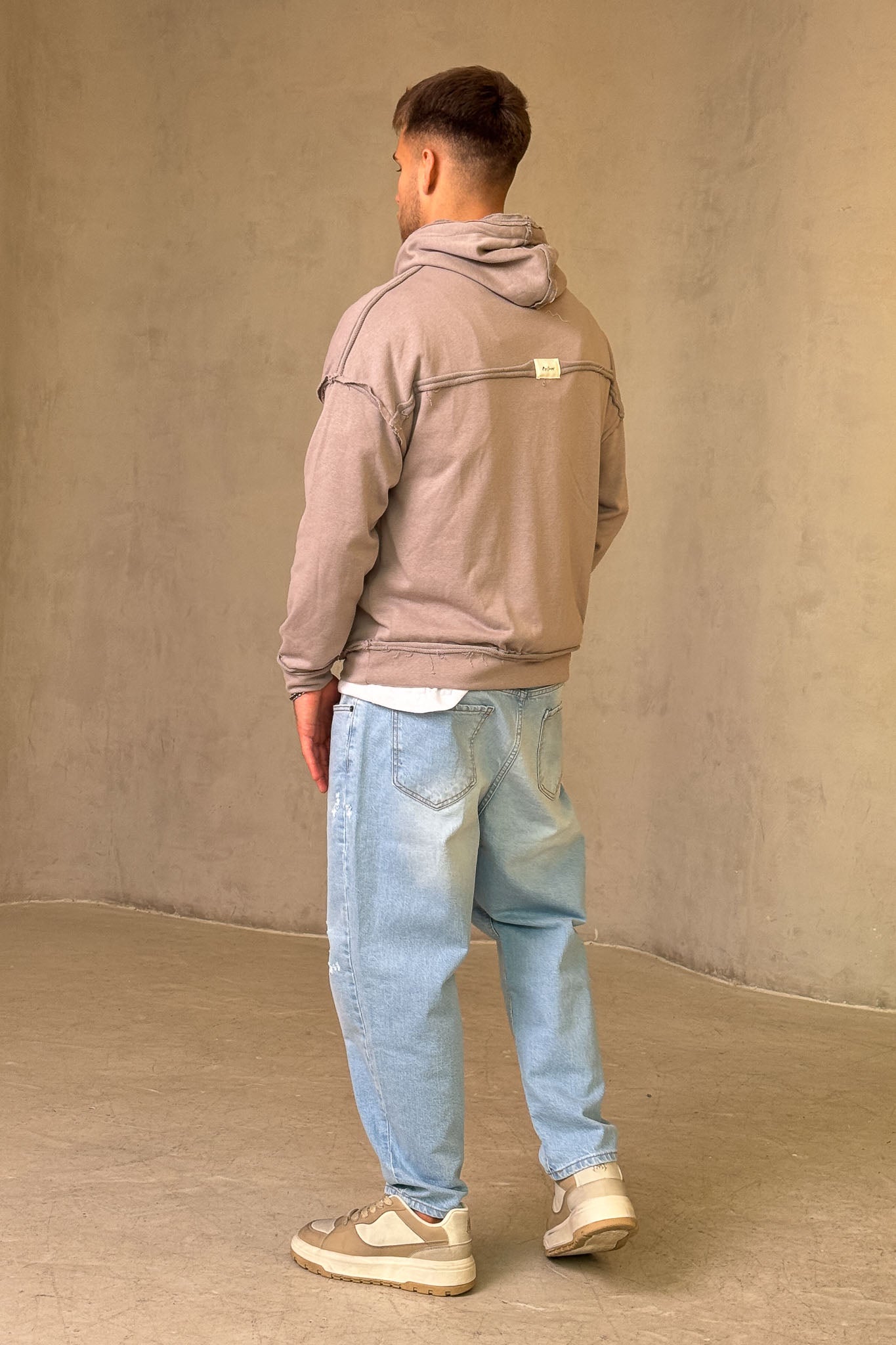 פוטר נעים ומדויק בגזרת אוברסייז עדינה, עם חוטי קשירה עבים בסגנון כבל שמוסיפים טוויסט ייחודי למראה. הקצוות הפרומים מעניקים וייב מעט מחוספס ומודרני, והבד הרך מספק נוחות מקסימלית לשימוש יומיומי. מושלם לשילוב עם ג׳ינס בהיר או מכנסי וופל ללוק אורבני קליל.
