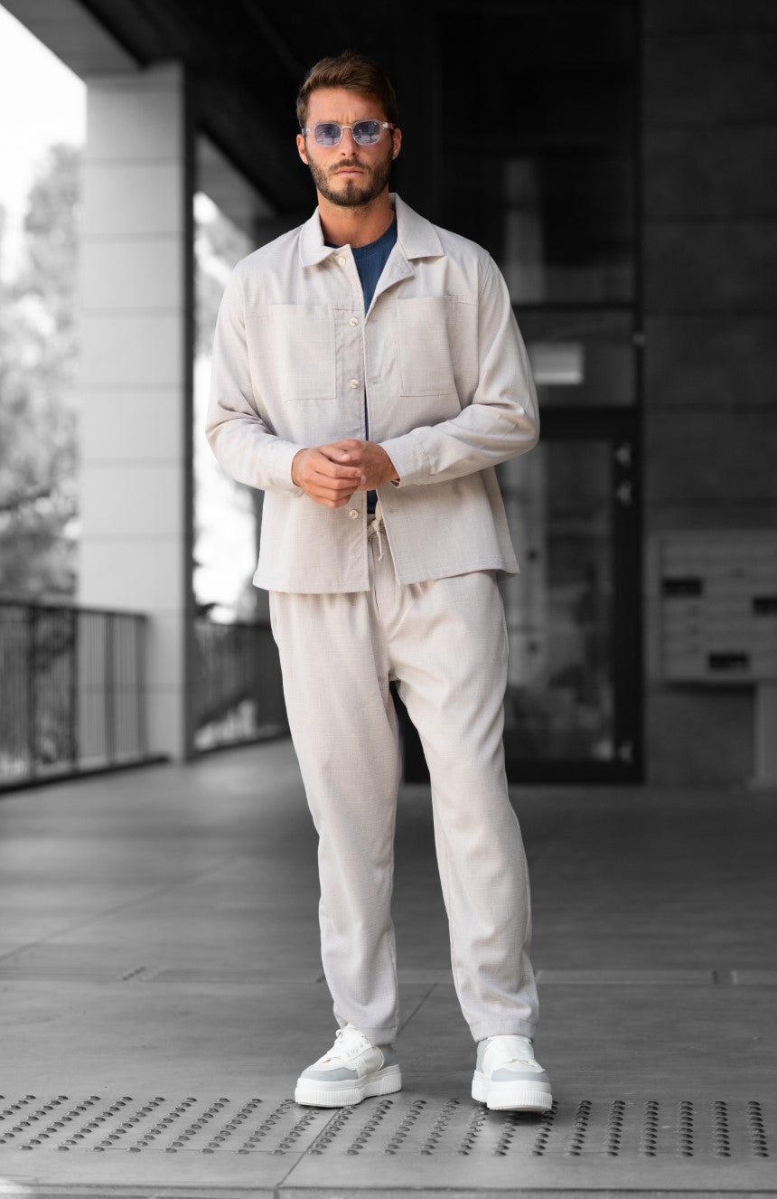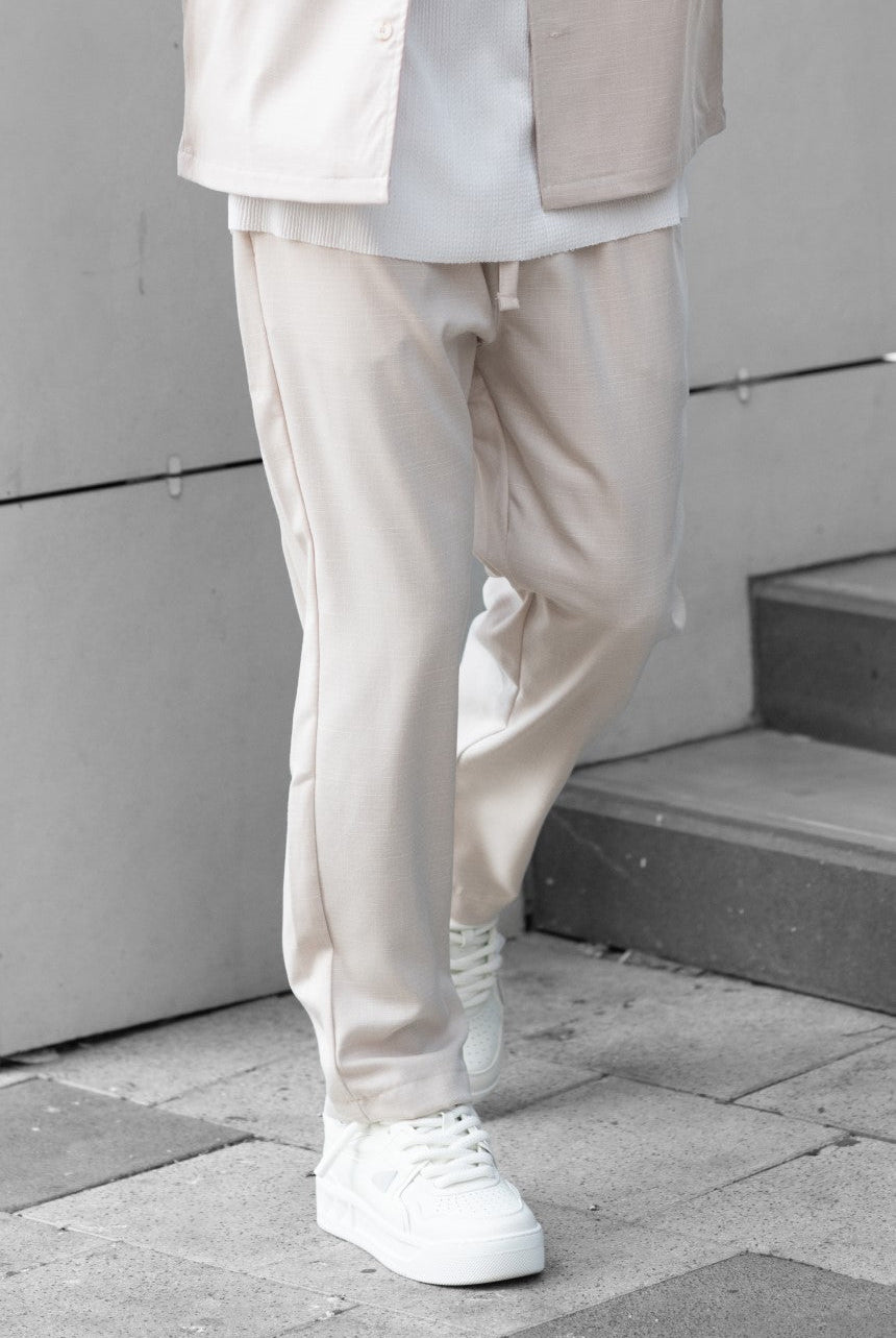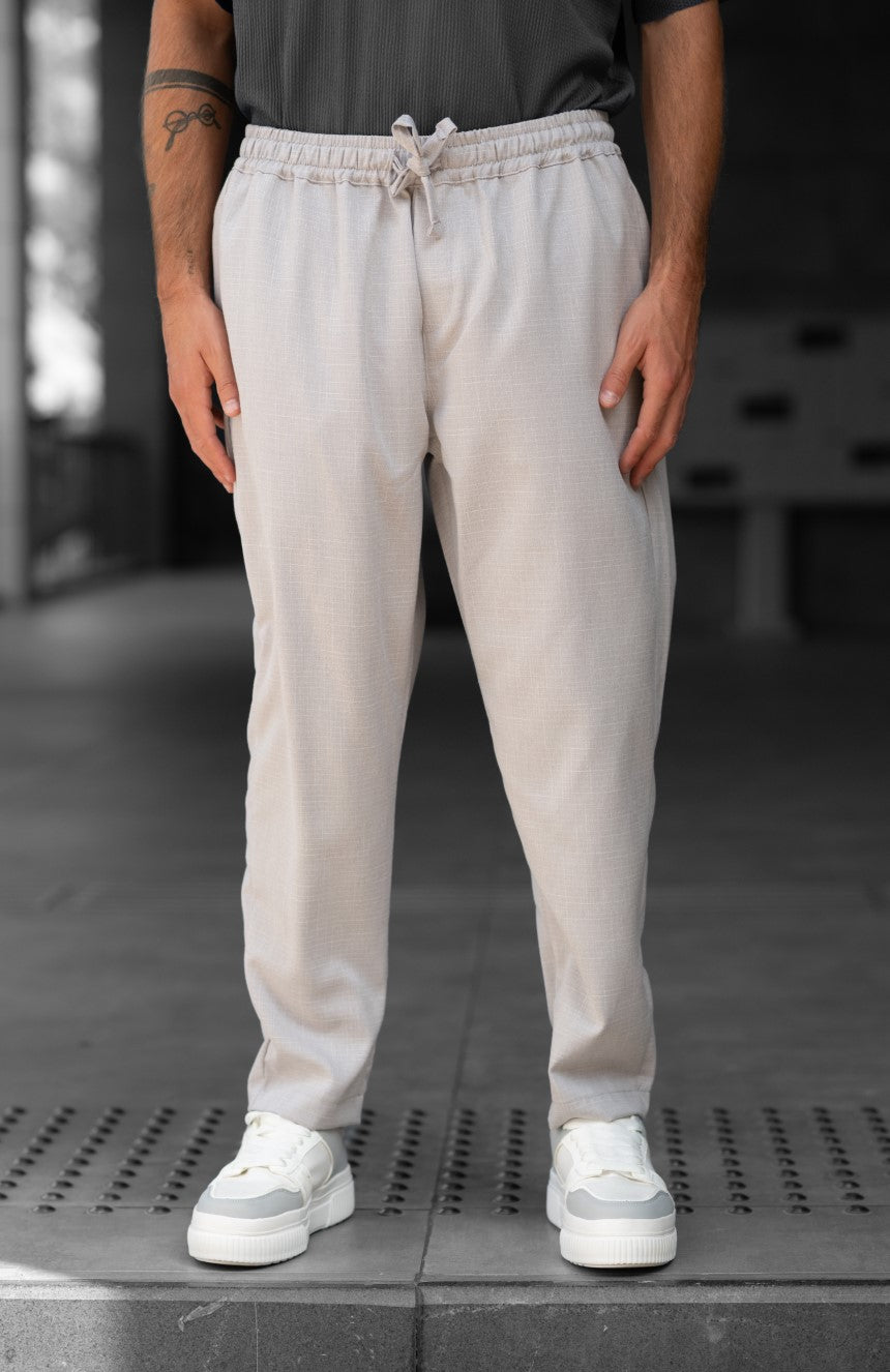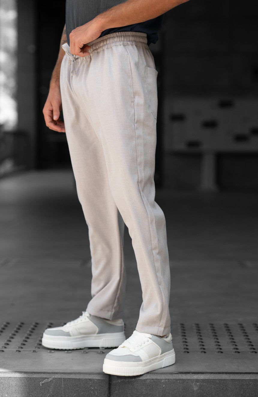 מכנסיים ארוכים בגזרת סלים, עשויים מבד במראה פשתן איכותי שמספק נוחות מקסימלית.