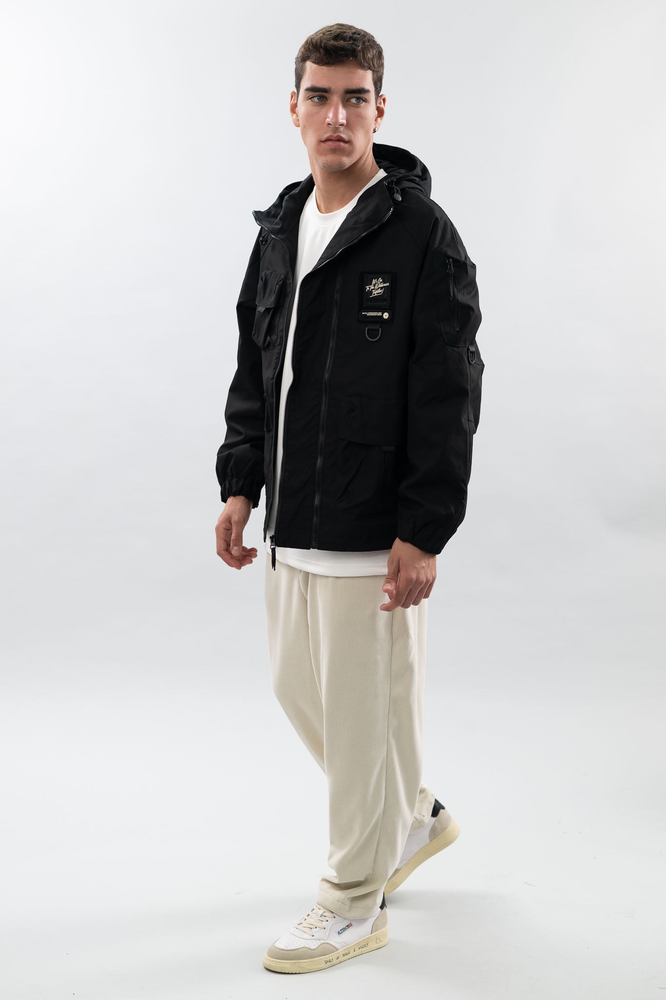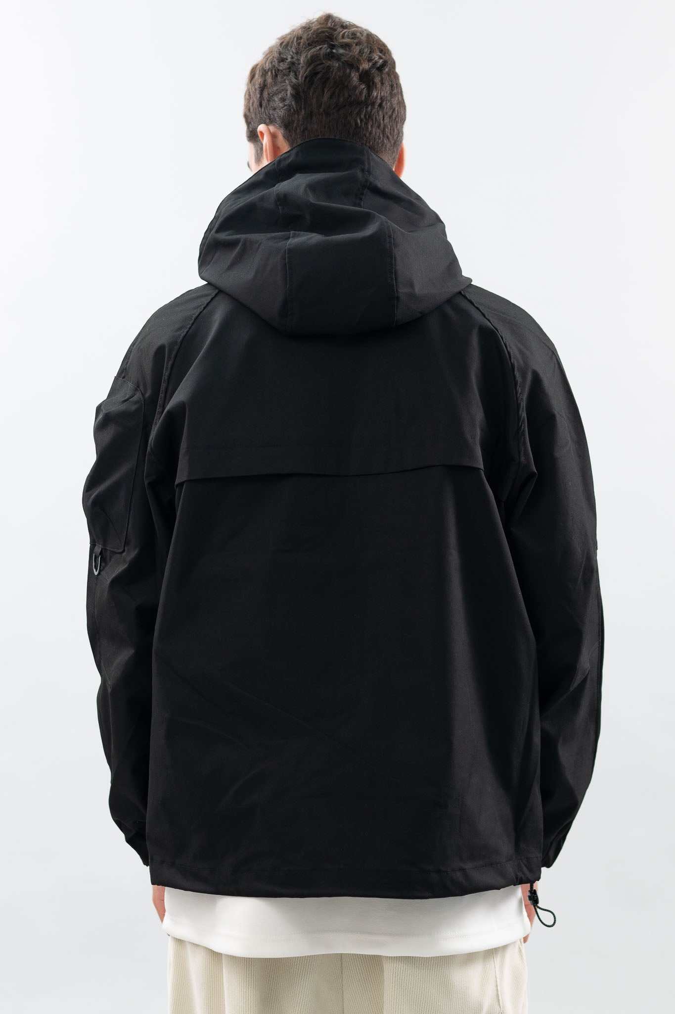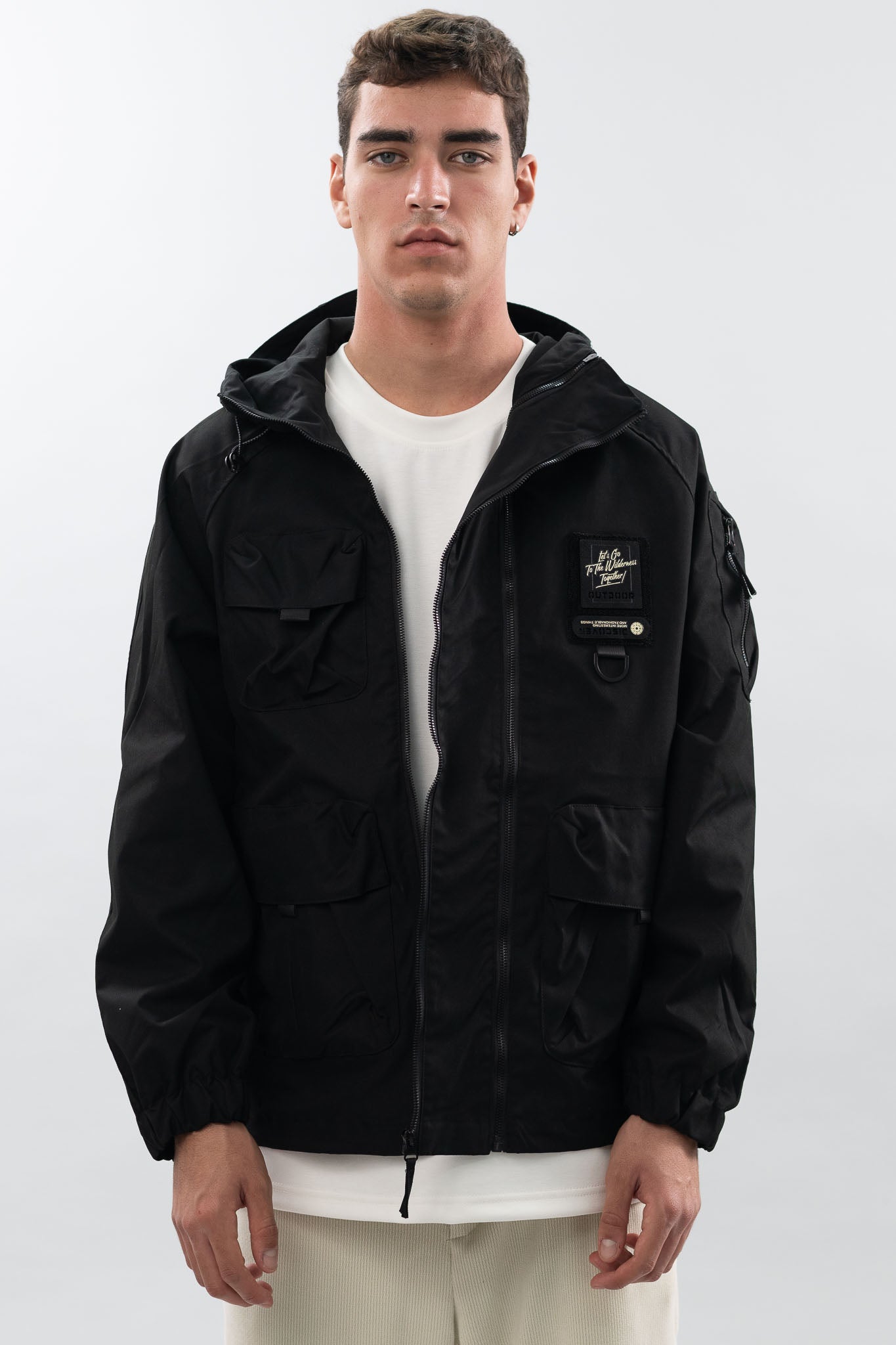 ג'קט שעשוי מבד עמיד, עם כיסים פונקציונליים, גזרה רחבה ונוחה, וכובע להגנה מלאה.