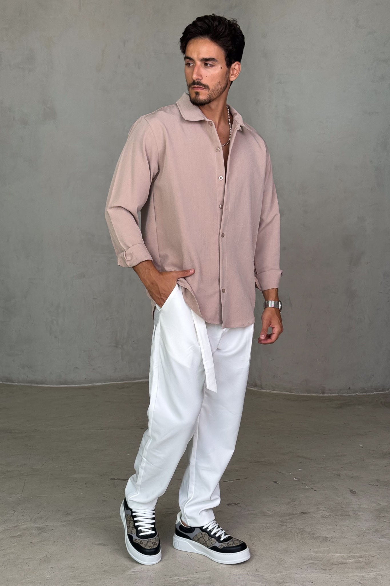 חולצת מכופתרת ארוכה בגזרת אוברסייז, מושלמת למראה קז'ואל עם נוכחות.