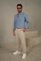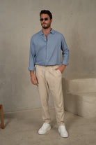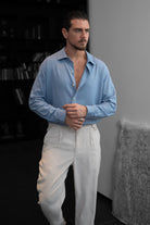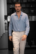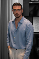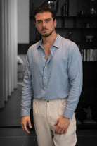 חולצת מכופתרת קז'ואל ארוכה, עשויה מבד סריג רך עם שרוולים ארוכים, צווארון קלאסי, כפתורים עדינים וחפתים אלגנטיים.