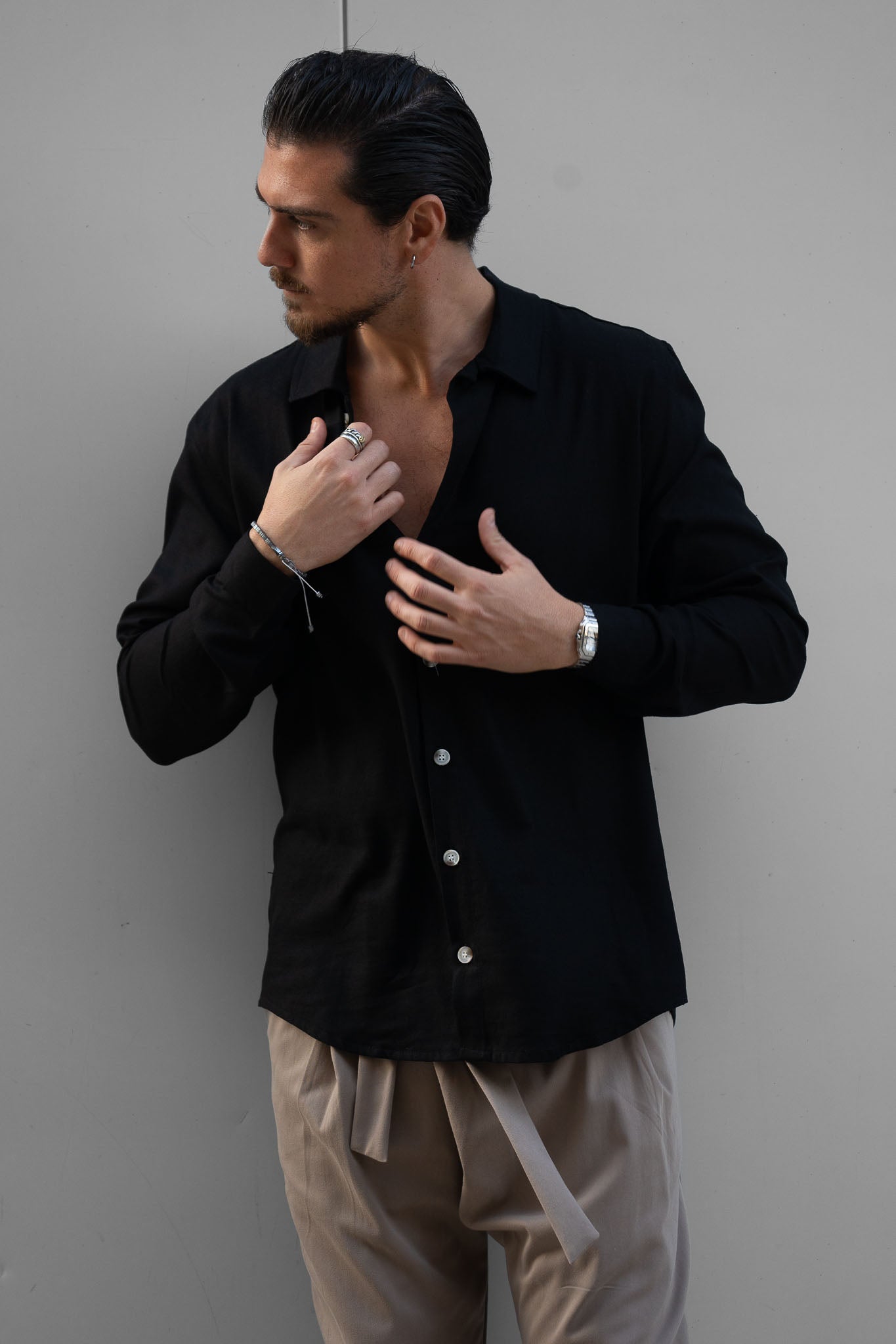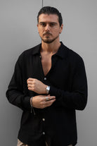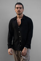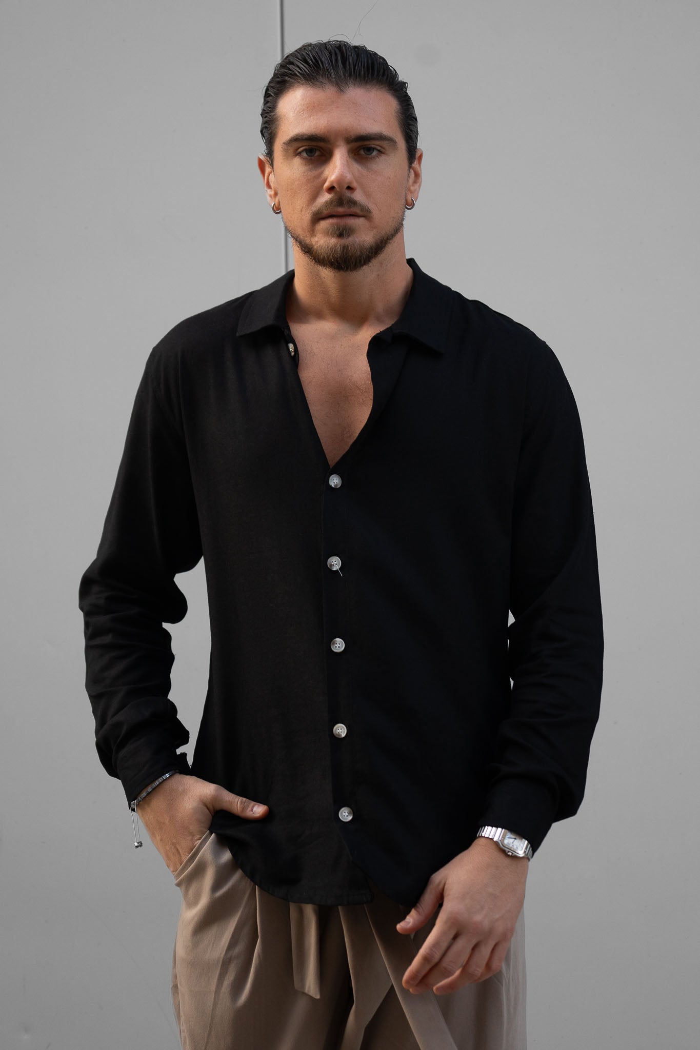 חולצת מכופתרת קז'ואל ארוכה, עשויה מבד סריג רך עם שרוולים ארוכים, צווארון קלאסי, כפתורים עדינים וחפתים אלגנטיים.