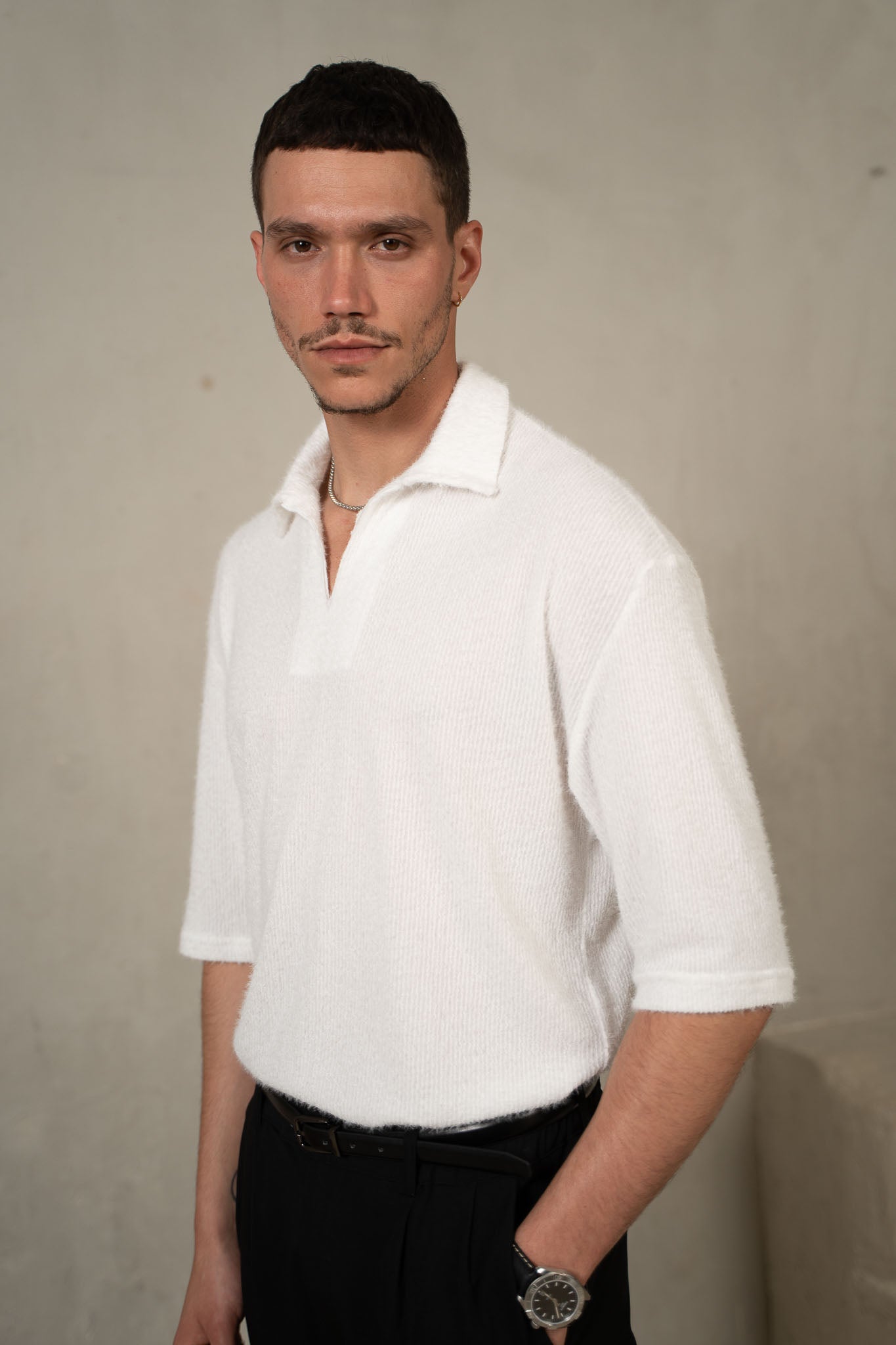 חולצת פולו בגזרת אוברסייז, עשויה מבד סריג רך ונעים,שיושבת בצורה מושלמת על הגוף ויוצרת מראה נינוח ומחמיא.
