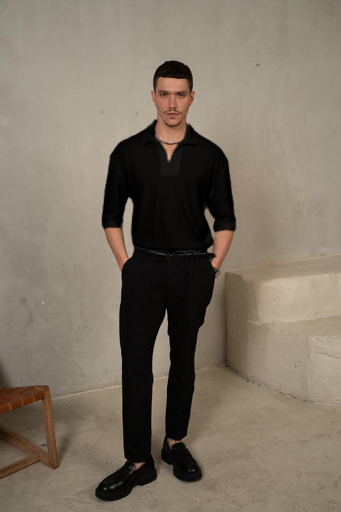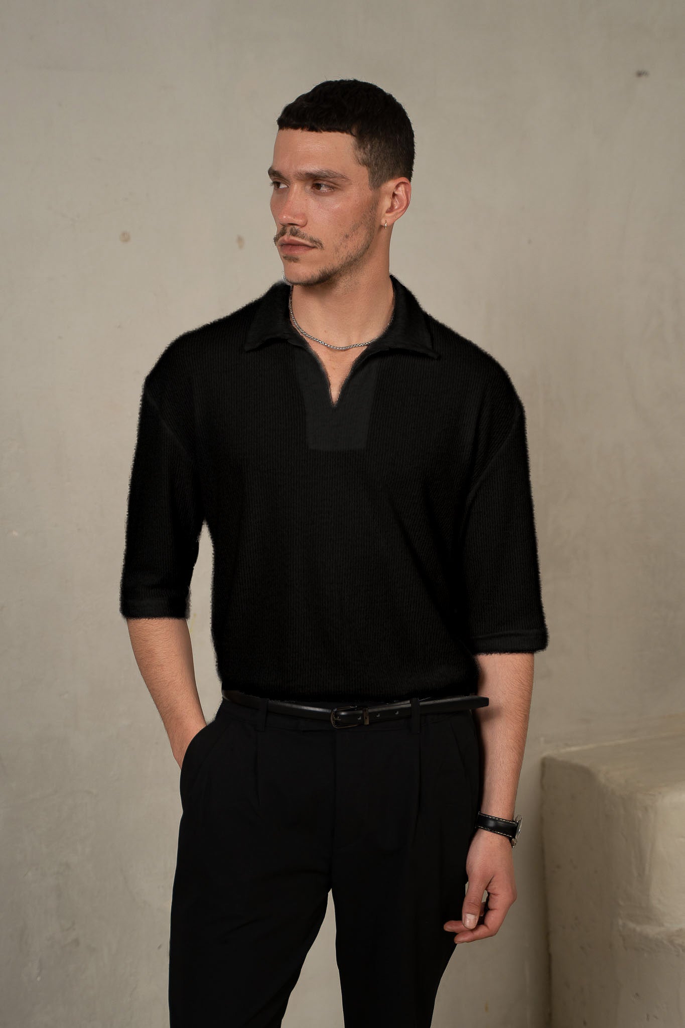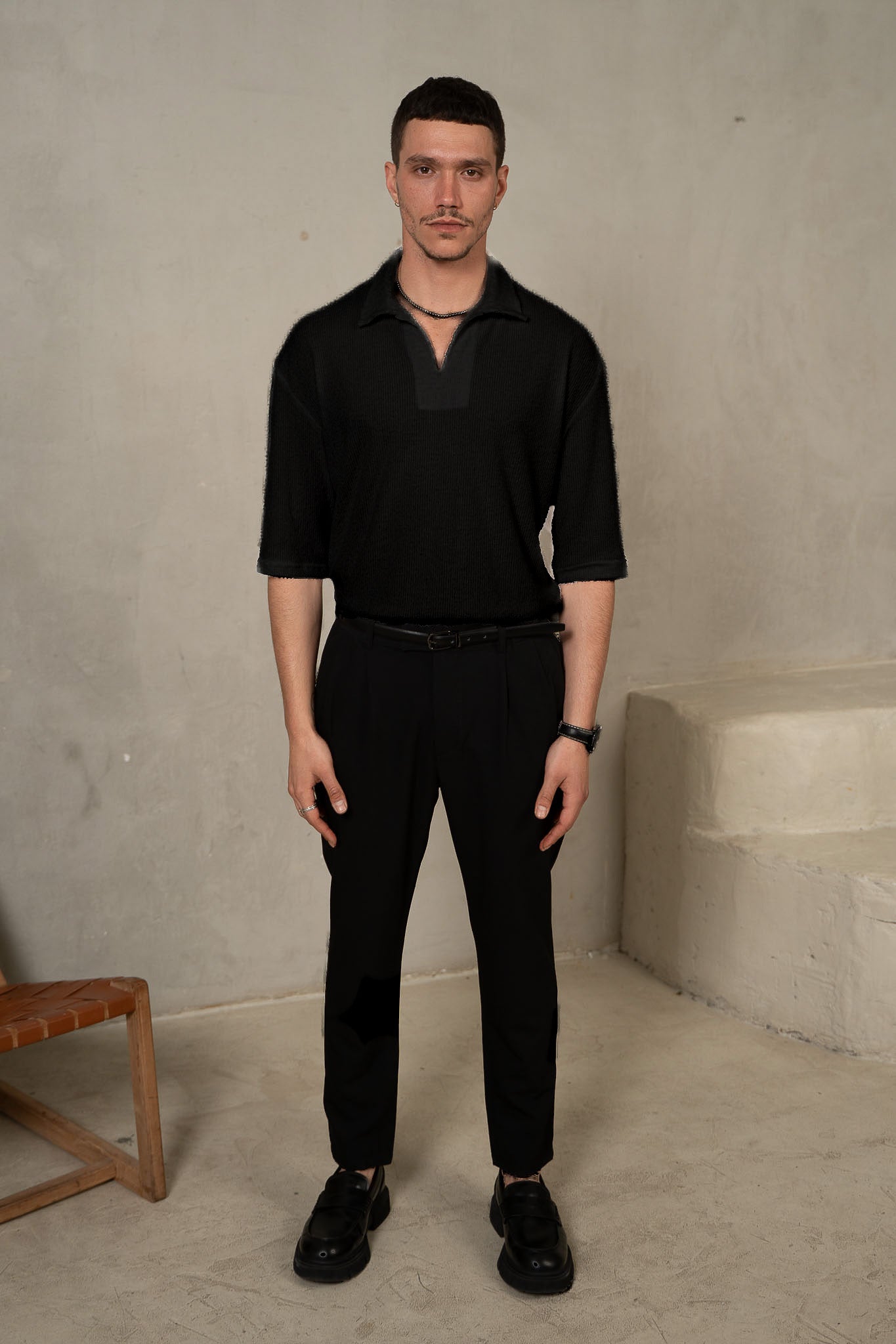 חולצת פולו בגזרת אוברסייז, עשויה מבד סריג רך ונעים,שיושבת בצורה מושלמת על הגוף ויוצרת מראה נינוח ומחמיא.
