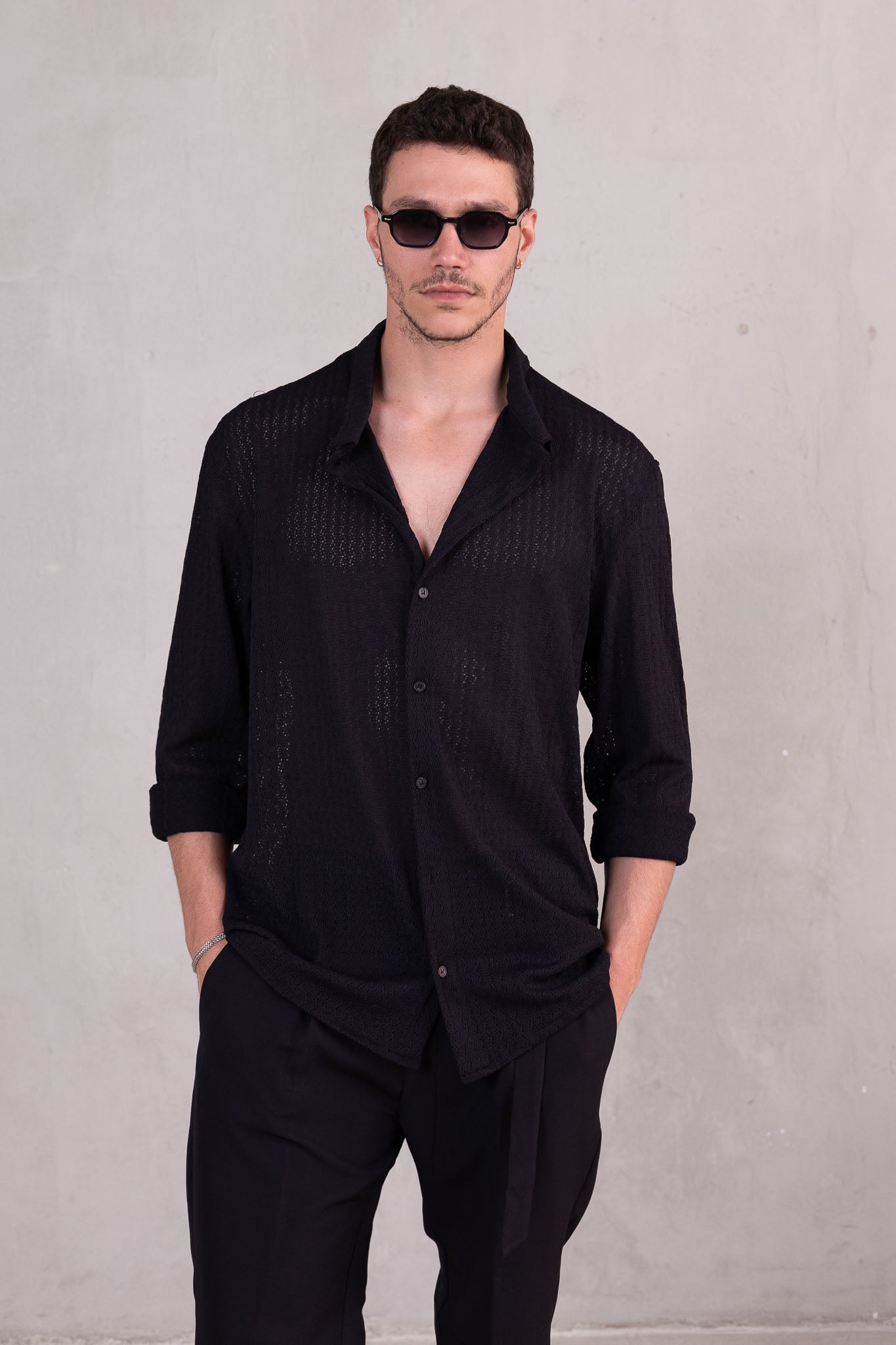 חולצת מכופתרת קז'ואל ארוכה, עשויה מבד אוורירי עם שרוולים ארוכים