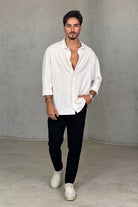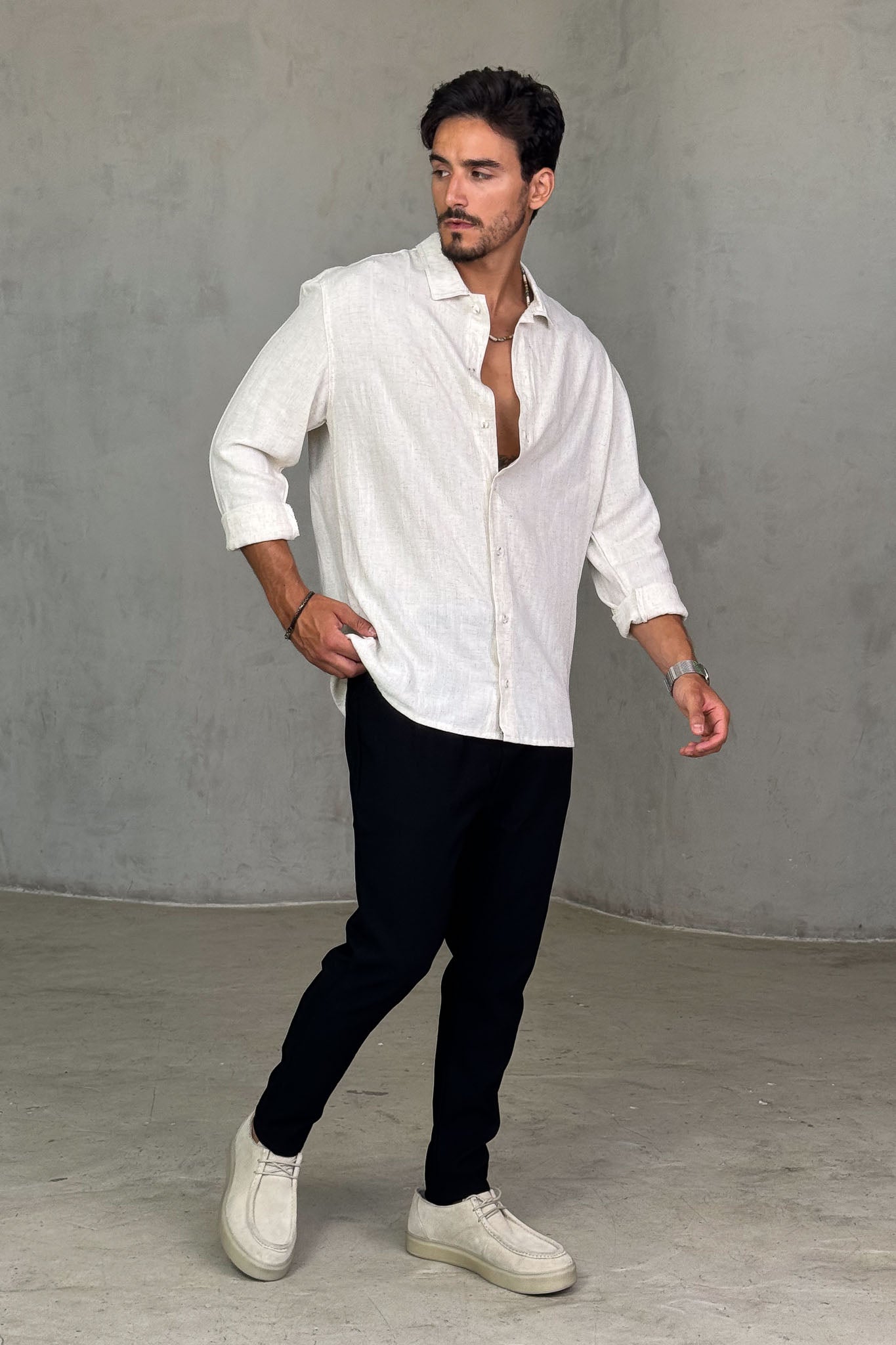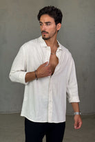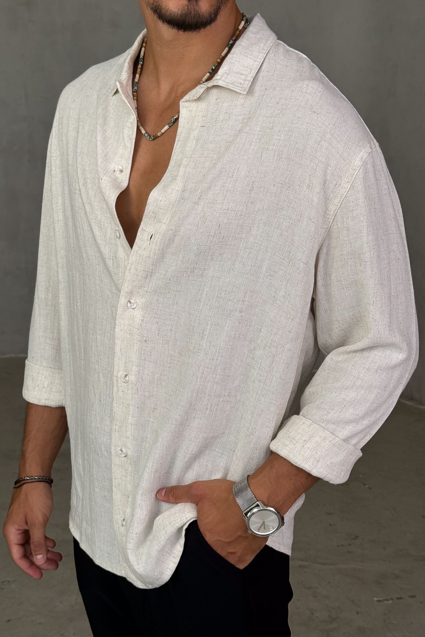 חולצת מכופתרת ארוכה בגזרת אוברסייז, מושלמת למראה קז'ואל עם נוכחות.