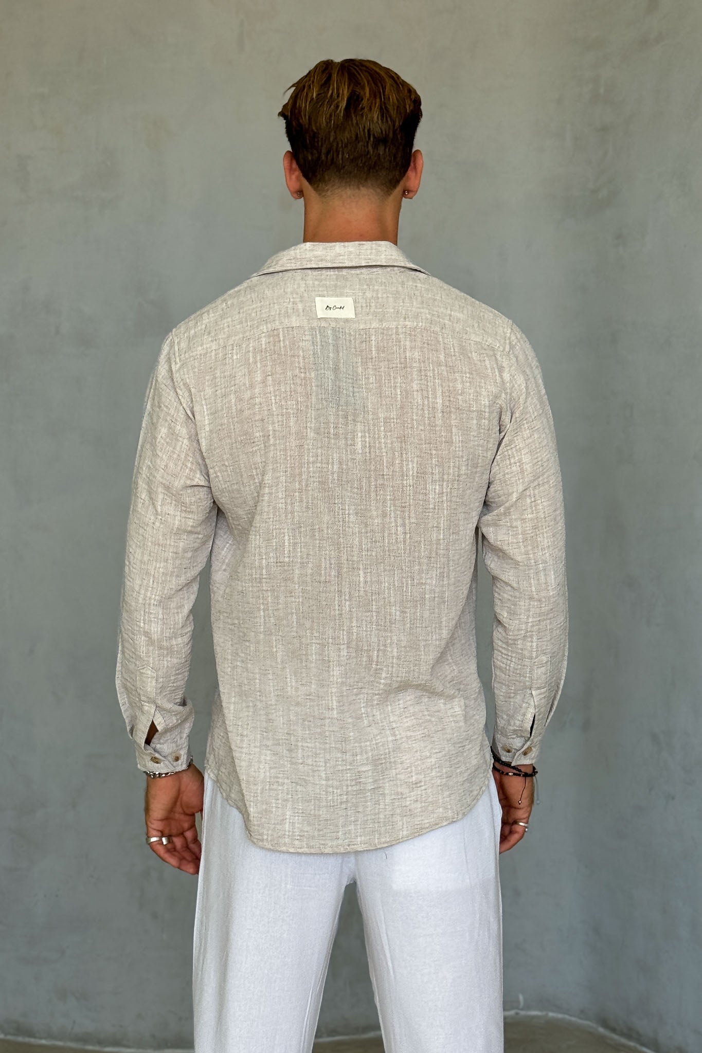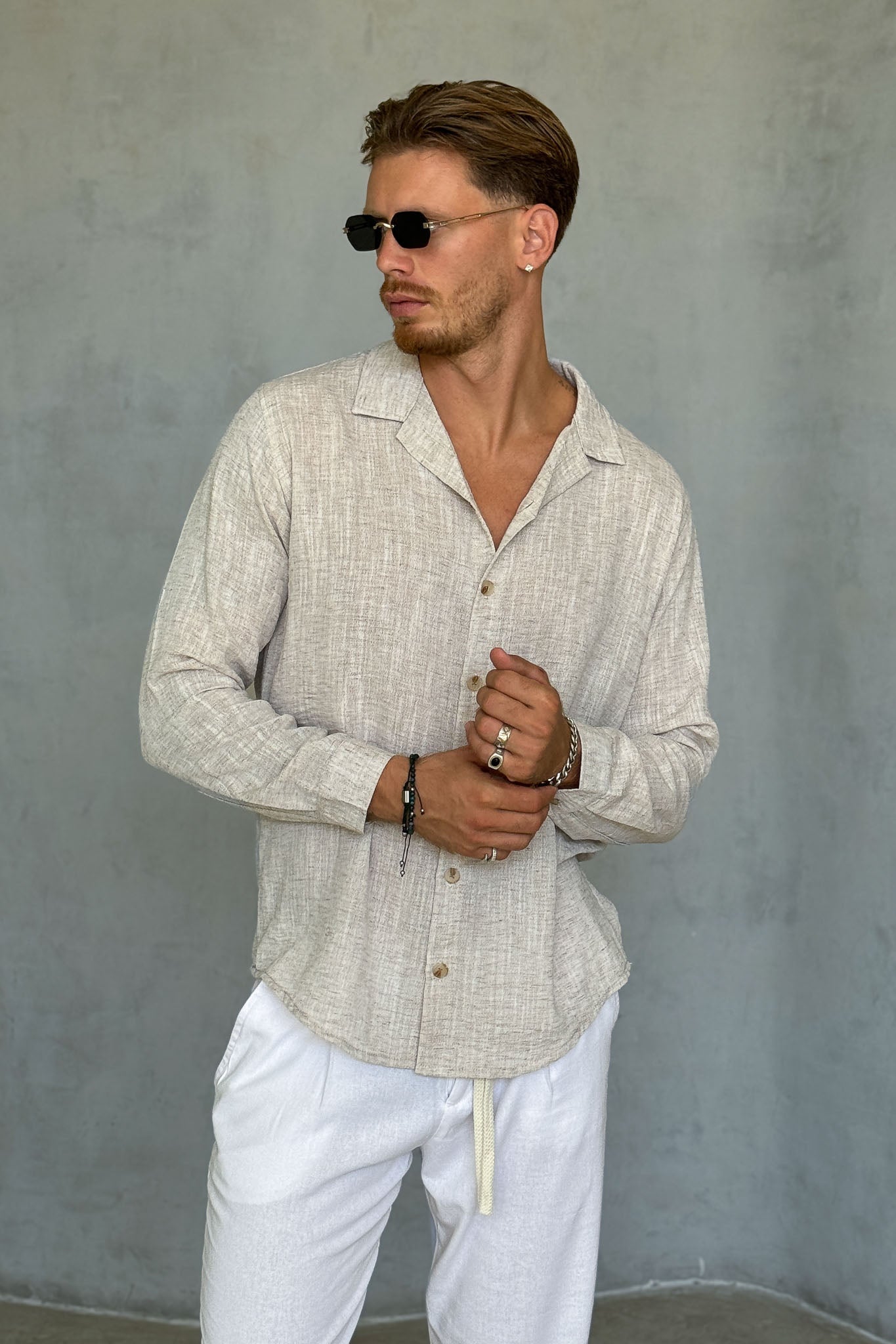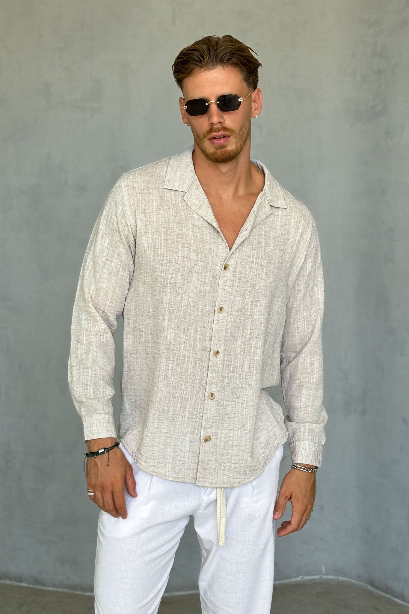 חולצת מכופתרת קז'ואל ארוכה, עשויה מבד נעים עם שרוולים ארוכים