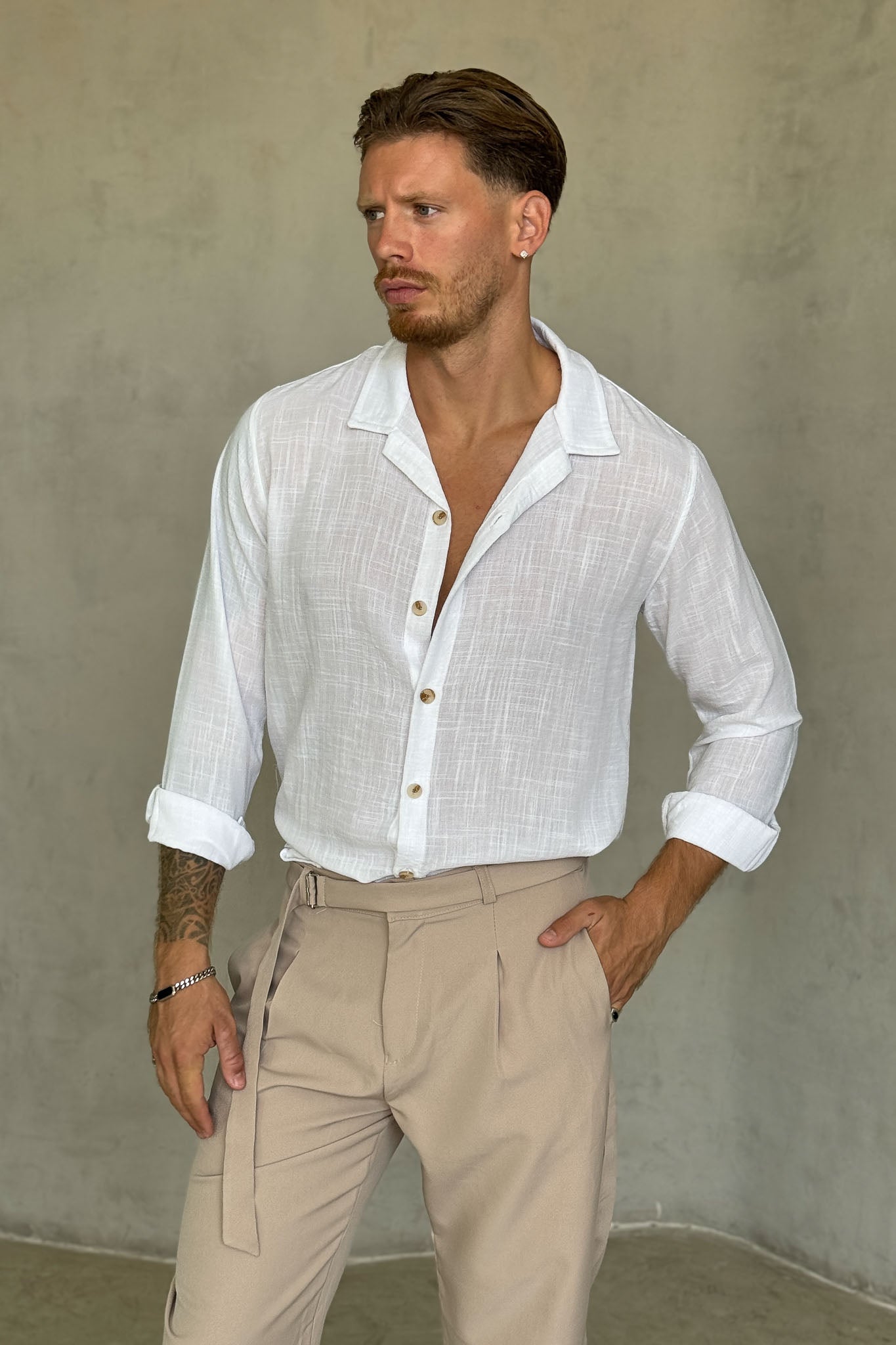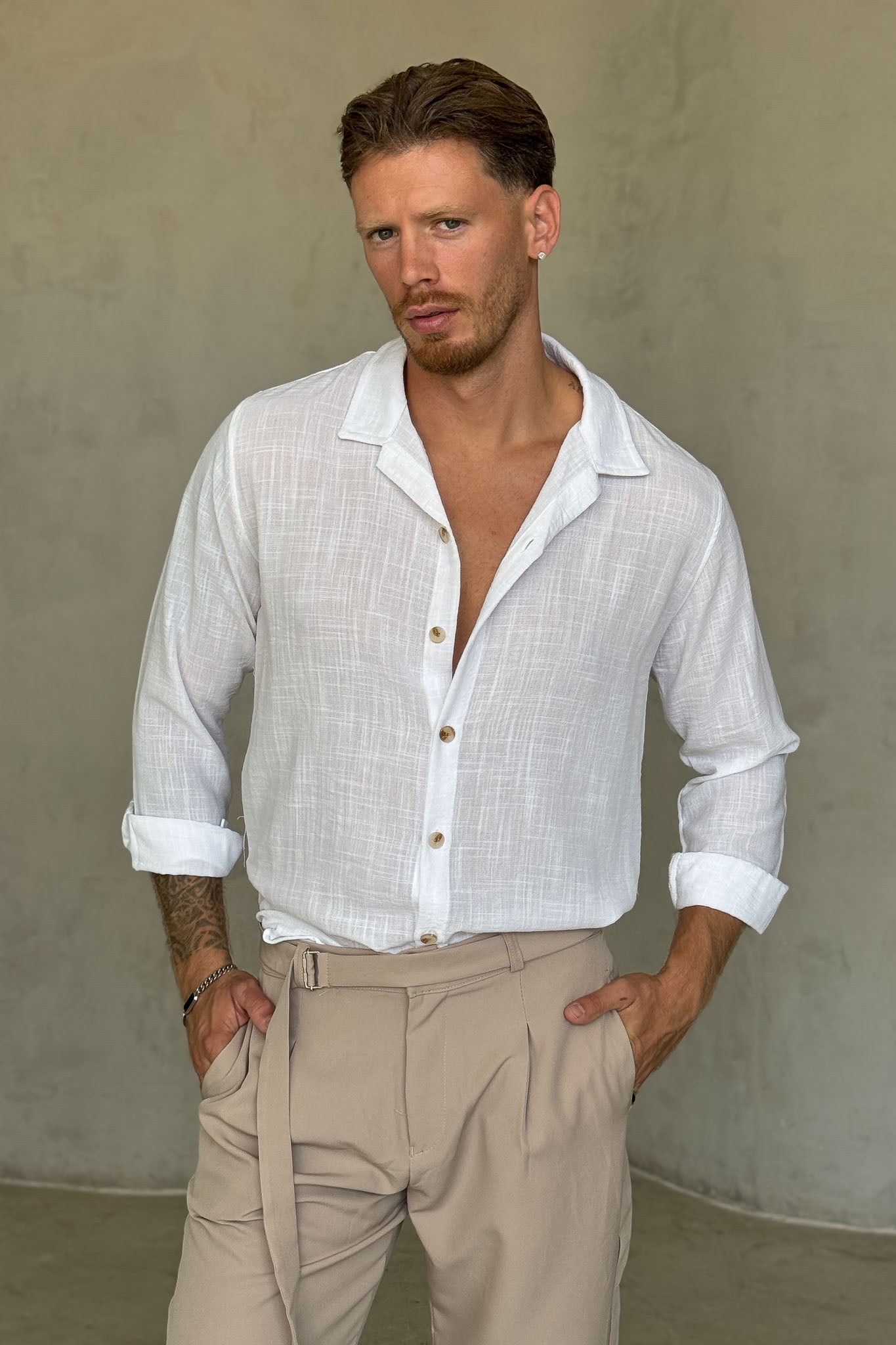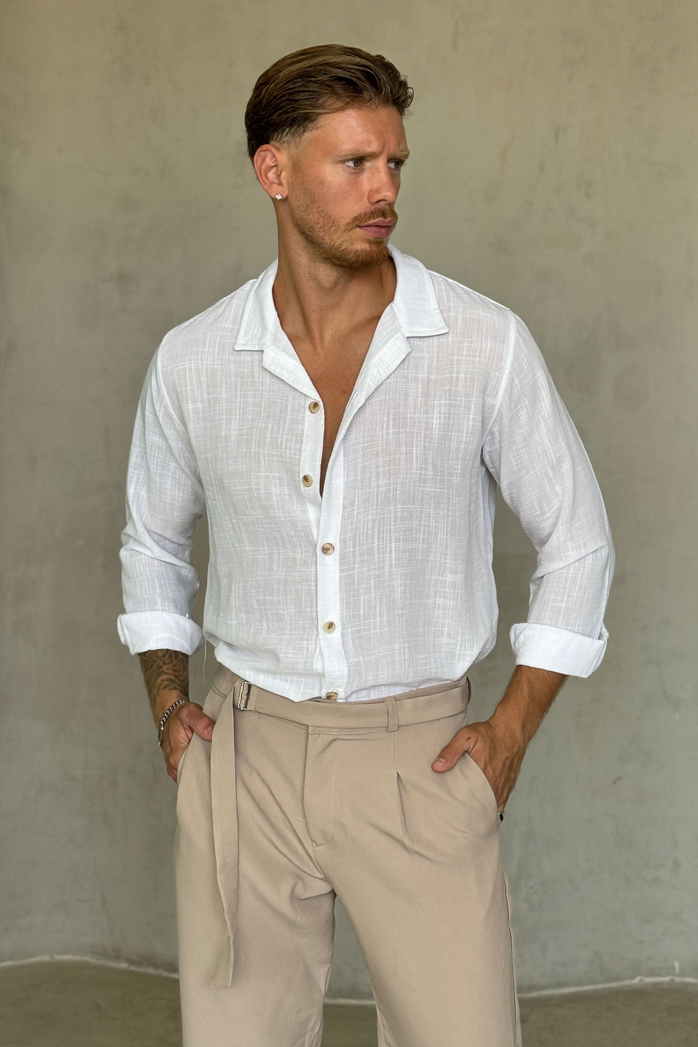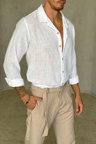 חולצת מכופתרת קז'ואל ארוכה, עשויה מבד נעים עם שרוולים ארוכים