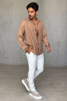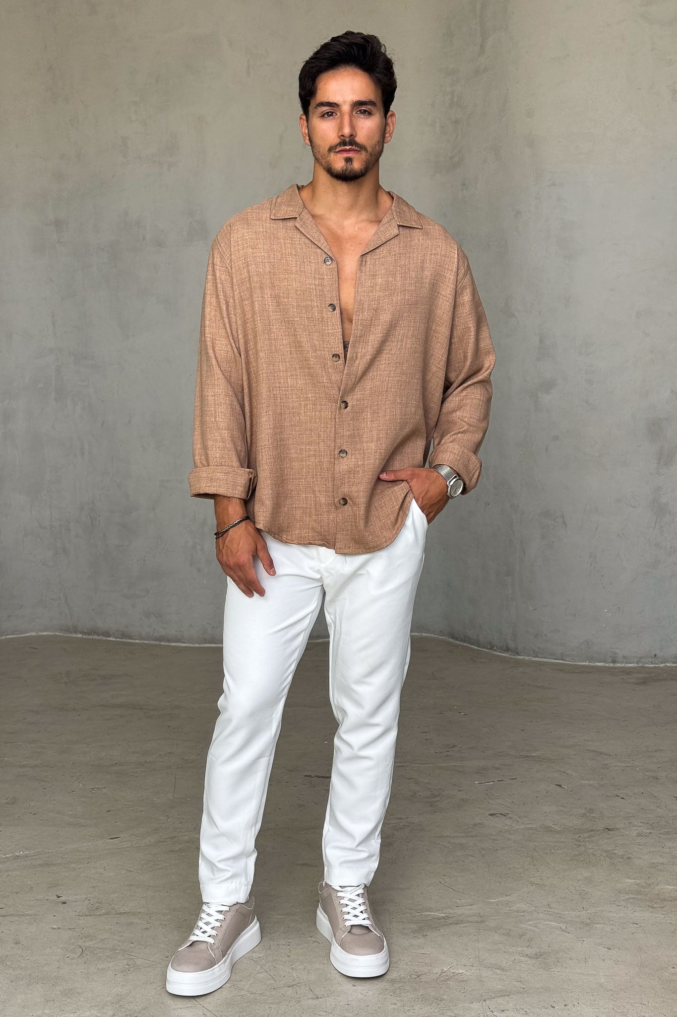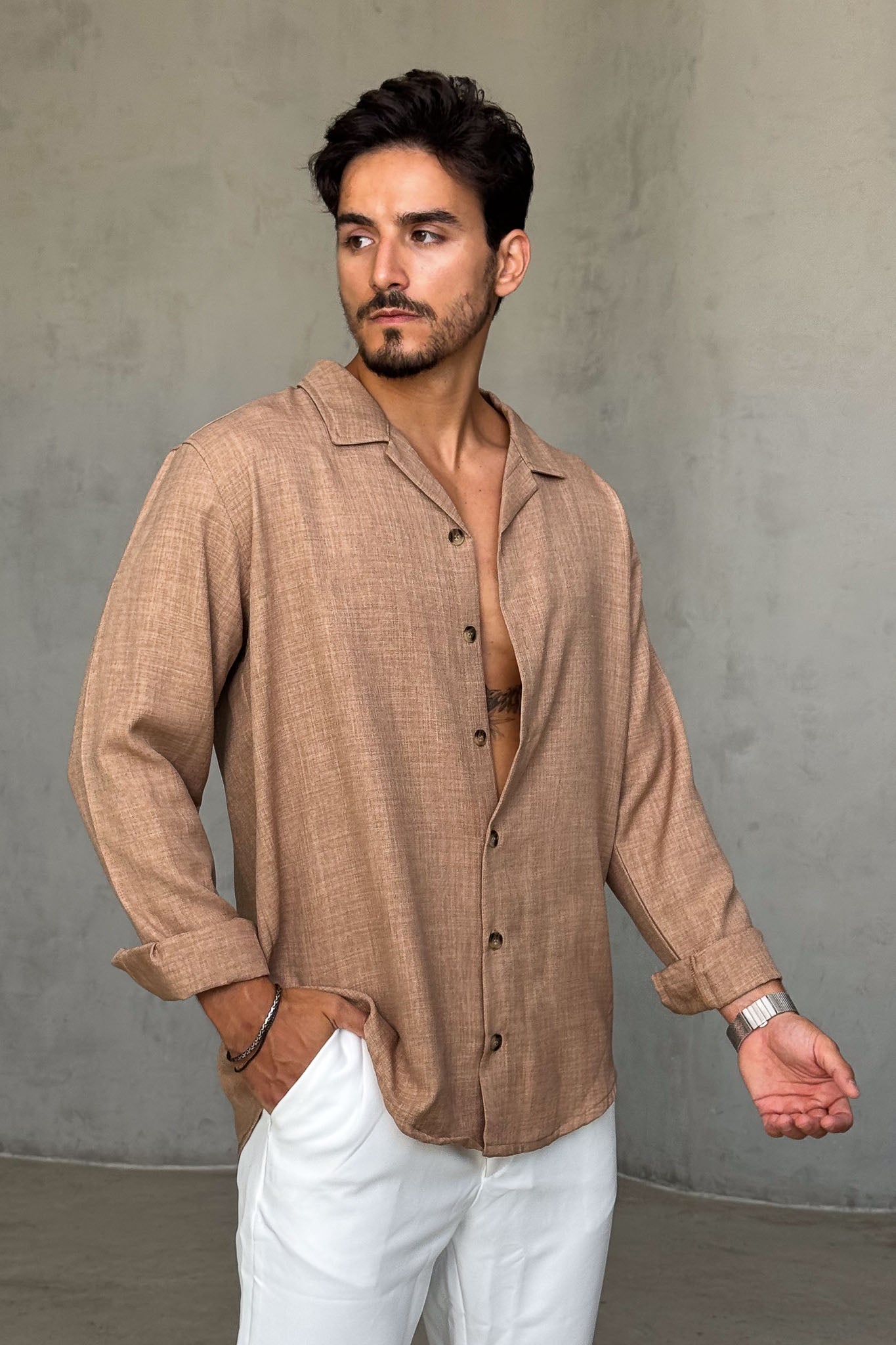חולצת מכופתרת ארוכה בגזרת אוברסייז, מושלמת למראה קז'ואל עם נוכחות.