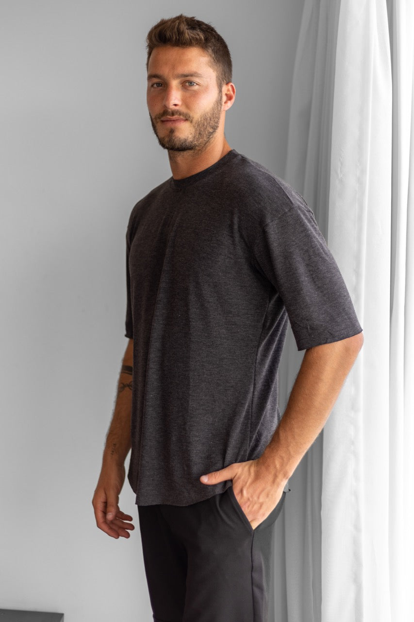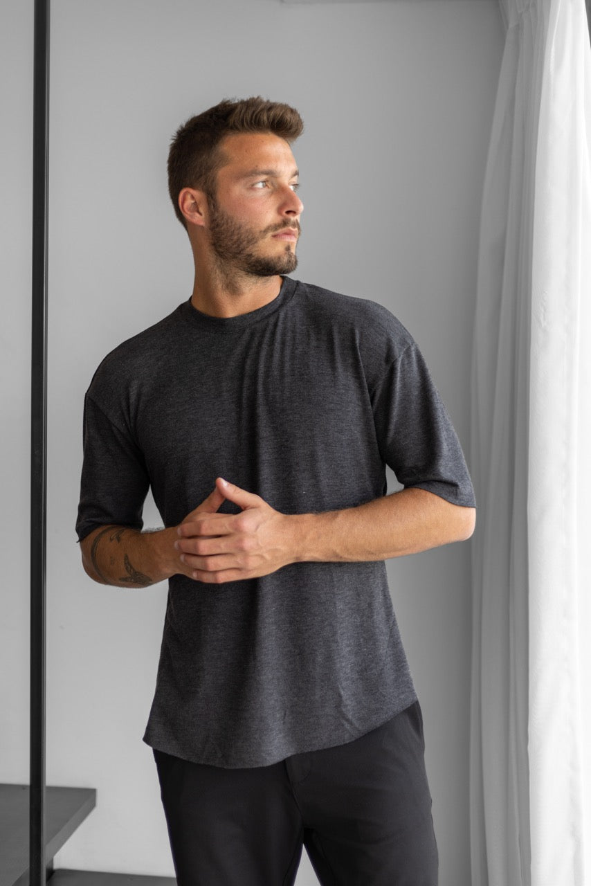 חולצת בייסיק בגזרת מיד אוברסייז - Maven (שחור)