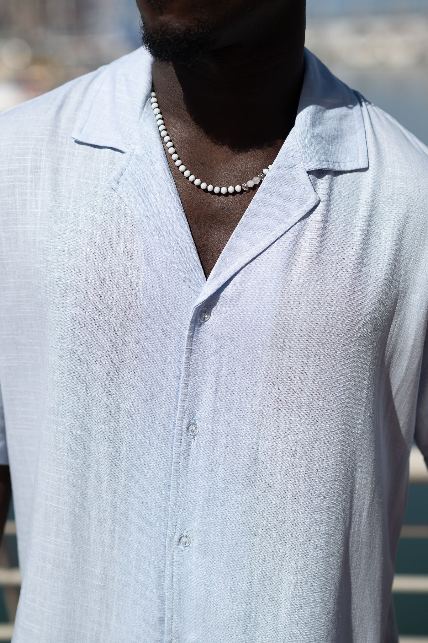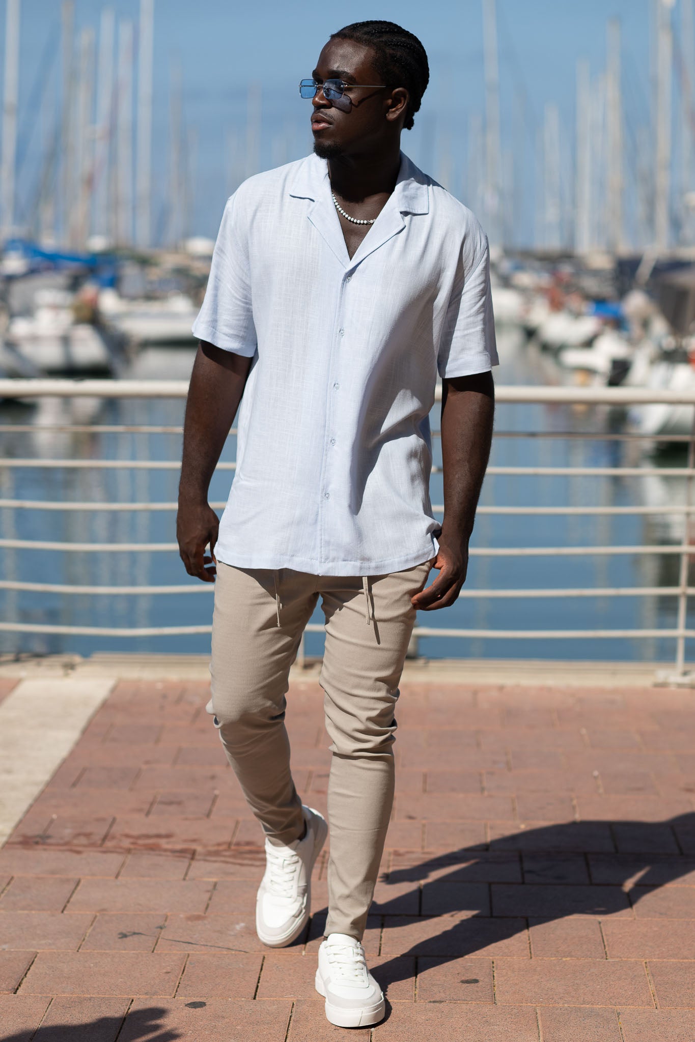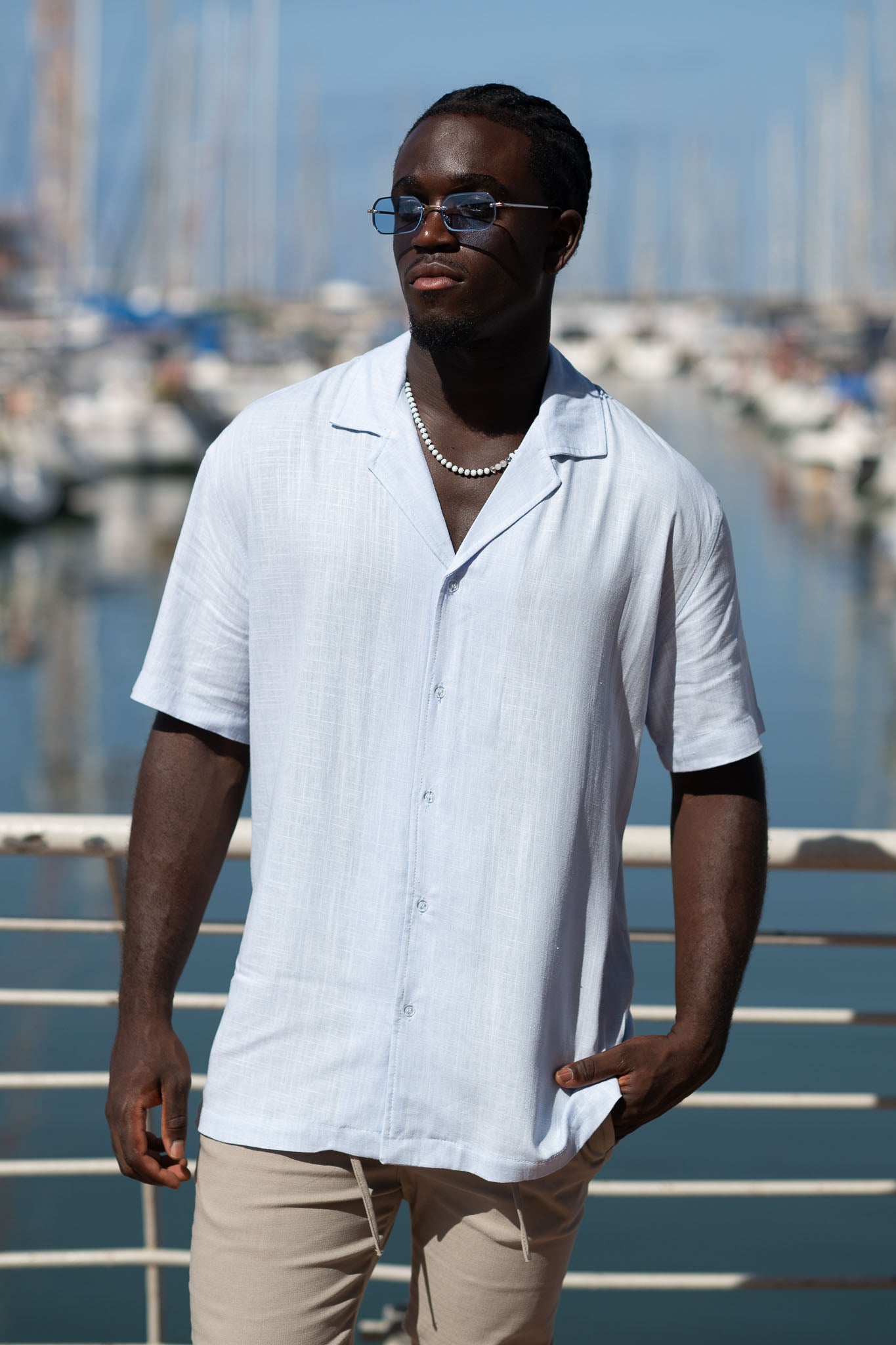 מידות הדוגמן - גובה 1.83 שוקל 80 מידה L מכופתרת בגזרת super oversize מבד בתרכובת פשתן איכותי ,