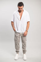 מידות הדוגמן - גובה 1.84 שוקל 80 מידה L מכופתרת בגזרת oversize , עשוייה מבד סלאב פשתן ,
