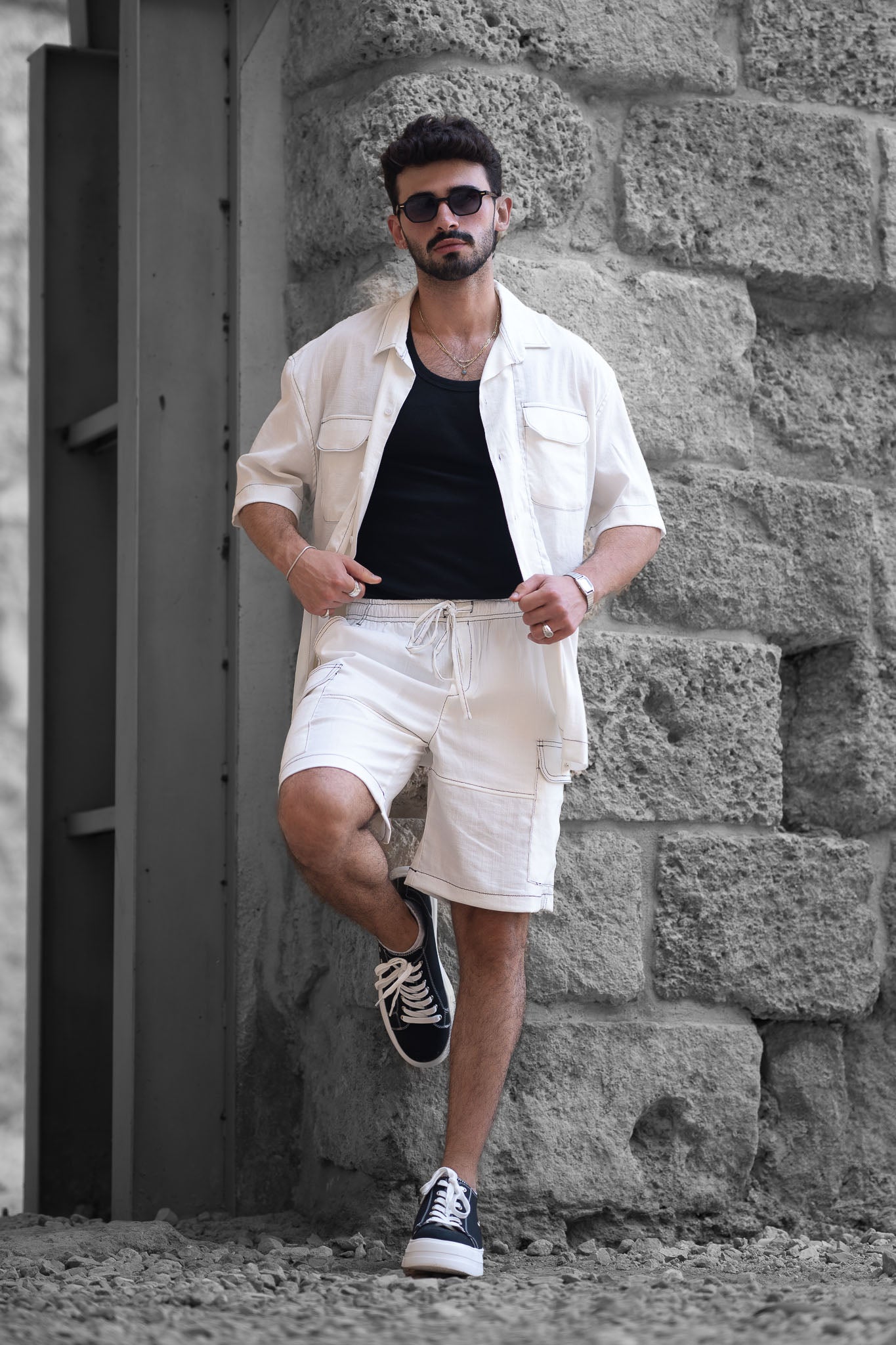 החולצה מעוצבת כחלק מסט עם מכנסיים קצרים תואמים ,