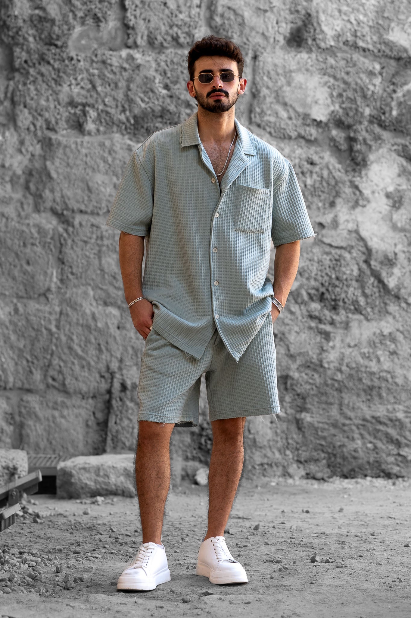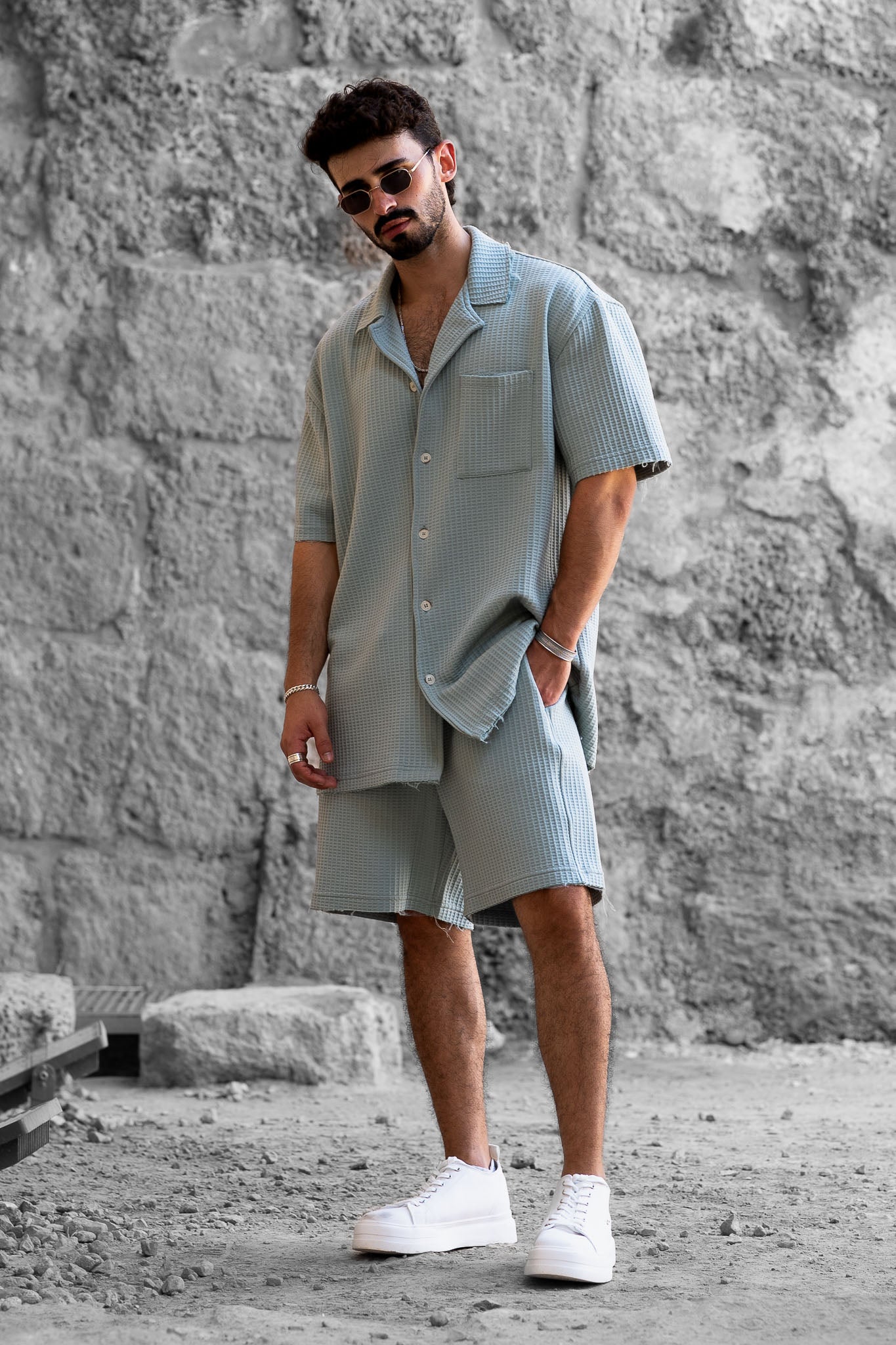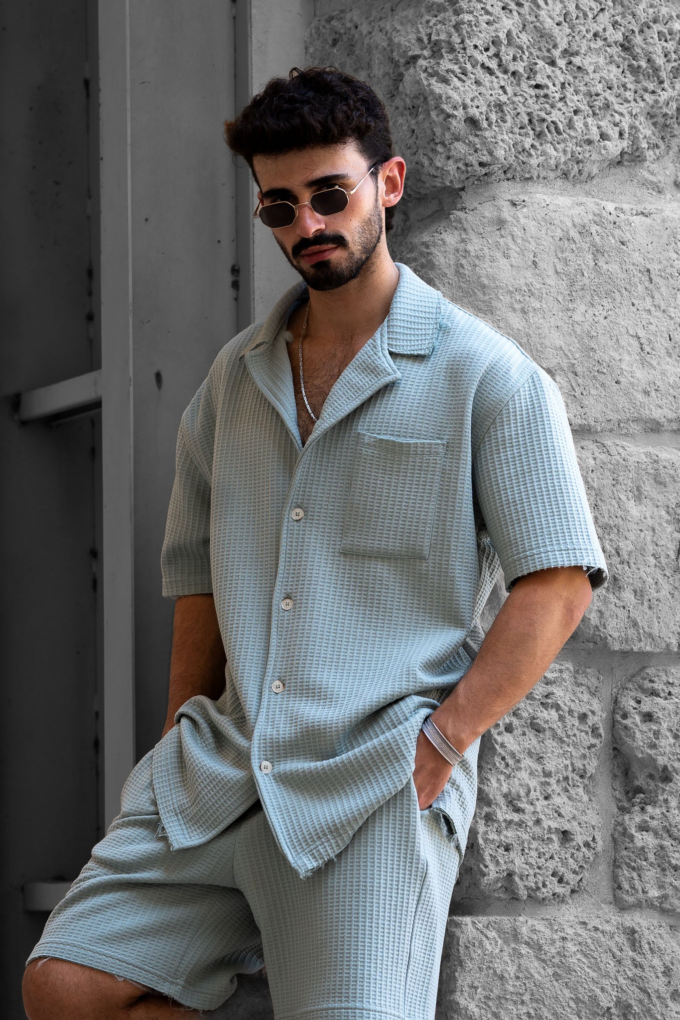 מידות הדוגמן - גובה 1.84 שוקל 80 מידה L מכופתרת בגזרת אוברסייז קצרה, מבד וופל איכותי ונעים המעניק תחושת רכות ונוחות מירבית,