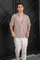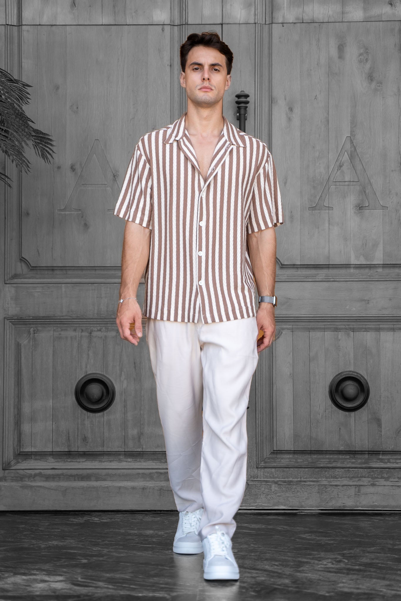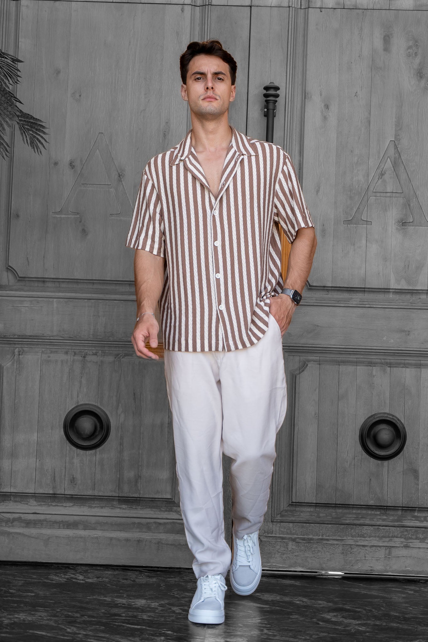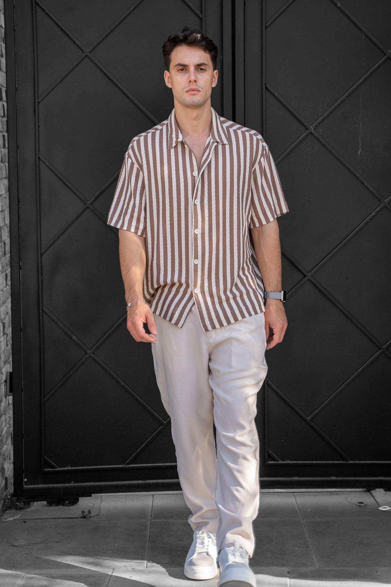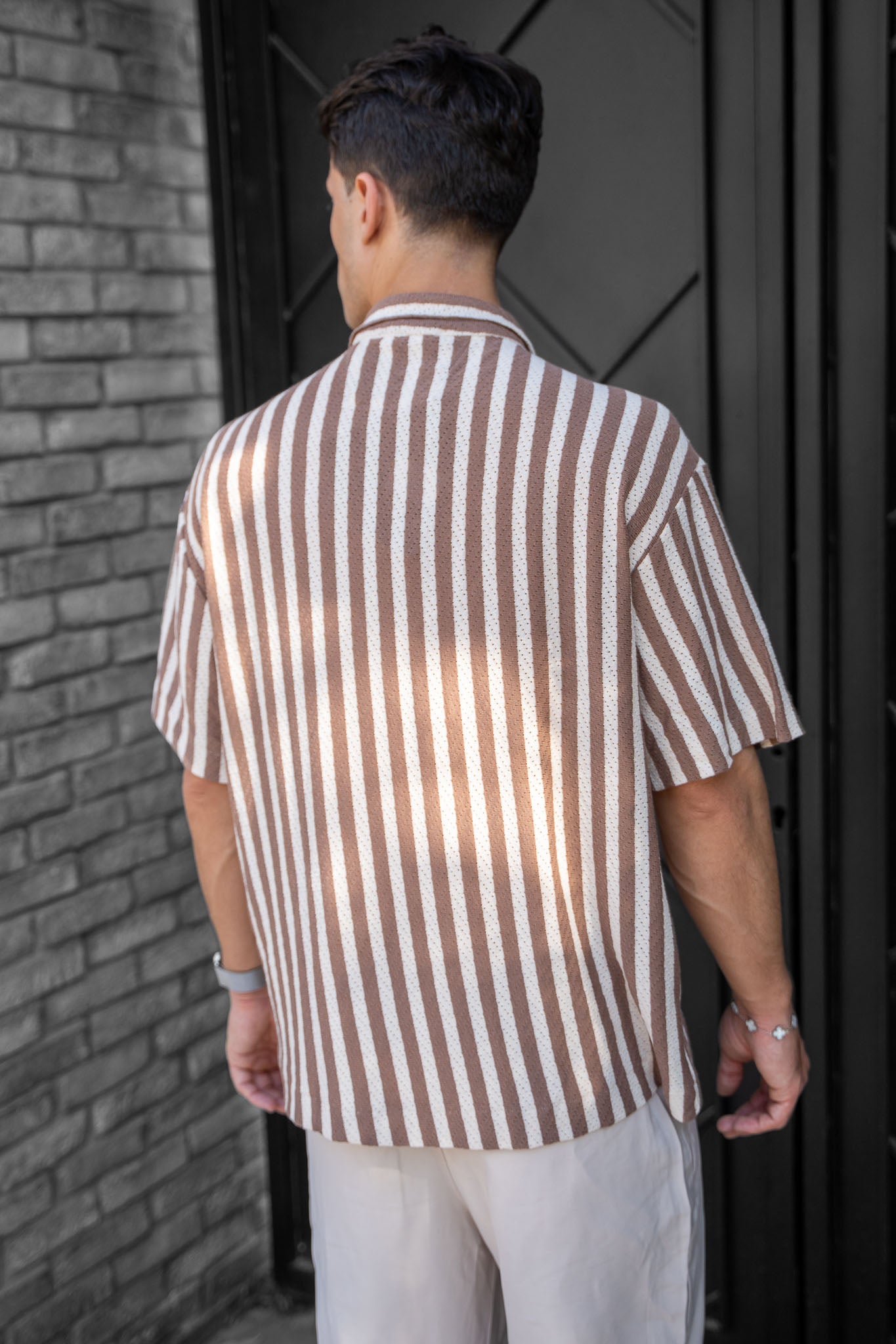מכופתרת בגזרת מיד אוברסייז קצרה, מבד איכותי ונעים בטקסטורת פסים