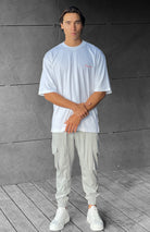 טי שרט בגזרת oversize עם הדפס גדול בגב שמוסיף אלמנט של סטייל ועיצוב ייחודי ,