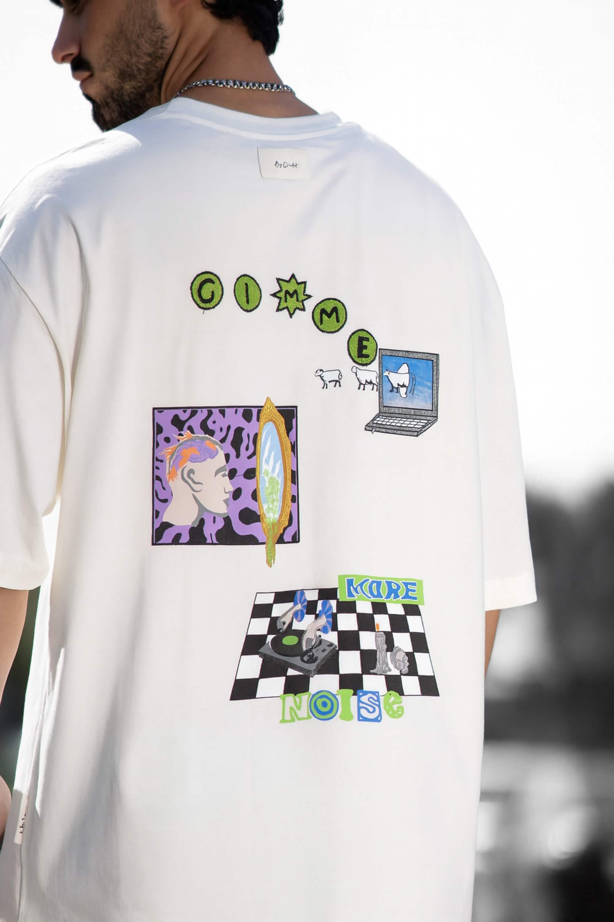 טי שרט בגזרת oversize עם הדפס גדול בגב שמוסיף אלמנט של סטייל ועיצוב ייחודי ,