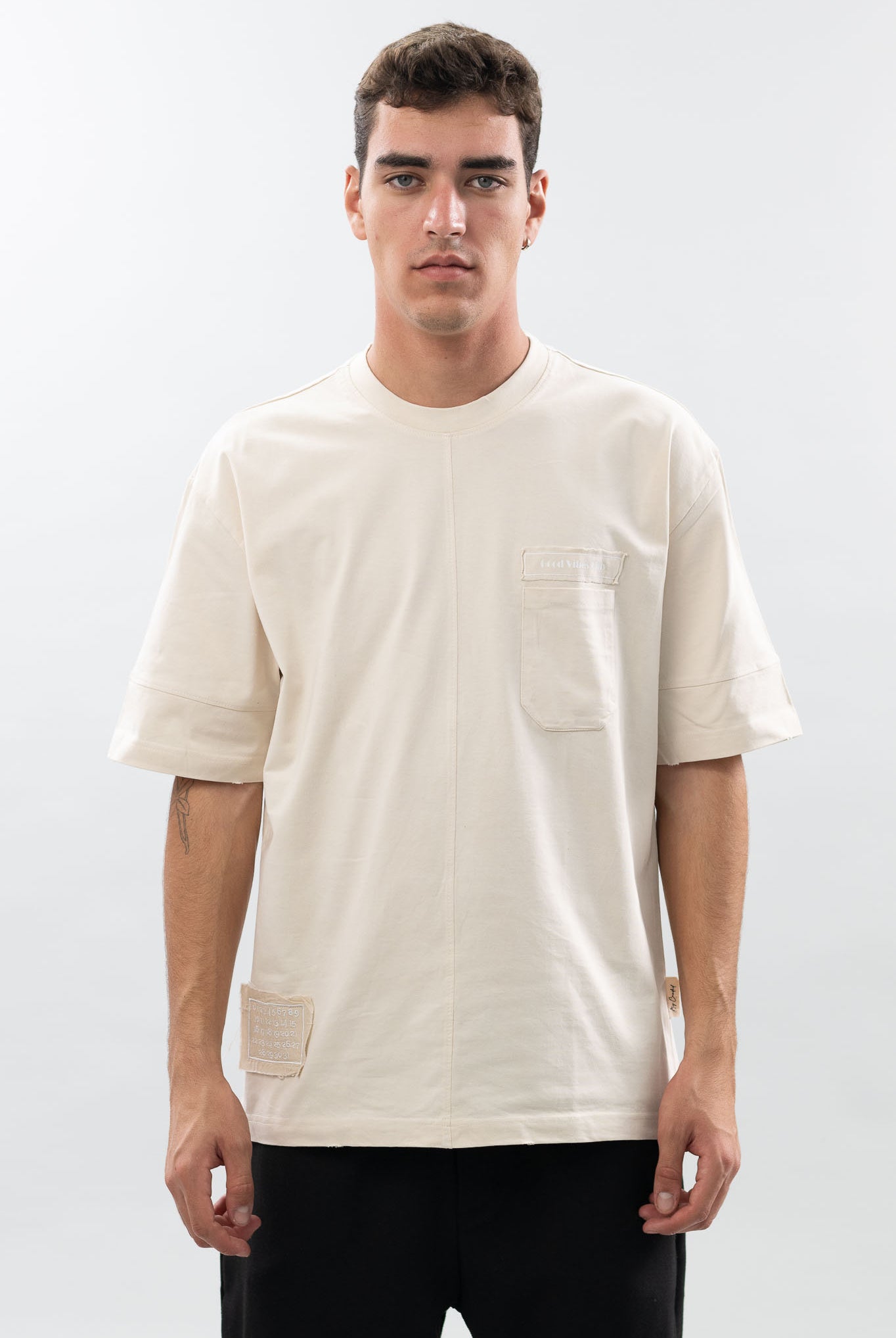 טי שרט בגזרת oversize עם טוויסט מיוחד מלפנים של הטישרט שמוסיף אלמנט של סטייל ועיצוב ייחודי ,