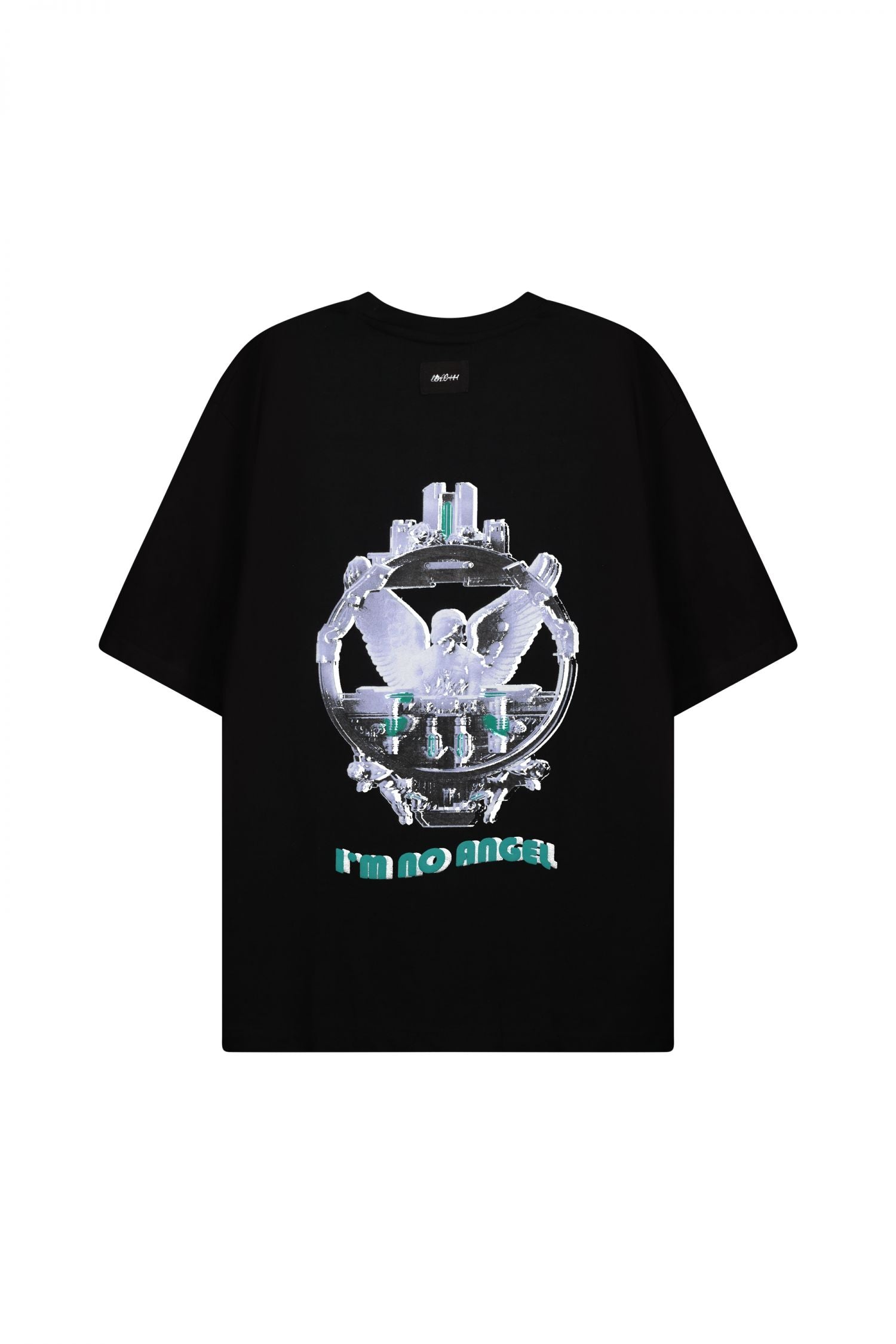 טי שרט בגזרת oversize, מעוצבת עם ציור של מלאך גדול בגב. הבד רך ונעים, מושלם ללבישה יומיומית ולסגנון קזואלי.