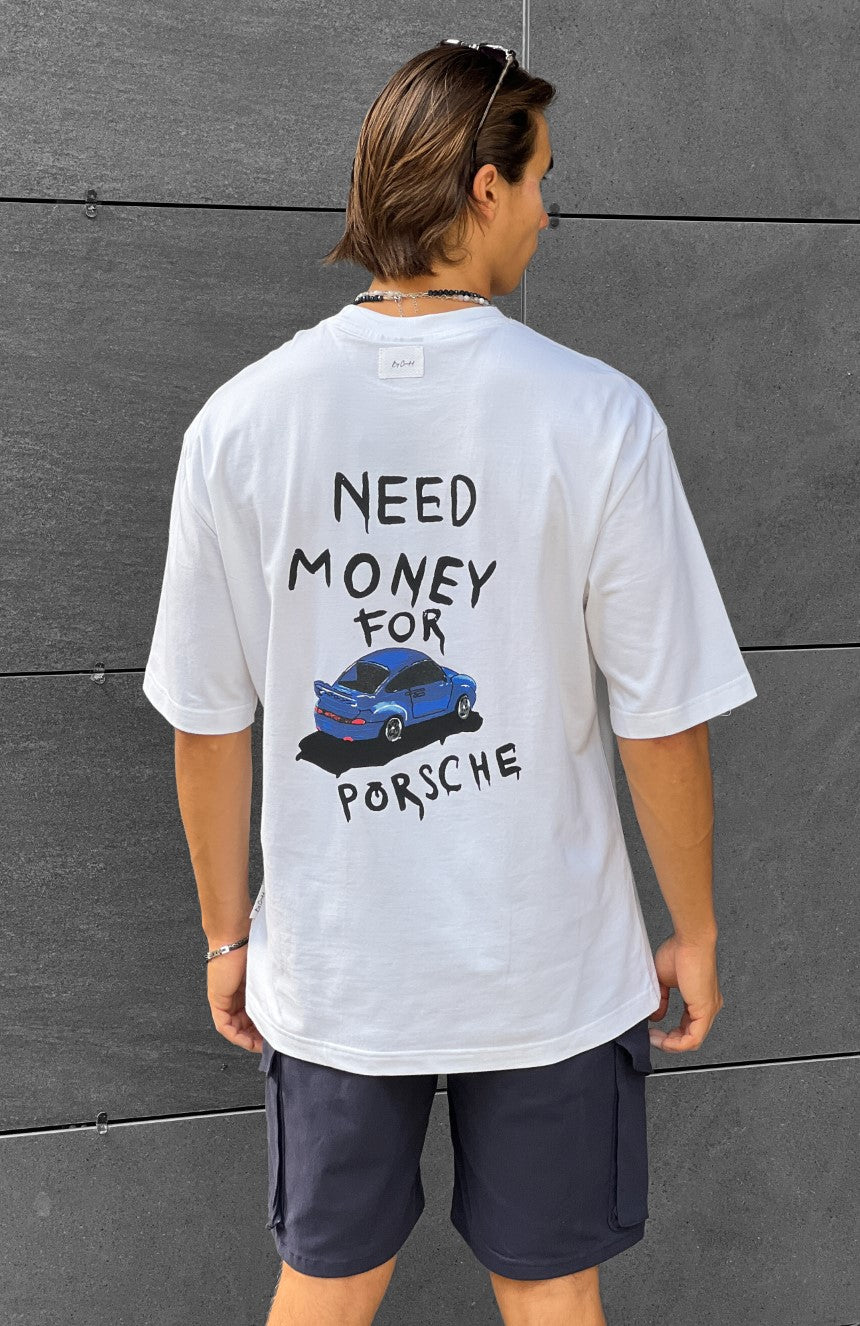 חולצה בגזרת אוברסייז - No Porsche (לבן)