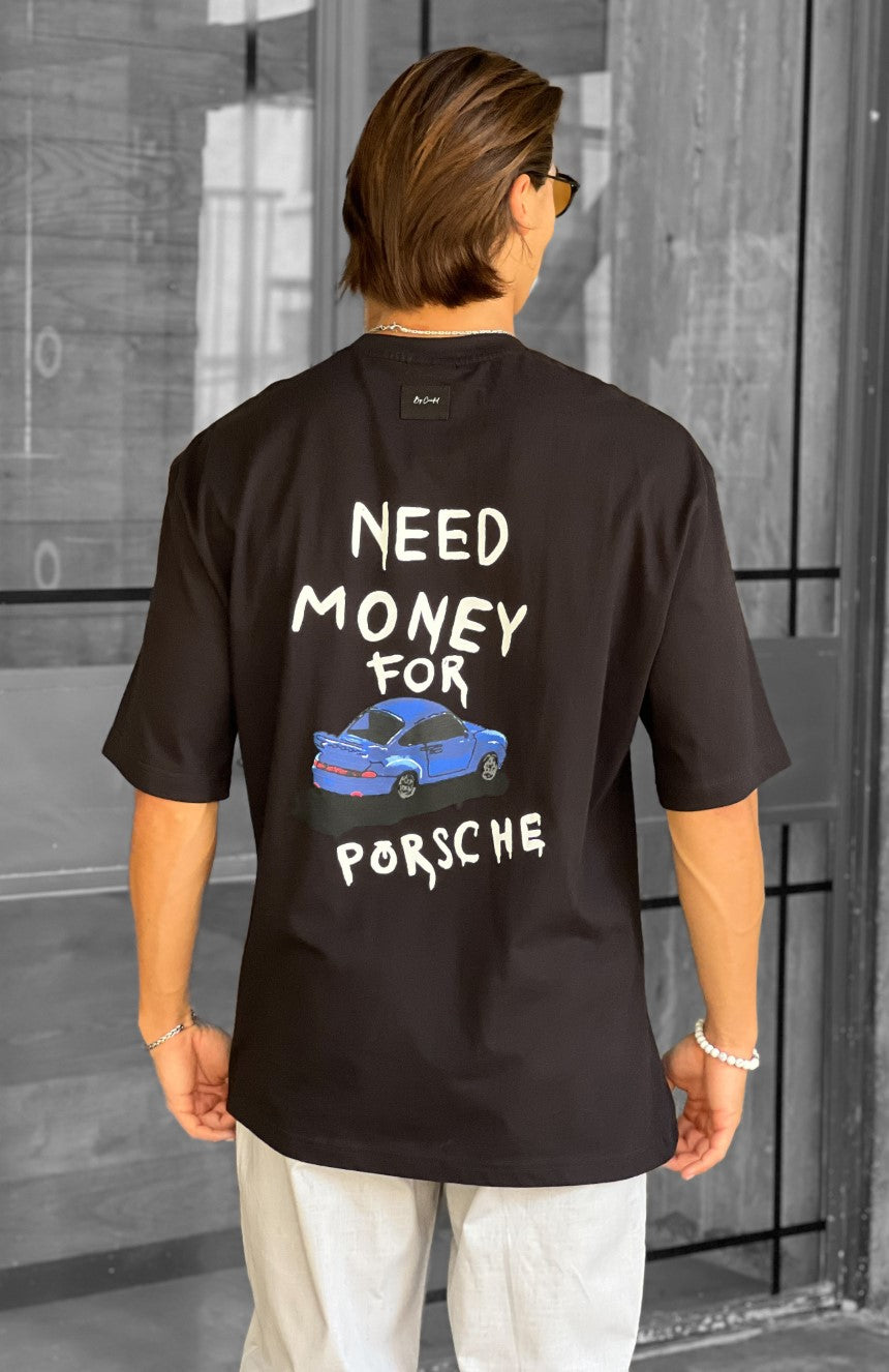 חולצה בגזרת אוברסייז - No Porsche (שחור)