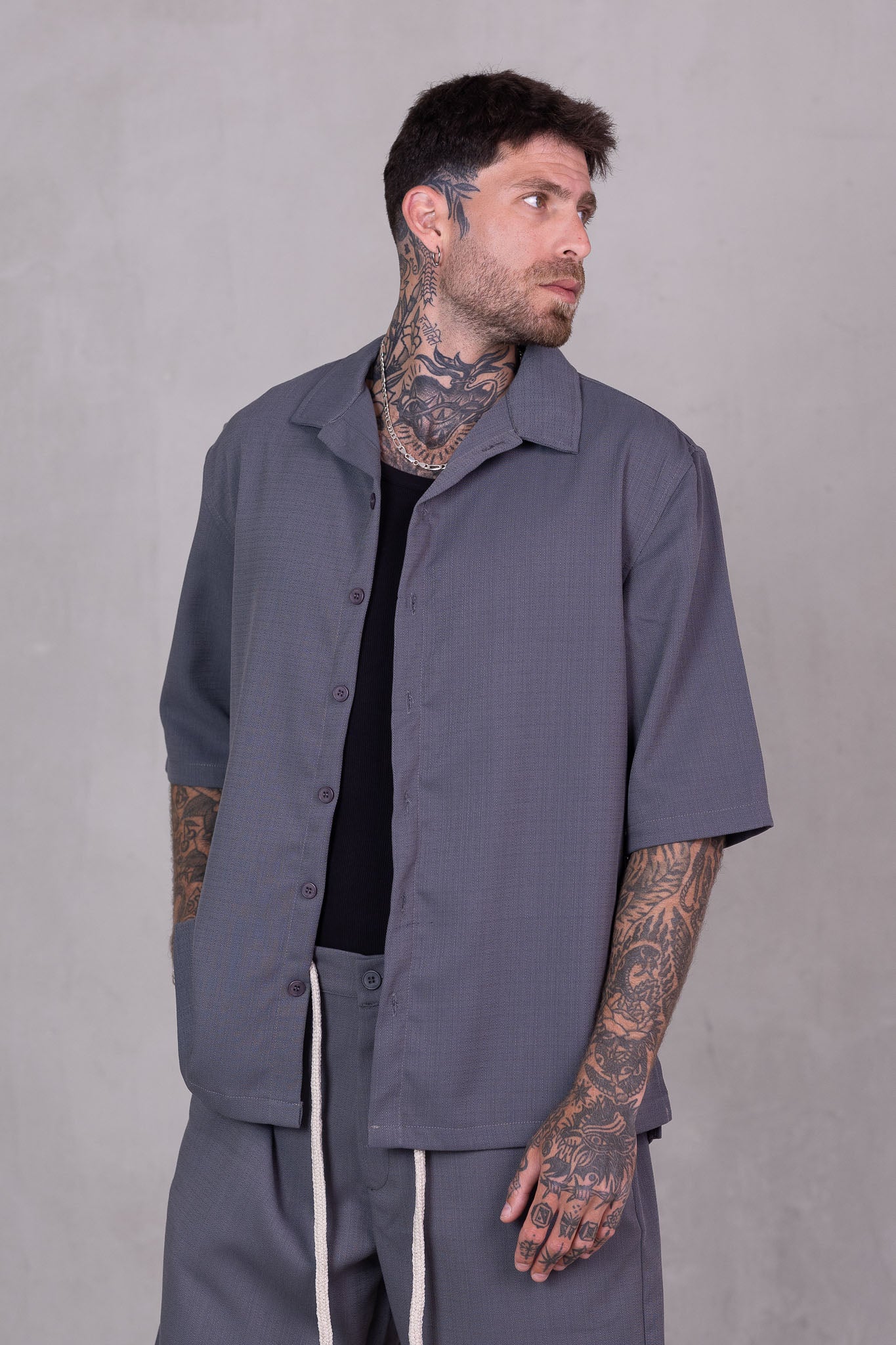 מכופתרת קצרה אוברסייז - Kokomo (אפור)